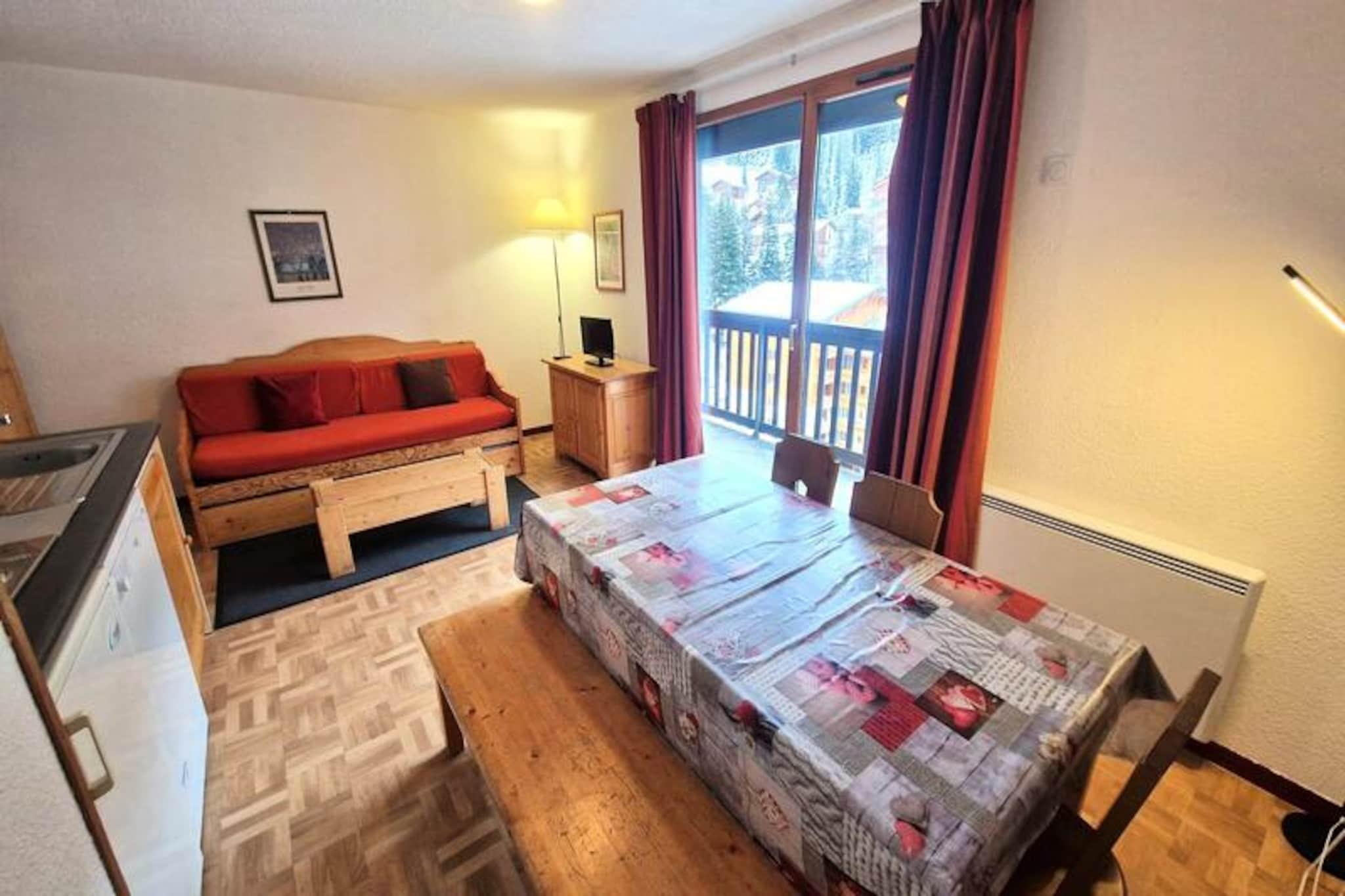 Højt over feriestedets travle hjerte tilbyder denne charmerende lejlighed på øverste etage et hyggeligt alpint tilflugtssted med betagende udsigt over pisterne og landsbyen nedenfor. Forestil dig at træde ud på din private balkon og nyde den friske bjergluft, mens solen kaster sin gyldne glød over de snedækkede tinder. Denne bolig er perfekt beliggende kun få meter fra skilifterne, butikkerne og skiskolerne og sikrer, at hvert øjeblik af din ferie er fyldt med lethed og eventyr. Uanset om du er her for vintersport eller sommervandreture, er beliggenheden uovertruffen. \n\nLejligheden er designet til op til seks gæster og har en gennemtænkt planløsning, der kombinerer komfort og praktisk anvendelighed. Stuen har en dobbelt udtræksseng og et tv til afslappende aftener, mens sovealkoven med køjesenge og det separate soveværelse med en dobbeltseng giver afslappende plads til alle. Tekøkkenet er udstyret med fire kogeplader, køleskab, ovn og opvaskemaskine, hvilket gør det nemt at tilberede måltider efter en dag med udforskning. Et badeværelse med badekar og et separat toilet bidrager til bekvemmeligheden, mens den sydvestvendte balkon inviterer dig til at slappe af med panoramaudsigt over feriestedet. Med et skirum i stueetagen og elevator til syvende sal er denne bolig skræddersyet til problemfri alpeliv. I nærheden finder du alt hvad du behøver, fra skiskoler og udlejningsbutikker til hyggelige restauranter og afterski-steder. Om sommeren forvandles feriestedet til et paradis for vandrere og cyklister med stier, der fører til fantastiske udsigter og fredfyldte picnicsteder. Uanset om du søger spændende nedkørsler, rolige bjergture eller charmen ved en livlig alpelandsby, er denne lejlighed din port til uforglemmelige minder i de franske alper.