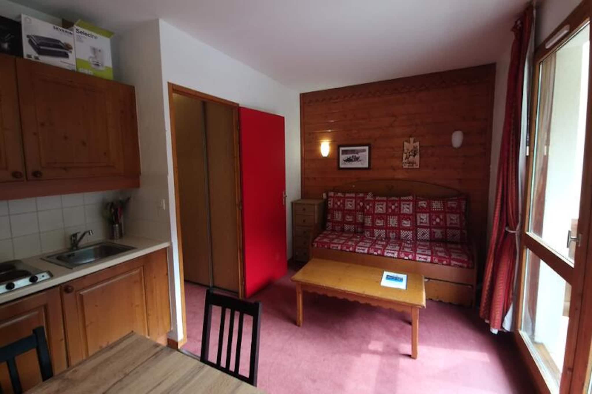 Højt over den charmerende alpelandsby Valfréjus inviterer denne hyggelige studiolejlighed dig til at opleve magien i de franske alper i enhver sæson. Med en betagende udsigt over bjergene fra sin sydøstvendte balkon tilbyder denne bolig et roligt tilflugtssted kun få skridt fra pisterne og det pulserende hjerte af feriestedet. Uanset om du søger spændende vintereventyr eller fredfyldte sommerferier, er denne ejendom den perfekte base for din alpeferie. \n\nDet 24 m² store studio er designet til op til fire gæster og er omhyggeligt udstyret for at sikre komfort og bekvemmelighed. Køkkenområdet kan prale af moderne apparater, herunder køleskab, opvaskemaskine, mikrobølgeovn og endda et raclette-sæt til autentiske Savoyard-aftener. Opholdsstuen har et tv og en sovesofa, der kan omdannes til en hyggelig soveplads. Et lukket soveområde med køjesenge giver ekstra privatliv. Badeværelset har bruser, håndvask og toilet, mens dyner og puder er inkluderet for en god nats søvn. Lagner er inkluderet, hvilket giver et ekstra strejf af komfort til dit ophold. Gæsterne har gratis adgang til ejendommens swimmingpool, perfekt til afslapning efter en dag med skiløb eller vandreture. Charmasson-svævebanen ligger kun 100 meter væk, mens Arrondaz-svævebanen, butikker og skiskoler ligger inden for en kort gåtur på 500 meter. Om sommeren forvandles feriestedet til et paradis for friluftsentusiaster med aktivitetspas og naturskønne stier at udforske. Der er gratis udendørs parkering til rådighed, og yderligere tjenester såsom liftkort, leje af udstyr og overdækket parkering kan arrangeres gennem udlejningsbureauet. Uanset om du er her for at køre på pisterne, nyde lokal mad eller blot nyde den alpine atmosfære, tilbyder denne studiolejlighed alt, hvad du behøver for et uforglemmeligt ophold i Valfréjus.