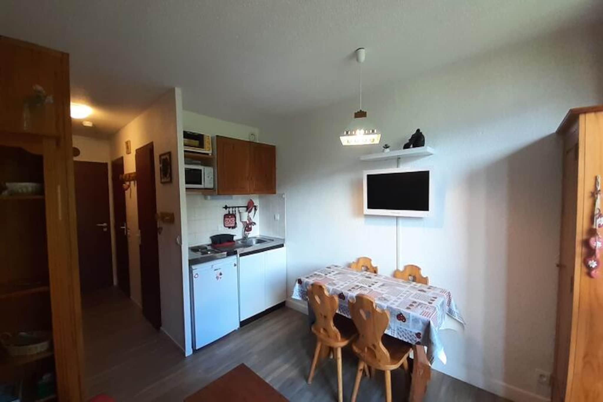 Denne charmerende studiolejlighed, der ligger højt oppe i det maleriske Valfréjus, tilbyder et hyggeligt tilflugtssted for op til fire gæster i Vita Parc-residensen. Kun 50 meter fra Arrondaz-svævebanen, skiskoler og lokale butikker er det en perfekt base for at udforske de majestætiske pister og stier i de franske alper. Fra den nordvestvendte balkon kan du nyde den betagende udsigt over dalen og den uberørte Vanoise Nationalpark, et paradis for naturelskere året rundt. Uanset om du er her for vintereventyr eller sommerferier, lover denne lejlighed komfort og bekvemmelighed på alle måder. \n\nIndenfor er det 20 m² store studio omhyggeligt designet til at maksimere plads og funktionalitet. Det udstyrede tekøkken inkluderer et elektrisk kogeplade med 2 blus, mikrobølgeovn, miniovn, køleskab og endda et raclette-sæt til autentisk alpin mad. Opholdsstuen har et tv og en hyggelig sovesofa, der kan laves om til en soveplads til to, mens en sovealkove med køjesenge giver ekstra plads. Badeværelset er udstyret med badekar, håndvask, hårtørrer og separat toilet, hvilket sikrer alle de nødvendige faciliteter til et afslappende ophold. Sengelinned er inkluderet, og yderligere faciliteter såsom skiboks og støvsuger øger bekvemmeligheden. \n\nTræd udenfor og fordyb dig i Valfréjus' pulserende atmosfære. Resortet tilbyder gratis udendørs parkering, og overdækket parkering kan reserveres efter anmodning. Om vinteren kan du nyde rabat på skiudstyr, lektioner og adgangskort, mens sommeren byder på aktivitetskort og muligheder for at udforske det fantastiske alpine landskab. Med sin nærhed til gondolbanen og den smukke Vanoise Nationalpark er denne lejlighed ideel til par, familier eller små grupper, der søger en uforglemmelig bjergferie. \n\nUanset om du snor dig gennem frisk puddersne eller vandrer blandt vilde blomster, inviterer dette dejlige studie dig til at opleve Alpernes magi i komfort og stil.