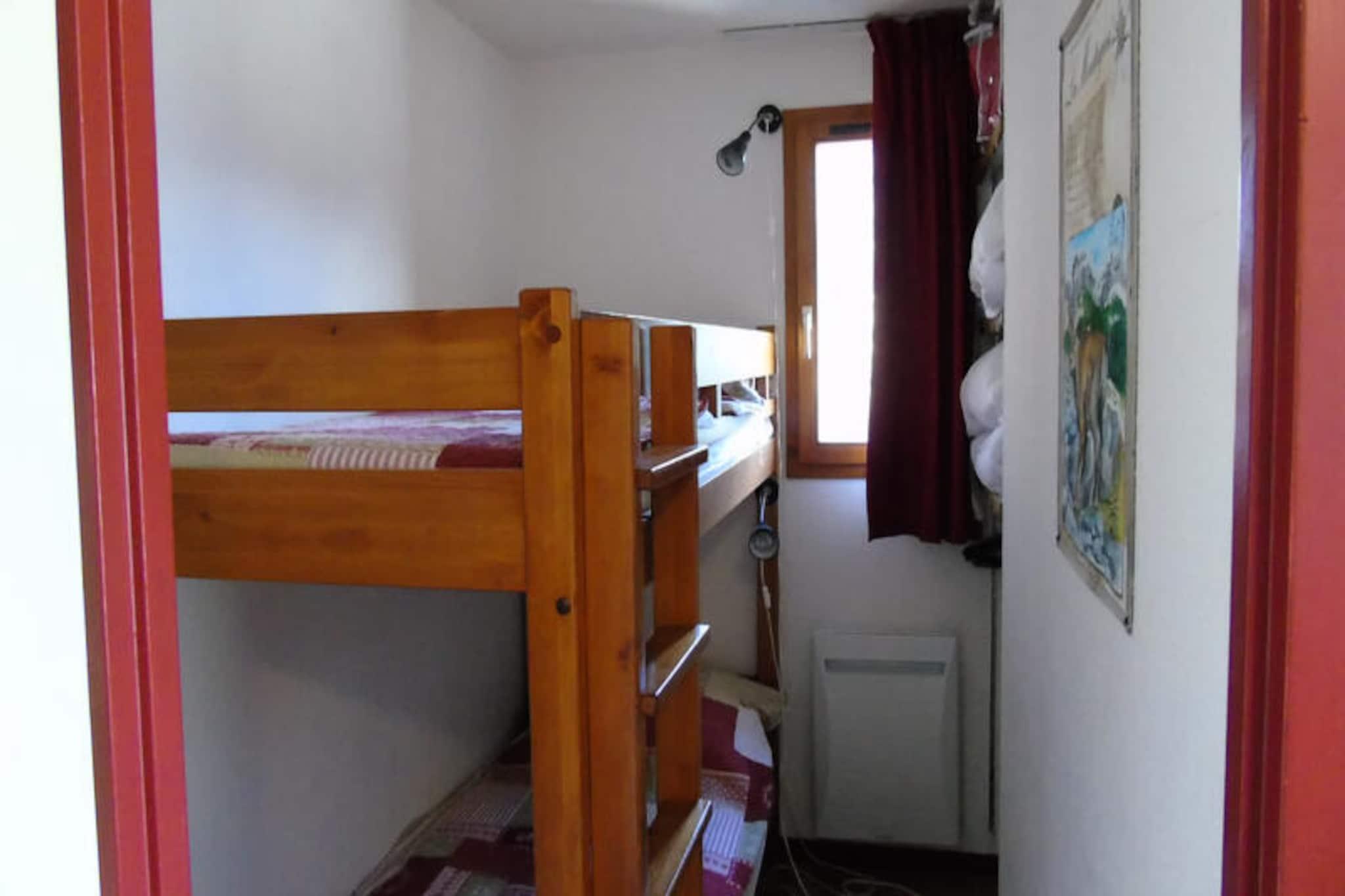 Midt i Valfréjus' fredfyldte skønhed tilbyder denne charmerende 2-værelses lejlighed med sovealkove et hyggeligt tilflugtssted for op til seks gæster. Beliggende i Résidence du Cheval Blanc, er den perfekt placeret kun 200 meter fra Charmasson-stoleliften og 500 meter fra Arrondaz-svævebanen, hvilket gør den til en ideel base for skientusiaster. Den nordvendte balkon tilbyder en betagende udsigt over Vanoise Nationalpark, der fordyber dig i de franske alpers naturlige pragt. \n\nIndvendigt er lejligheden omhyggeligt designet til komfort og bekvemmelighed. Det veludstyrede tekøkken har moderne apparater, herunder induktionskogeplade, mikrobølgeovn, ovn, køleskab, fryser og endda et raclette- og fondue-sæt til at nyde traditionelle alpemåltider. Opholdsstuen indbyder til afslapning med et tv og en dvd-afspiller, mens badeværelset har en bruseniche og separat toilet. Sovepladserne inkluderer en dobbelt sovesofa i stuen, et hyggeligt soveværelse med en dobbeltseng og et kahytrum med køjesenge, alt suppleret med bløde dyner og puder. Sengelinned er inkluderet for ekstra bekvemmelighed. \n\nUd over lejligheden tilbyder Valfréjus et væld af aktiviteter året rundt. Om vinteren kan du nyde skiløb, snowboarding og afterskiing, mens sommeren forvandler regionen til et paradis for vandreture, mountainbiking og udforskning af den fantastiske Vanoise Nationalpark. Butikker, skiskoler og restauranter ligger kun en kort gåtur væk, hvilket sikrer, at alt hvad du behøver er inden for rækkevidde. \n\nUanset om du søger alpine eventyr eller rolig afslapning, lover denne indbydende lejlighed et uforglemmeligt ophold i hjertet af de franske alper.