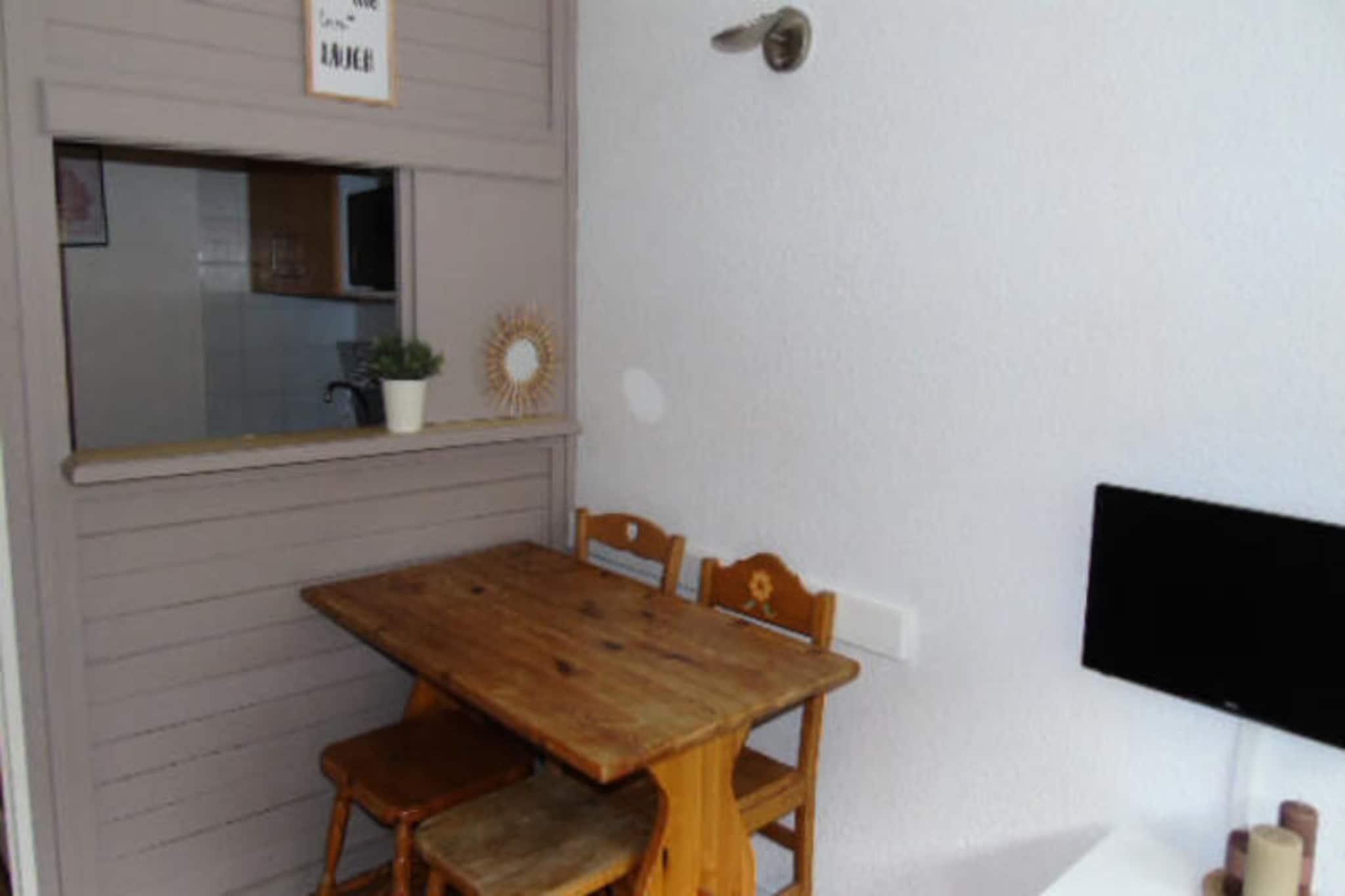 På den pulserende Place du Thabor i Valfréjus tilbyder denne charmerende studiolejlighed et indbydende tilflugtssted for par eller små grupper, der søger en hyggelig alpin ferie. Med sin sydvendte balkon med udsigt over den livlige plads og sin førsteklasses beliggenhed kun 20 meter fra Arrondaz-svævebanen er du perfekt placeret til at nyde det bedste af dette maleriske bjergresort. Uanset om du er her for vinterski-eventyr eller sommervandreture, lover omgivelserne uforglemmelige øjeblikke omgivet af de majestætiske tinder i de franske alper. \n\nLejligheden blev renoveret i 2022 og kombinerer moderne komfort med praktiske bekvemmeligheder. Tekøkkenet er udstyret med alt, hvad du behøver for at tilberede solide måltider, herunder mikrobølgeovn, elektrisk kogeplade og et raclette-sæt til autentiske Savoyard-aftener. Opholdsstuen har en komfortabel sovesofa, et fjernsyn og en varm atmosfære til afslapning efter en dag med aktiviteter. En sovealkove med en enkeltseng, der kan klappes ned, giver fleksibilitet, mens badeværelset tilbyder et badekar, hårtørrer og gennemtænkte detaljer som inkluderet sengetøj og dyner. Yderligere bekvemmeligheder såsom skiboks, støvsuger og gratis udendørs parkering sikrer et problemfrit ophold. \n\nTræd udenfor og fordyb dig i Valfréjus' charme. Skiskolerne ligger kun 100 meter væk, og de nærliggende butikker og restauranter tilbyder alt fra lokale specialiteter til afterskiing-oplevelser. Om sommeren forvandles feriestedet til et paradis for friluftsentusiaster med aktivitetspas, vandrestier og betagende udsigter. Uanset om du udforsker pisterne eller opdager alpin flora, er dette studie din ideelle base for eventyr året rundt. \n\nVælg denne dejlige ejendom for dens uovertrufne beliggenhed, moderne faciliteter og løftet om at skabe dyrebare minder i hjertet af de franske alper.