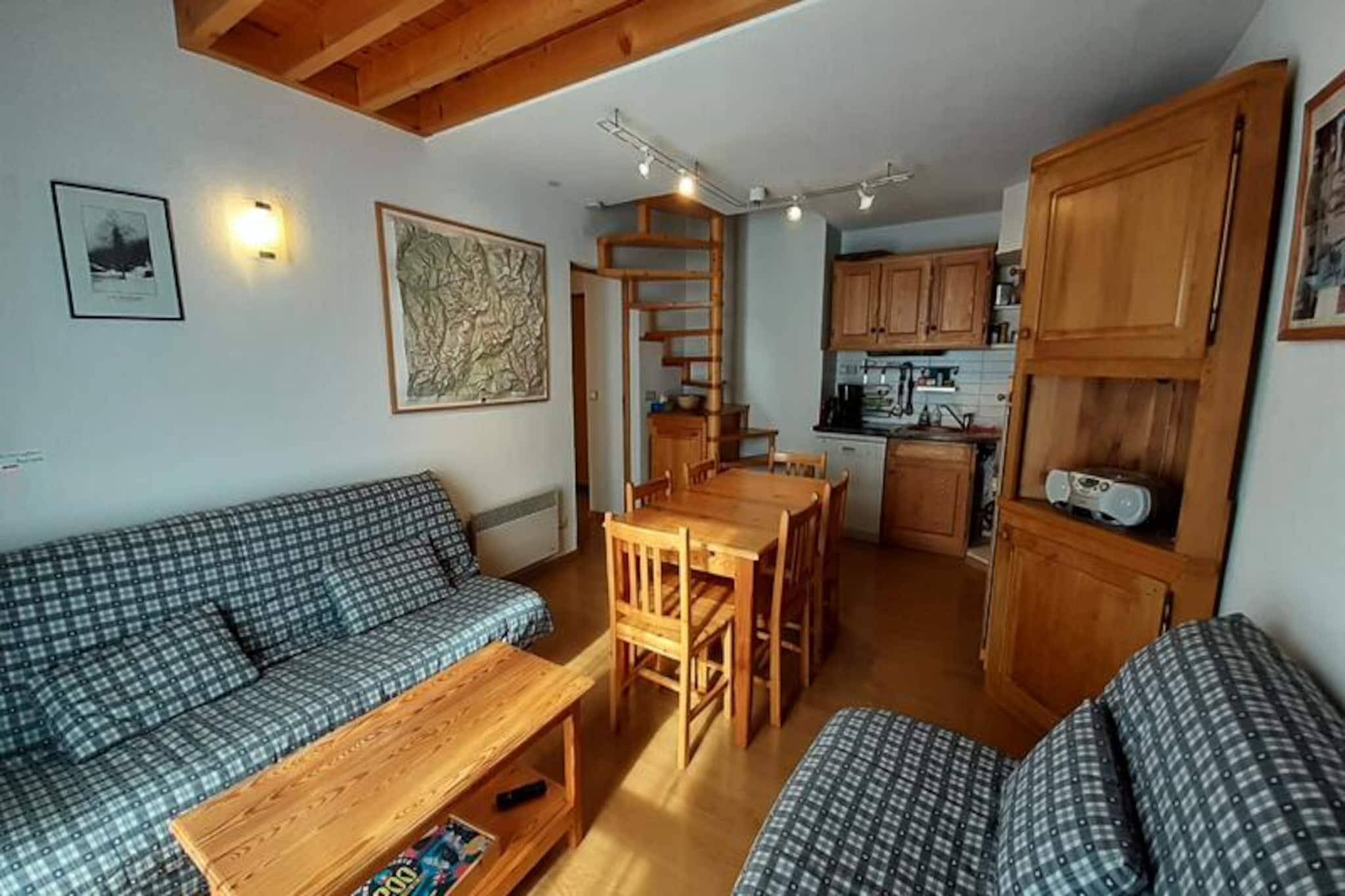 I hjertet af det maleriske Valfréjus-resort tilbyder denne charmerende treværelseslejlighed et hyggeligt tilflugtssted kun 50 meter fra Arrondaz-svævebanen, skiskoler og lokale butikker. Den er perfekt beliggende på anden sal i Charmaix Residence og kan prale af to sydvendte altaner, hvor du kan nyde den fantastiske udsigt over alpelandsbyen og de omkringliggende tinder. Uanset om du er her for vintersport eller sommereventyr, garanterer denne ejendom et uforglemmeligt ophold i de franske alper. \n\nIndenfor er den 44 m² store lejlighed omhyggeligt designet til at rumme op til seks gæster. Tekøkkenet er fuldt udstyret med moderne apparater, herunder keramisk kogeplade, ovn, mikrobølgeovn, køleskab og endda et fonduesæt til autentisk bjergmad. Opholdsstuen indbyder til afslapning med sine komfortable sofaer, tv og radio, mens badeværelset har badekar, håndvask og hårtørrer for ekstra bekvemmelighed. Sovepladserne omfatter et soveværelse med en dobbelt sovesofa og køjesenge samt en mezzanin med en dobbeltseng, eget toilet og håndvask, hvilket sikrer privatliv og komfort for alle gæster. Sengelinned er inkluderet, og yderligere faciliteter såsom skiboks og støvsuger gør dit ophold problemfrit.\n\nTræd udenfor og oplev den pulserende atmosfære i feriestedet. Gondolliften ligger kun få skridt væk og tilbyder nem adgang til pisterne, mens nærliggende butikker og restauranter opfylder alle dine behov. Om vinteren kan du nyde skiløb, snowboarding og kælkning, mens sommeren forvandler området til et paradis for vandreture, mountainbiking og udendørs udforskning. Valfréjus er også kendt for sine aktivitetspas, der sikrer underholdning for alle aldre. Gratis udendørs parkering er tilgængelig, med overdækket parkering efter anmodning.\n\nUanset om du søger spændende alpine eventyr eller rolige bjergflugter, er denne lejlighed din indgang til Valfréjus' skønhed og charme. Skab varige minder i en destination, der blander komfort, bekvemmelighed og betagende landskaber.