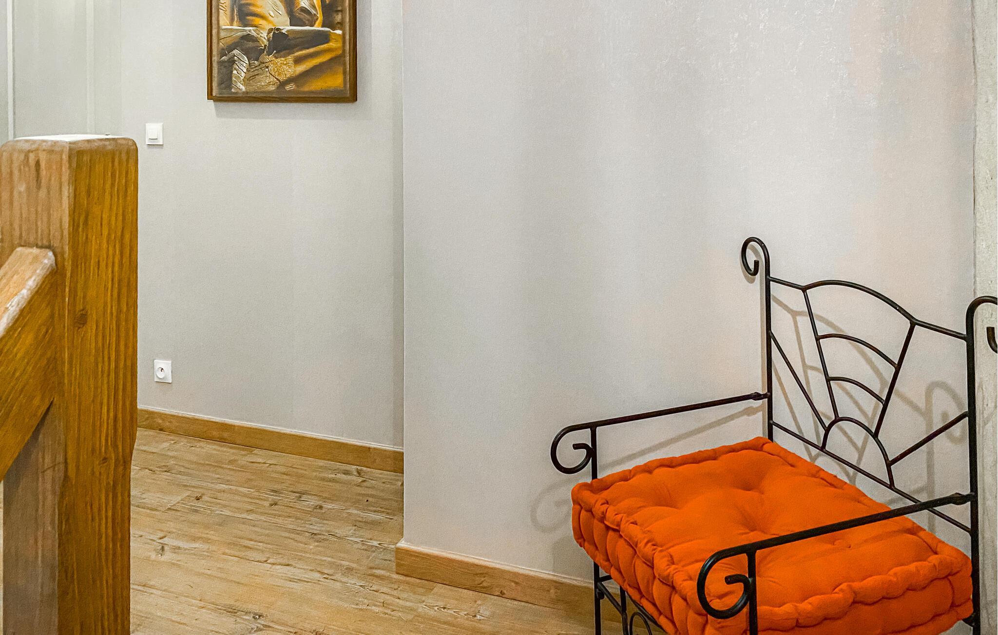 Tilbring en afslappende ferie i dette kærligt moderniserede landhus, der byder på en dejlig indretning på to etager. De charmerende trælofter, de flotte møbler og de smukt designede soveværelser skaber en hyggelig atmosfære. Her kan hele familien føle sig hjemme og nyde en uforglemmelig ferie sammen. Tilbered lækre måltider i køkkenet, og drik jeres morgenkaffe i haven med udsigt til floden Sarthe.
