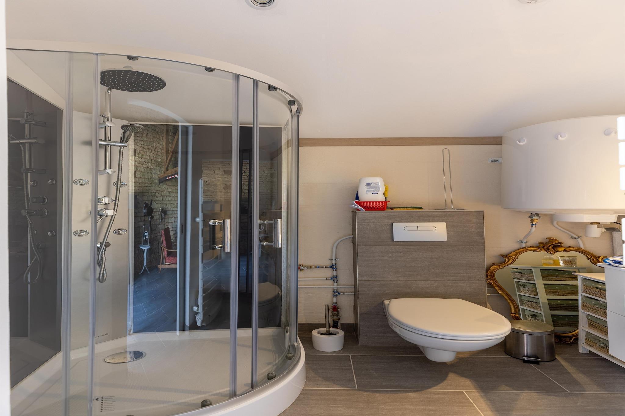 Stueetage: (sofastue(dobbeltsovesofa, Fjernsyn, kakkelovn(pille), sofahjørne, DVD-afspiller, trådløst musiksystem), spisestue(dobbeltsovesofa(160 x 200 cm), spisebord), åbent køkken(elkedel, brødrister, komfur(induktion), kaffemaskine, espressomaskine, mikrobølgeovn, opvaskemaskine , køleskab, køle-fryseskab, Blender)) På 1. etage: (soveværelse(dobbeltseng eller 2 enkeltsenge Senge(90 x 200 cm), Fjernsyn), badeværelse(bruser(Walk-in-bruser), håndvask, toilet, vaskemaskine, føntørrer)) Gæsteophold Stueetage: (soveværelse(dobbeltsovesofa(160 x 200 cm), Fjernsyn, radio), badeværelse(massagebruser, håndvask, toilet)) tremmeseng, baggård, terrasse, have, grill(trækul), parkering, petanquebane, cykler til rådighed, barnestol, hyggespil