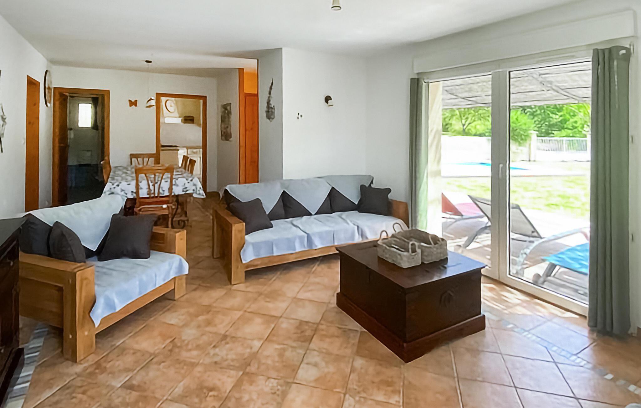 10 km fra Saint-Ambroix ligger dette charmerende feriehus med privat pool og en lukket have til en uforglemmelig ferie i Gard. Ud over hovedhuset omfatter boligen også et anneks. I denne sidebygning er der soveværelse, brusebad og wc med adgang over en terrasse og et par trin. I husets hoveddel er der et soveværelse, det største badeværelse og husets øvrige rum. Denne opdeling gør ferieboligen perfekt til to par, der vil holde ferie sammen men bevare privatlivets fred. I denne region er der frisk luft og mulighed for mange aktiviteter, fx vandre, cykle og sejle kajak og kano. Der er få km til la Cocalièregrotten ligesom Saint-Ambroix med sin gamle by samt Château d'Aujac, Château d'Allègre og Château de Montalet er værd at køre efter. I Uzès kan I også nyde den gamle bydel, og på Place aux Herbes kan I købe ind på det typiske provencalske marked. Ardècheslugten (49 km) lokker med en unik og udsædvanlig natur.