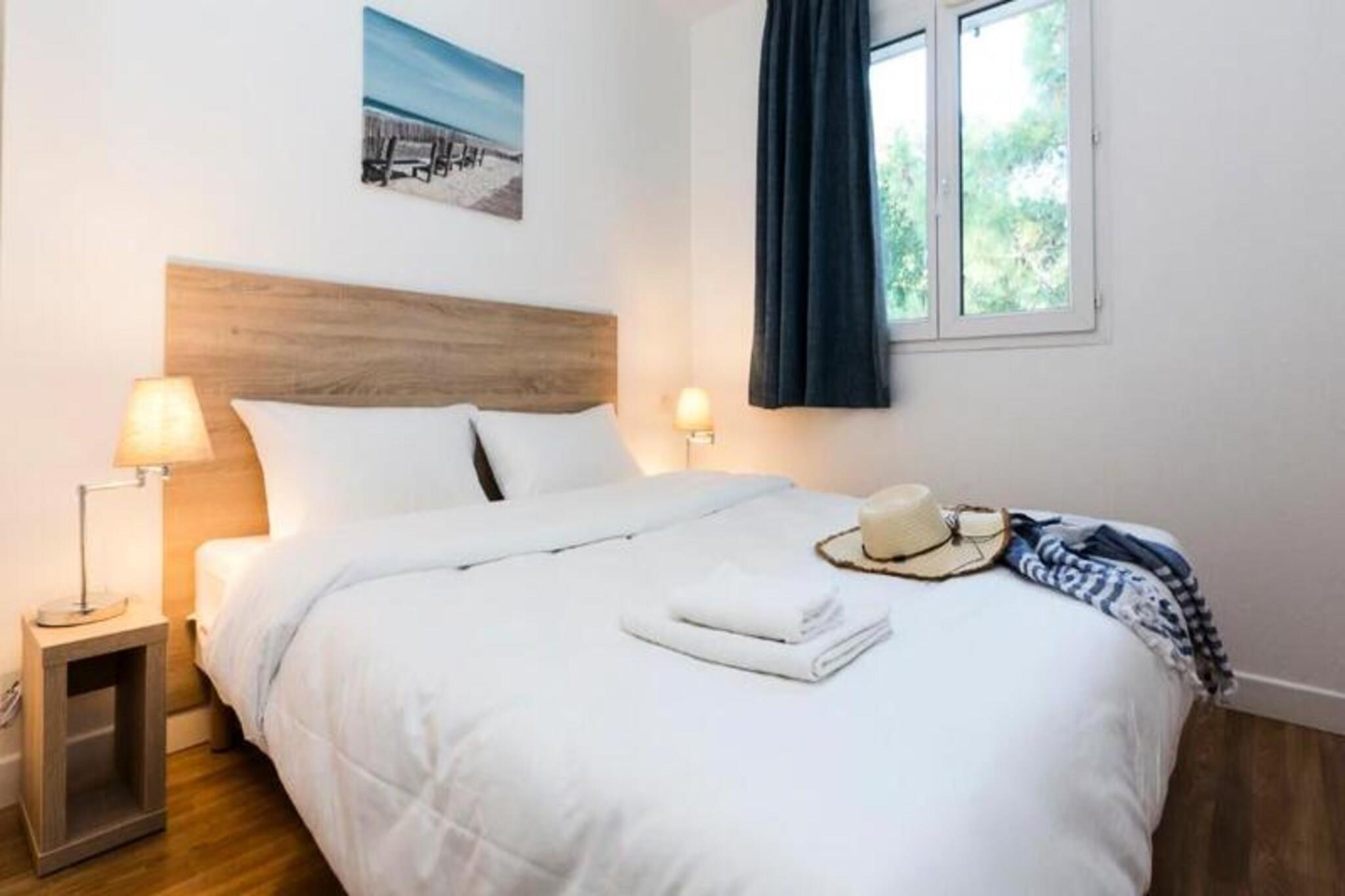 Odalys Bleu Océan*** Residence ligger i Moliets, en hyggelig badeby, der er travl med begivenheder og begivenheder, restauranter og sportsaktiviteter. De 11 hytter, der grænser op til Moliets golfbane, omfatter hver 8 lejligheder i boligen, og ligger i udkanten af ??skove, der kombinerer de naturlige omgivelser med fyrretræer og sand. Boligen har et soppebassin ved siden af ??den udendørs swimmingpool og et legeområde dedikeret til børn. Den store fine sandstrand er tilgængelig 350 m væk via en lille fodgængersti, som snor sig gennem midten af ??fyrretræer og egetræer. De nærmeste butikker ligger 200 m væk. For supermarkeder skal du gå længere (7/8 km) Du kan nyde forskellige aktiviteter uden for boligen for at forbedre dit ophold, såsom bådture på Huchet-strømmen fra Léon, ridning eller vandreture, cykeludlejning (Les Vélos du Golf: -20 % rabat på cykeludlejning for feriegæster i Odalys), drage ... 4 Værelser 7 Personer. Have. Stue med enkeltseng. Udstyret køkken. Soveværelse med dobbeltseng og 2 soveværelser med 2 enkeltsenge. Badeværelse, brusebad og separat toilet. Wifi-adgang - inkluderet (1 adgang pr. bolig) Kæledyr tilladt - EURO70/kæledyr/ophold (7 nætter og mere) - EURO15/nat (mindre end 7 nætter) (hunde holdt i snor i boligen) Depositum (ekstra) - 300 Slutrengøringspakke - inkluderet eksklusive køkken Babysæt - 9€/dag € 35 EURO/ophold Linnedsæt - sengelinnedsæt (lagner + pudebetræk) og toiletartikler: 24 EURO/skift Sengelinned - 16€ / skift / seng (lagner + pudebetræk) Håndklæder - EURO 10/skift Babyseng - 15€ / uge Parkering - fri afdækket, efter reservation Swimmingpool - gratis udendørs uopvarmet og åben fra midten af ??maj til slutningen af ??september - børnebassin Turistskat (ekstra gebyr) - betales på stedet i henhold til gældende takst Fjernsyn - gratis