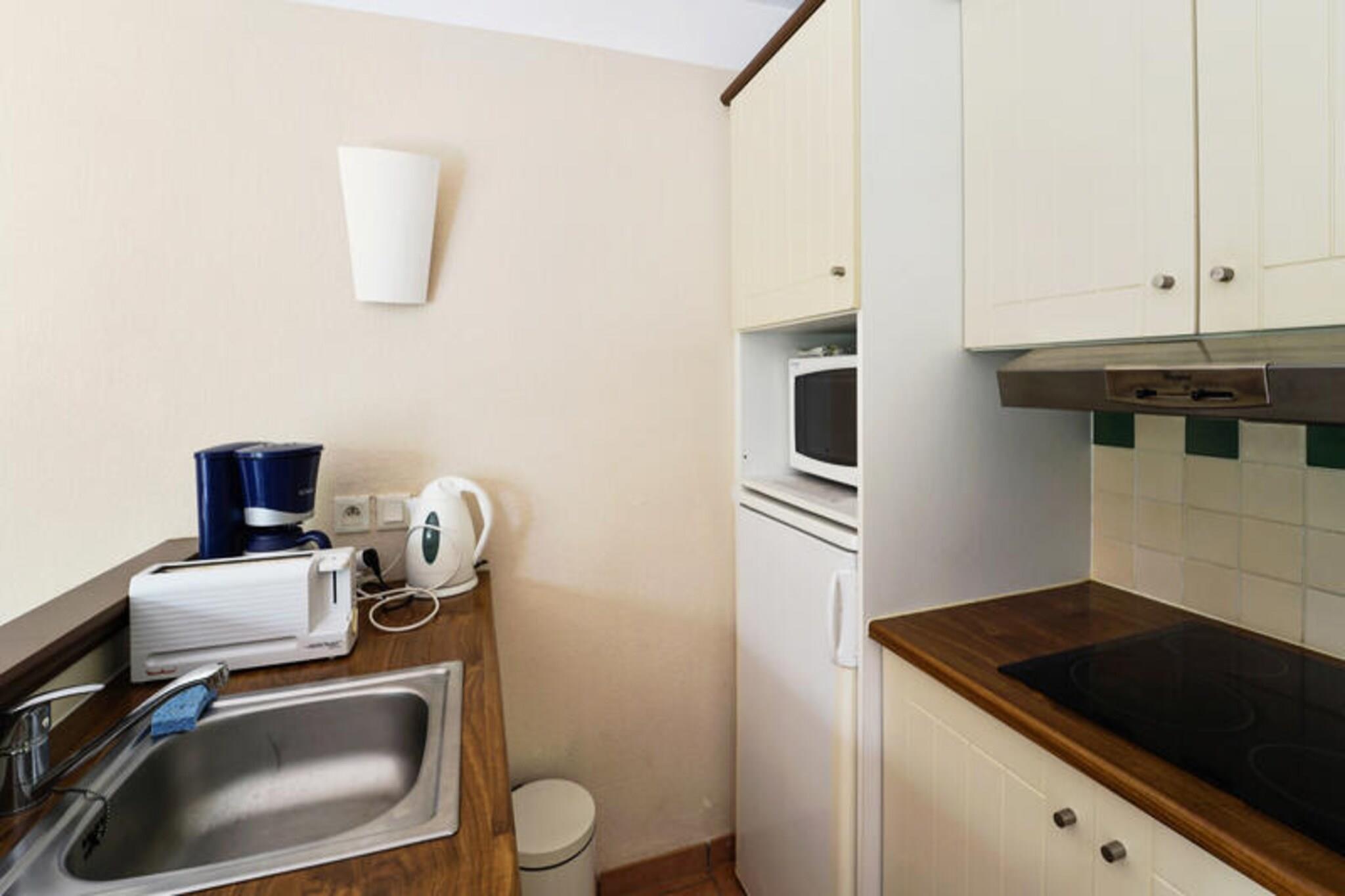 Dette charmerende feriehus ligger i hjertet af Moliets, omgivet af en smuk fyrreskov og med udsigt over en 27-hullers golfbane, der strækker sig ned til havet. Stranden ligger kun 1,5 km væk, let tilgængelig til fods eller på cykel. Boligen er perfekt for dem, der søger en blanding af afslapning og eventyr, og tilbyder en række aktiviteter såsom bodyboarding, karting og bueskydning (ekstra gebyrer). Gæsterne kan også udforske de nærliggende vandrestier eller besøge naturreservatet Courant d'Huchet, der er kendt for sin rige biodiversitet. På stedet finder du masser at nyde med adgang til fire swimmingpools, inklusive to opvarmede pools og en med dykkergrav. Landsbyen byder på en fredelig atmosfære med nem adgang til den omkringliggende skov Landes de Gascogne, hvilket giver de ideelle rammer for udendørsentusiaster. For yderligere afslapning tilbyder boligen moderne bekvemmeligheder og et indbydende miljø for både familier og par. Denne veludstyrede lejlighed på 45 m² omfatter en stue med en sovesofa, et fuldt udstyret køkken, to soveværelser (et med en dobbeltseng og et med to enkeltsenge) og et badeværelse med en kombination af badekar og bruser. Enheden har også balkon, terrasse og parkeringsplads. Valgfri tjenester såsom babysæt, sengelinned, håndklæder og rengøring er tilgængelige mod et ekstra gebyr. Gæsterne kan nyde gratis adgang til hotellets swimmingpool i de varmere måneder.