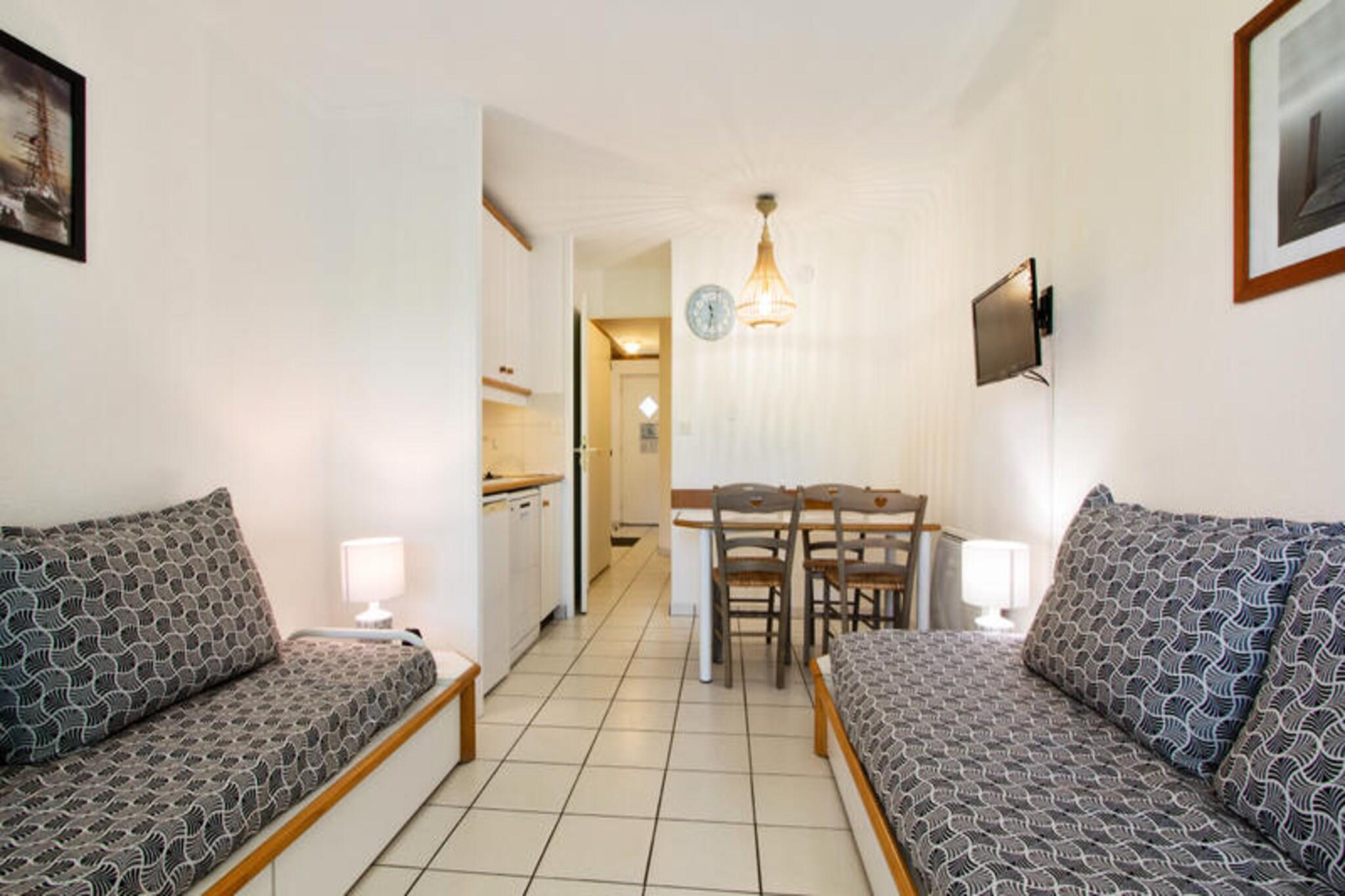 Beliggende i hjertet af en malerisk fyrreskov, tilbyder denne hyggelige lejlighed et perfekt tilflugtssted for dem, der søger en fredelig ferie. Lejligheden indeholder en komfortabel dobbeltseng og en sovesofa, egnet til et barn. Det har en stue, køkken, badeværelse med badekar-bruser og et separat toilet. Du vil også nyde en privat balkon og gratis parkering. Boligen er kæledyrsvenlig, så du kan medbringe dine lodne ledsagere (mod ekstra gebyr). Ejendommen tilbyder grundlæggende faciliteter såsom Wi-Fi-adgang (i receptionen, afhængigt af tilgængelighed), og sengetøj og håndklæder kan leveres mod et ekstra gebyr. Placeringen er ideel for udendørsentusiaster, med den smukke Moliets strand kun 1,5 km væk, let tilgængelig til fods eller på cykel. Området er kendt for sin surfingkultur, og du kan nyde forskellige aktiviteter såsom bodyboarding, gokart og bueskydning (mod ekstra gebyr). Vandrestier gennem Landes de Gascogne-skoven og besøg i naturreservatet Courant d'Huchet er perfekte for naturelskere. Din bolig inkluderer også et fuldt udstyret køkken og alle nødvendige apparater, hvilket gør det nemt at tilberede måltider i ro og mag. Landsbyen byder på fire swimmingpools, hvoraf to er opvarmede, sammen med en dykkerbassin, alle tilgængelige fra maj til september. Boligen er velegnet til familier, med valgfri babysæt til rådighed (afhængigt af tilgængelighed), og slutrengøring kan arrangeres mod et ekstra gebyr.