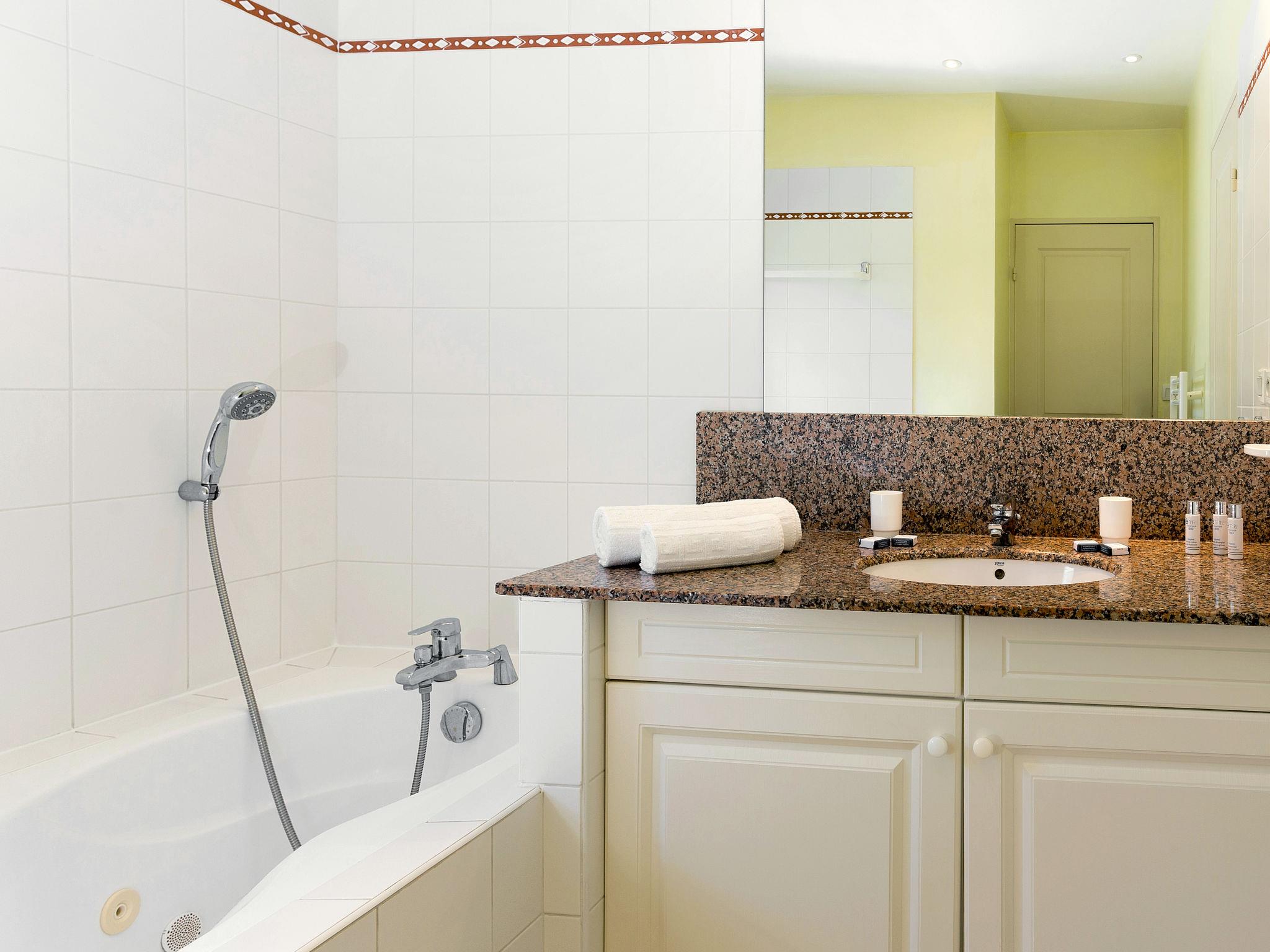 "Club Royal Océan La Prade", 3-room house 91 m2. Beautiful and tasteful furnishings: living/sleeping room with 1 double sofabed, open-hearth fireplace, dining table, satellite TV and DVD. Exit to the terrace. 1 room with 2 beds. 1 room with 1 french bed and bath/WC. Exit to the terrace. Open kitchen (oven, dishwasher, 4 ceramic glass hob hotplates, toaster, kettle, microwave, freezer, electric coffee machine). Shower, sep. WC. Electric heating. Terrace 50 m2 partly roofed. Terrace furniture. Facilities: washing machine, dryer, iron, children's high chair, baby cot. Internet (WiFi, free). Parking. Please note: non-smoking house. Maximum 2 pets/ dogs allowed. Smoke alarm, fire extinguisher.