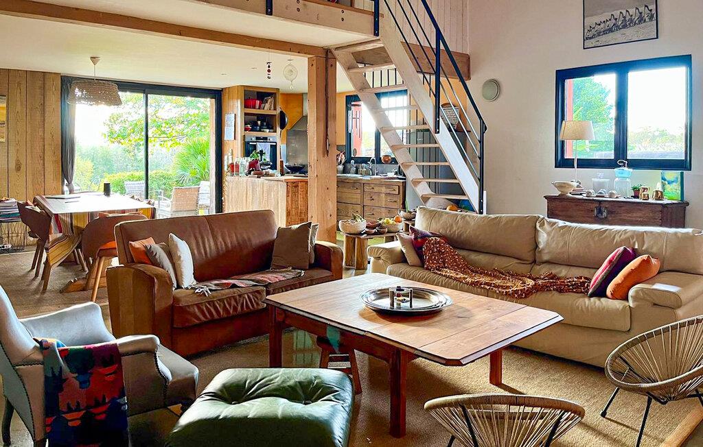 Beliggende i Bordeaux vinregion blander dette hus harmonisk historisk charme med moderne komfort. Naturstensvægge, træbjælker og en imponerende pejs skaber en atmosfære, der er både hyggelig og sofistikeret. Læn jer tilbage i den komfortable sofa med et godt glas vin, lyt til god musik eller nyd en engagerende podcast. I det veludstyrede køkken kan I afprøve nye opskrifter og nyde måltider sammen ved det rustikke bord.