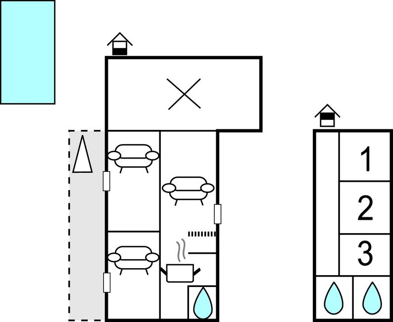 Soveværelse (nr. 1) - 1 Soveplads. (Enkeltseng(e)). 2 Sovepladser. (Etageseng(e)).