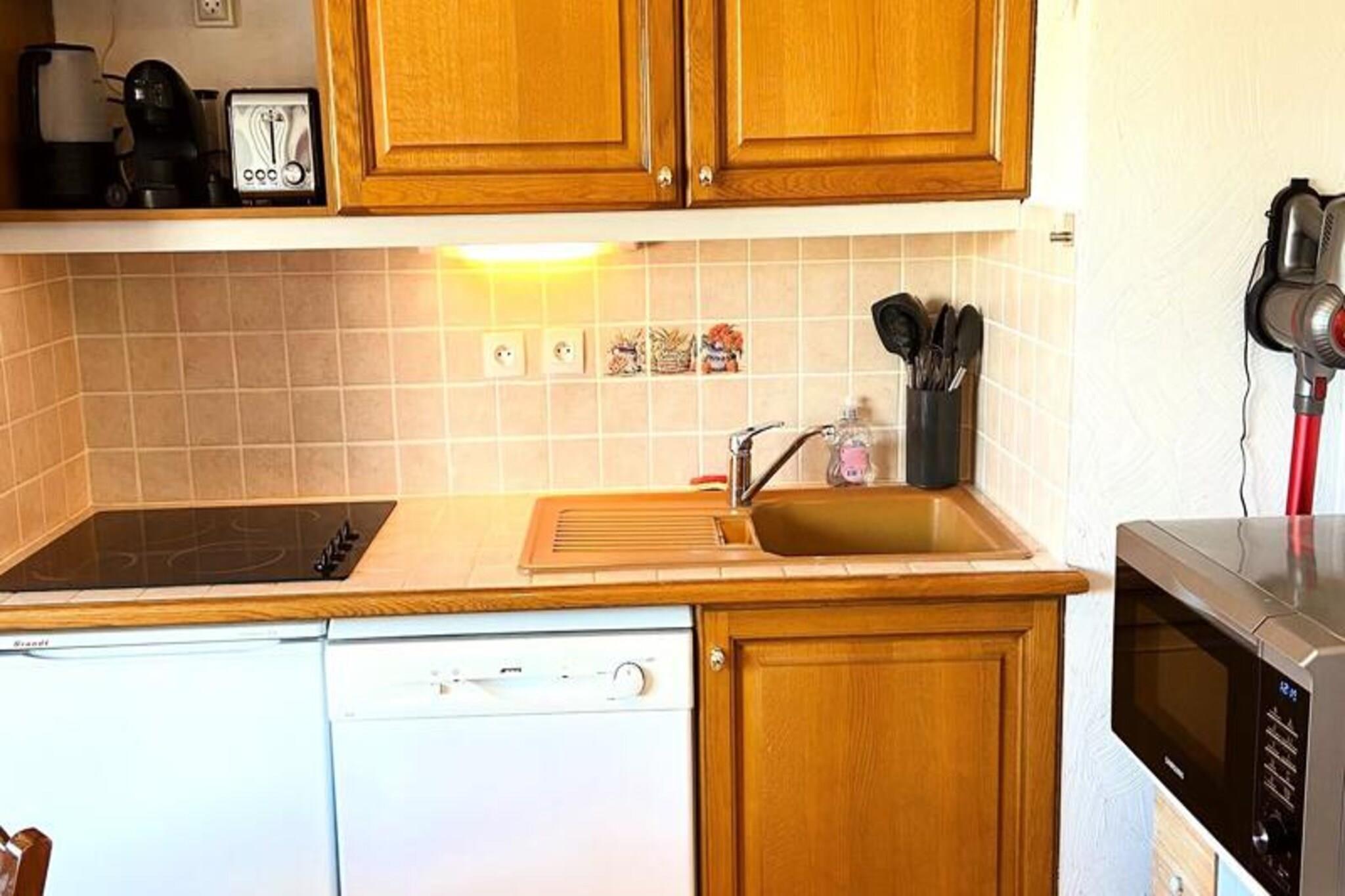 Dette charmerende studie p? 23 m² er beliggende i et fredeligt omr?de n?r skr?ningerne af Petite Aiguille stoleliften, og tilbyder det perfekte tilflugtssted for op til 4 personer. Beliggende p? 1. sal i en moderne ejerlejlighed uden elevator, studiet vender mod vest og giver en dejlig udsigt fra altanen. Stuen er hyggelig med et fjernsyn, en sofa og en spiseplads, mens k?kkenet i ?bent plan er fuldt udstyret med 4 keramiske kogeplader, en kombineret mikroovn, k?leskab, opvaskemaskine, kaffemaskine, elkedel og br?drister, hvilket g?r det praktisk. til at tilberede m?ltider efter en dag p? pisterne. Studiet har et soveomr?de med 2 enkeltk?jesenge (hvor den ?verste k?je ikke anbefales til b?rn under 6) og en stue med en sovesofa (dobbeltseng). Soveomr?det er adskilt fra stuen med en harmonikad?r, der giver lidt privatliv. Badev?relset er udstyret med bruser og toilet. G?sterne vil ogs? finde praktiske faciliteter, herunder et skiskab, cykelopbevaring og en privat lukket garage, der sikrer, at alt dit udstyr opbevares sikkert. Beliggende kun 1,5 km fra feriestedets centrum, er en gratis shuttle tilg?ngelig i n?rheden for nem adgang til butikker og restauranter. Om sommeren er det lille planomr?de, komplet med en udstyret strand og s?, kun en kort g?tur v?k. Bem?rk venligst, at sengelinned, husholdningslinned, h?ndkl?der, wifi og slutreng?ring ikke er inkluderet, men kan reserveres p? forh?nd afh?ngigt af tilg?ngelighed.