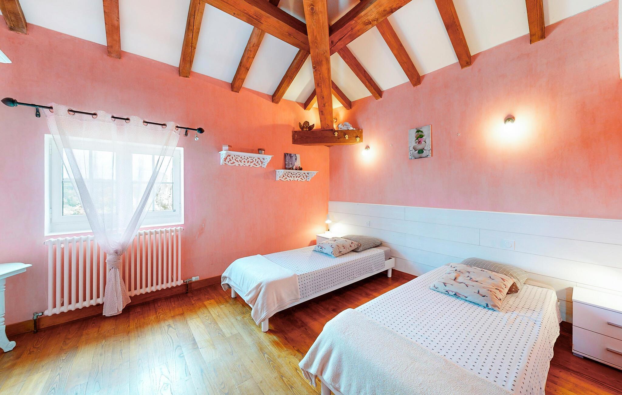 Lige midt i den skønne natur ligger denne rummelige villa bygget af sten, som danner gode rammer om en afslappet ferie. Det sørger ikke mindst husets behagelige indretning for. Udenfor er der ikke mindre dejligt: en solbeskinnet pool og en stor terrasse med udsigt over de bakkede omgivelser, vil gøre de udendørs stunder til feriens allerbedste. Havens store gamle træer sørger for behagelig skygge for middagssolens hede stråler, ligesom indhegningen giver tryghed. Der er kun 7 km til Montélimar med forretninger, små pladser og fodgængerzone, Grignan 20 km væk, med et skønt slot der dominerer bybilledet.