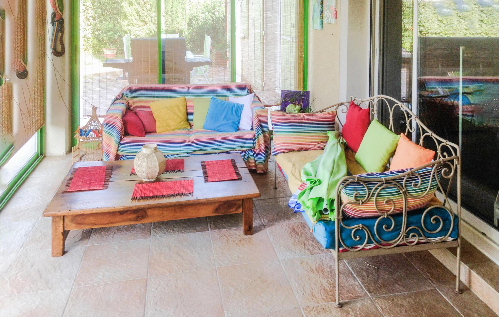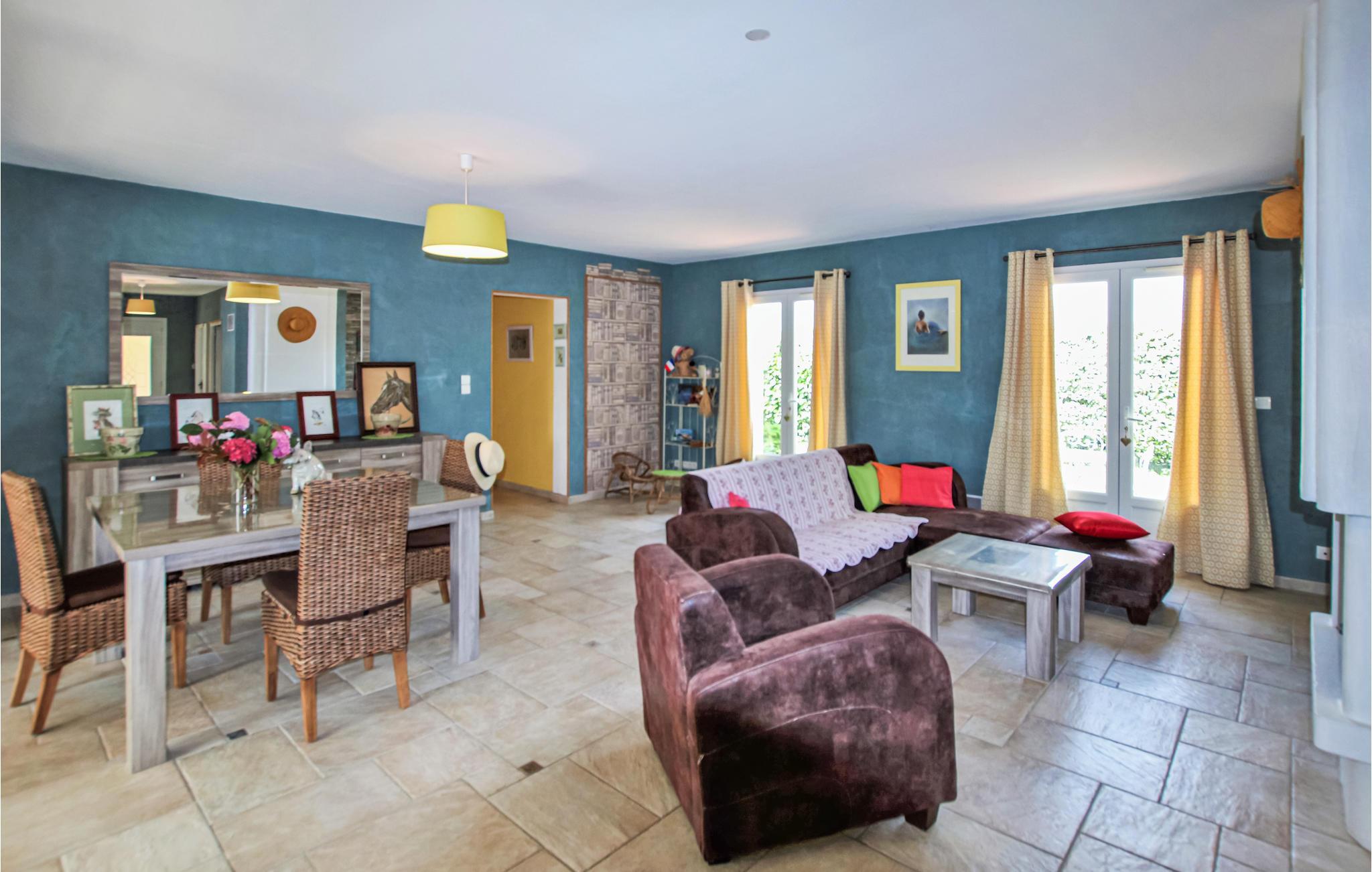 Det rummelige, lyse og varme interiør er meget behageligt - dekorationen er en blanding af provencalsk og moderne stil. Den store stue, der udvides med det udstyrede køkken, åbner på begge sider af pavillonen til en dejlig veranda og til terrasser, der er velegnet til måltider og aftener udendørs omkring grillpladsen.