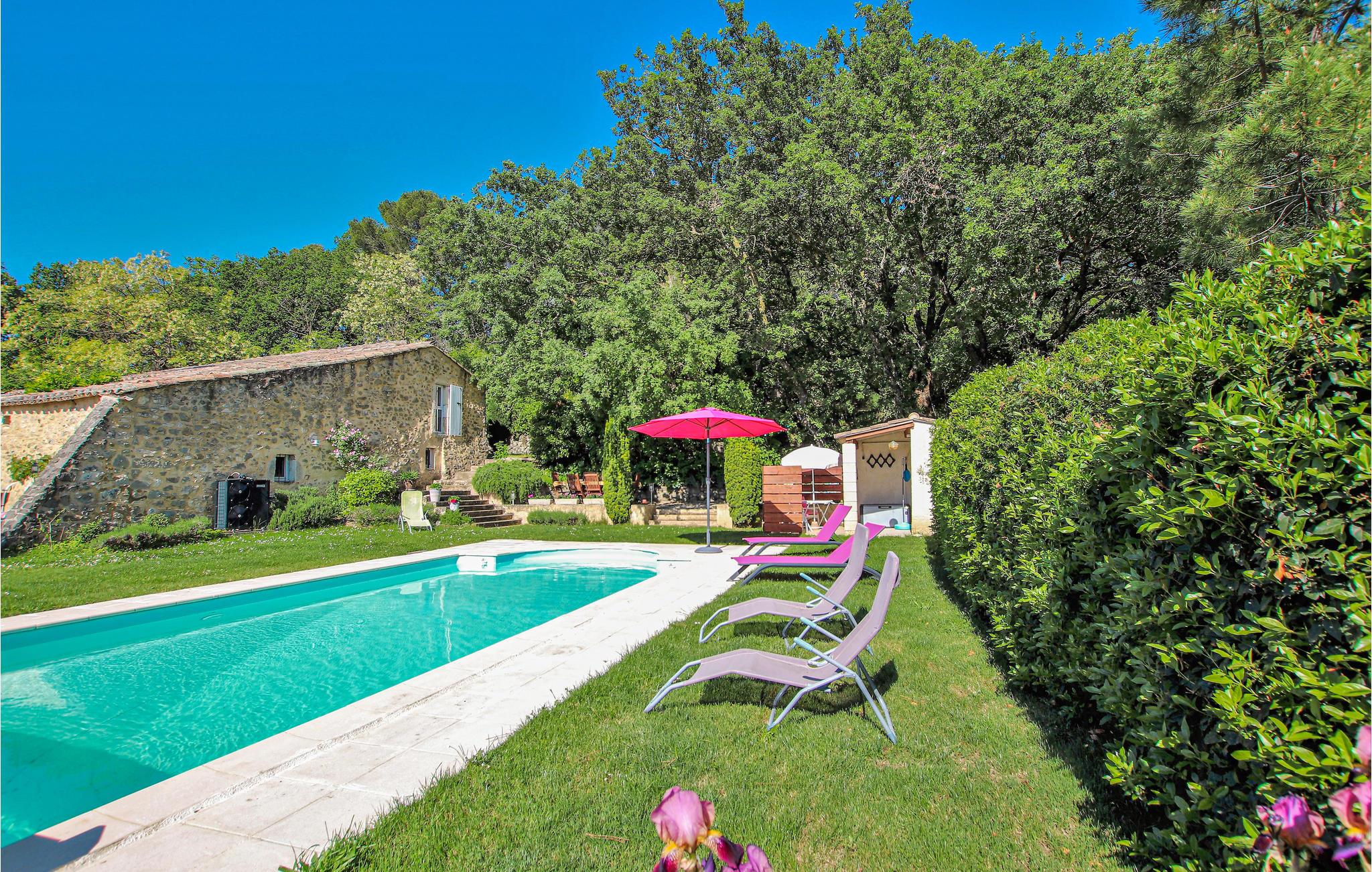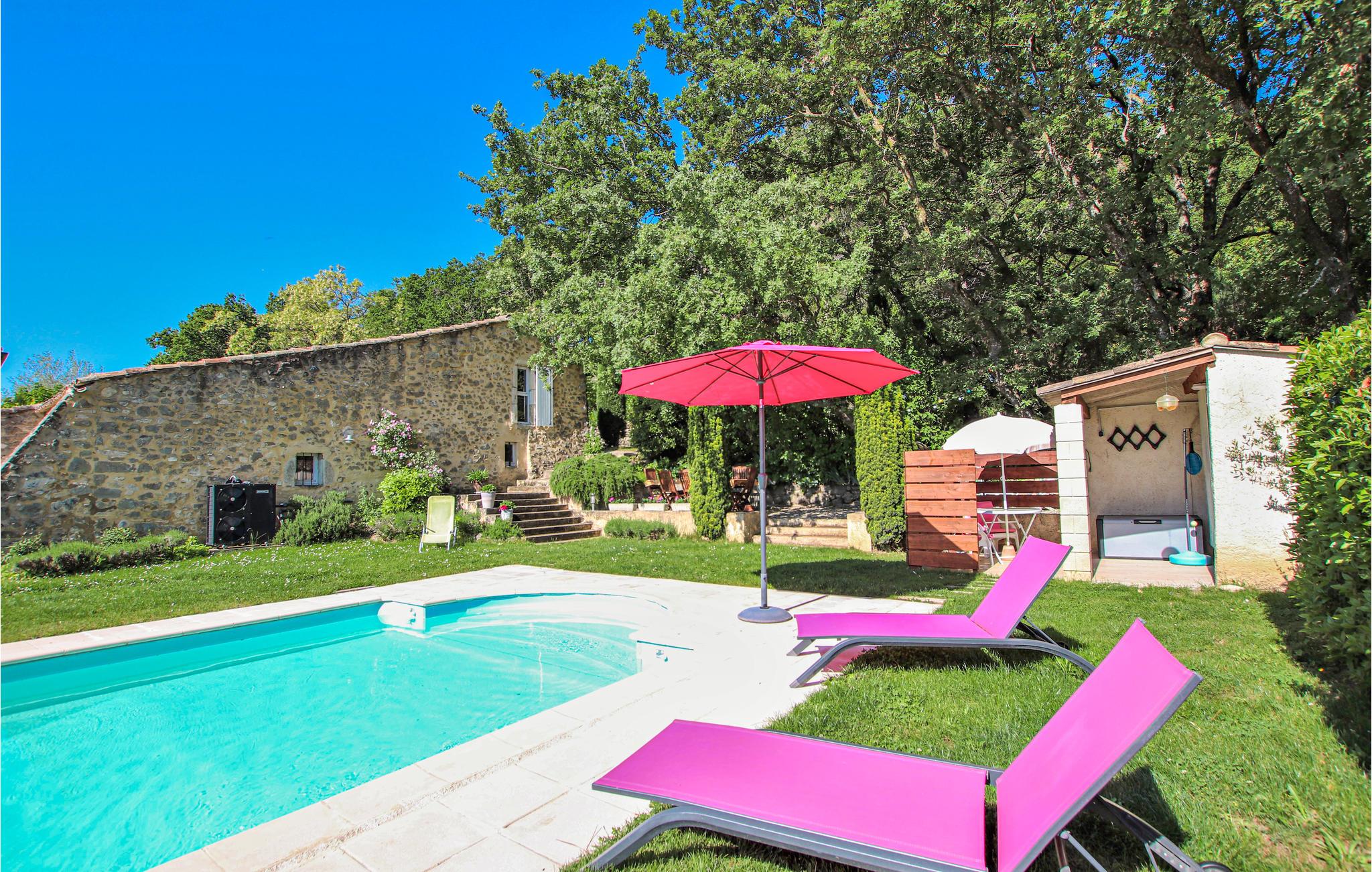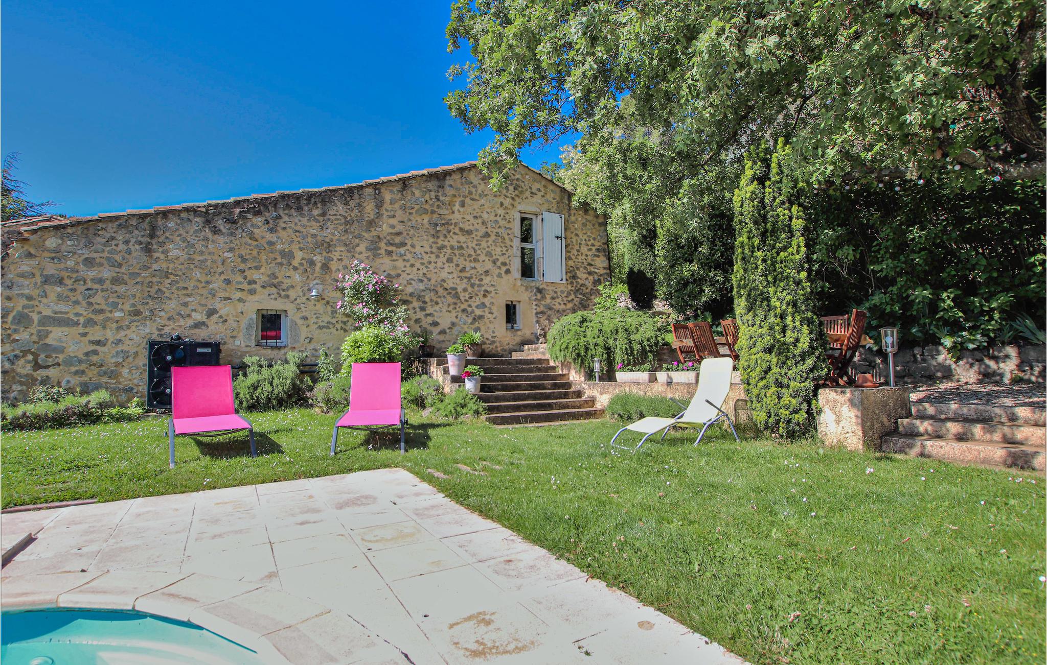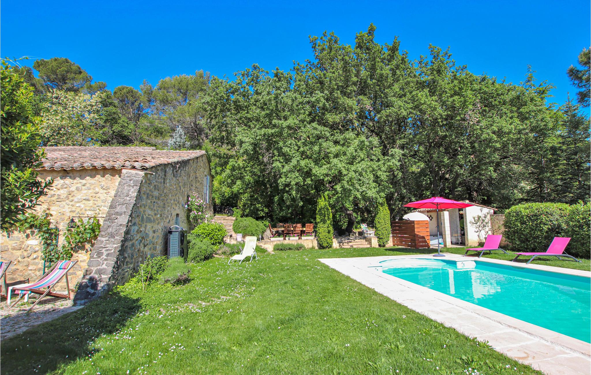 I den sydlige del af Drôùe Provençle, Frankrigs første økologiske område ligger dette charmerende og karakterfulde landsted opført i lokale sten og placeret i en idyllisk park med privat pool og en stor terrasse. Indendørs kan I se frem til kvalitetsmaterialer i indretningen samt en lys og hyggelig atmosfære. Den flotte udsmykning gør det nemt at læne jer tilbage og føle jer hjemme. Spis morgenmad i den grønne have, nyd freden og planlæg jeres kommende dag.