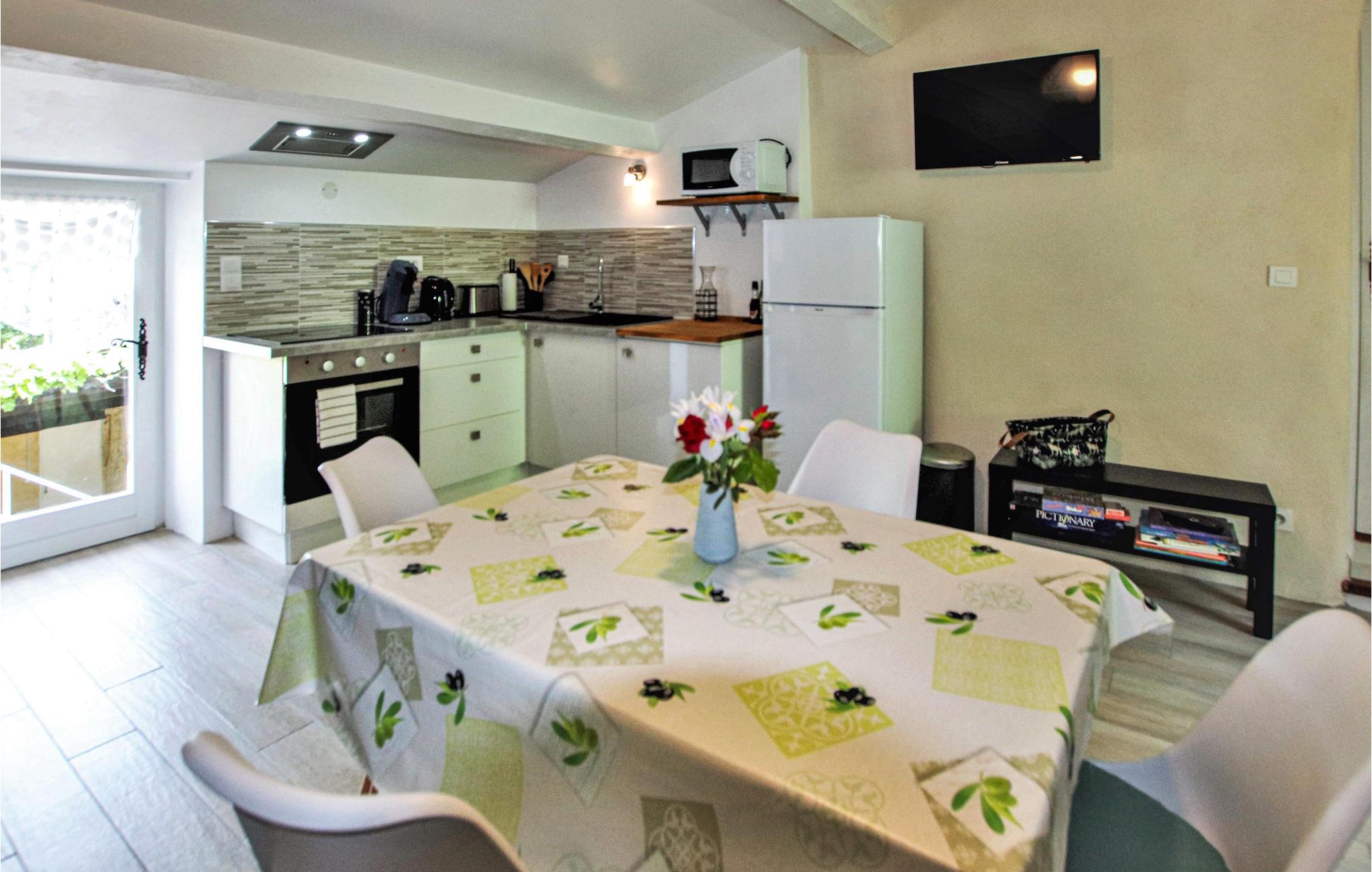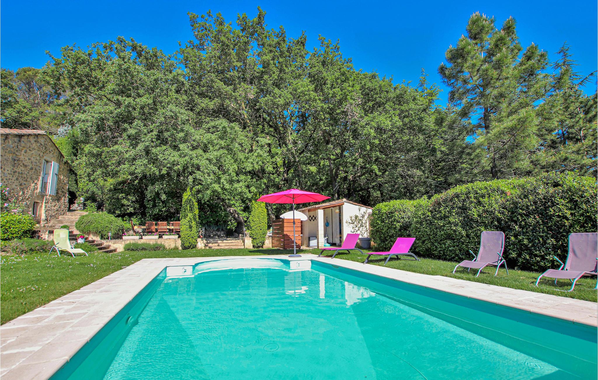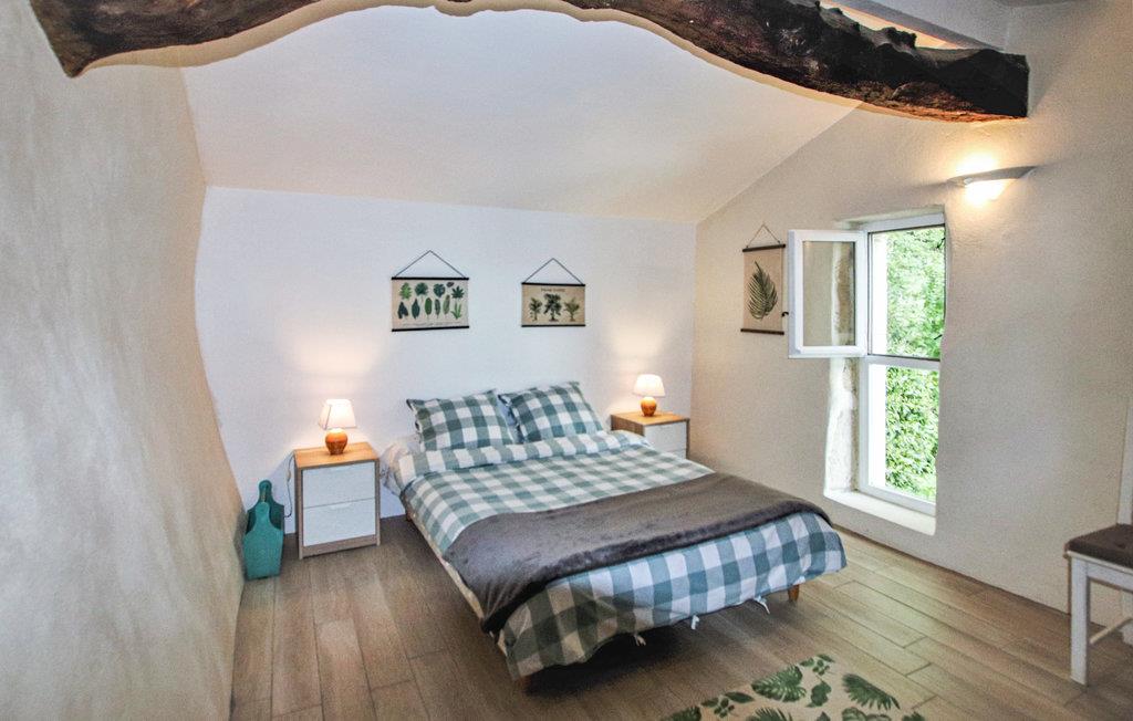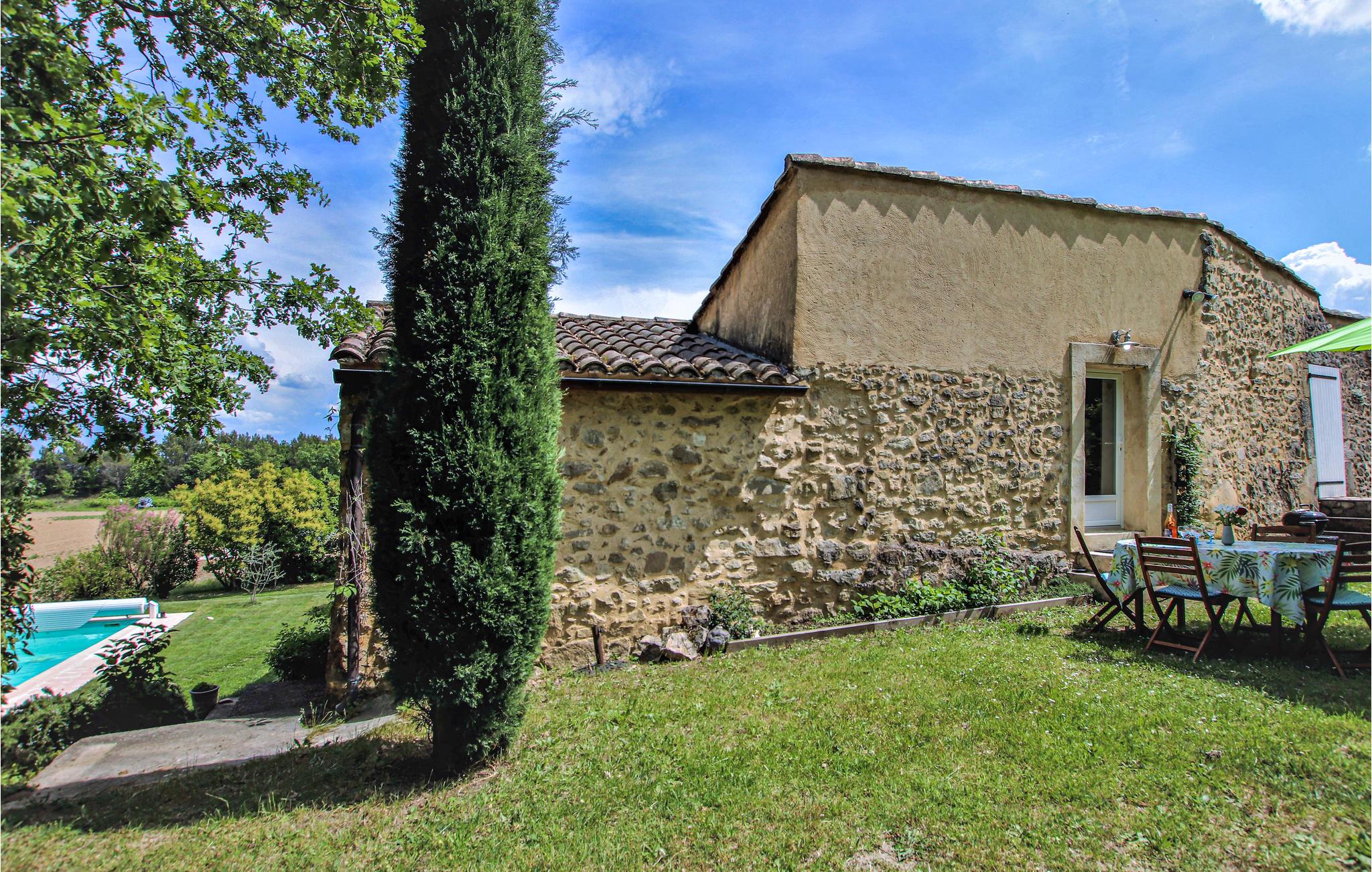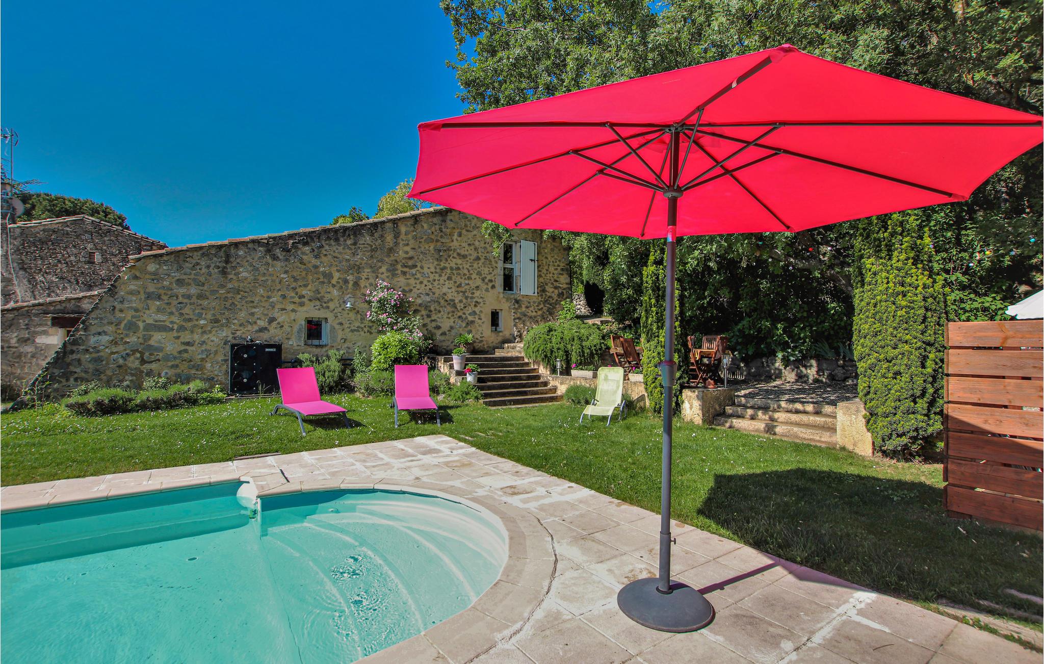 I den sydlige del af Drôùe Provençle, Frankrigs første økologiske område ligger dette charmerende og karakterfulde landsted opført i lokale sten og placeret i en idyllisk park med privat pool og en stor terrasse. Indendørs kan I se frem til kvalitetsmaterialer i indretningen samt en lys og hyggelig atmosfære. Den flotte udsmykning gør det nemt at læne jer tilbage og føle jer hjemme. Spis morgenmad i den grønne have, nyd freden og planlæg jeres kommende dag.