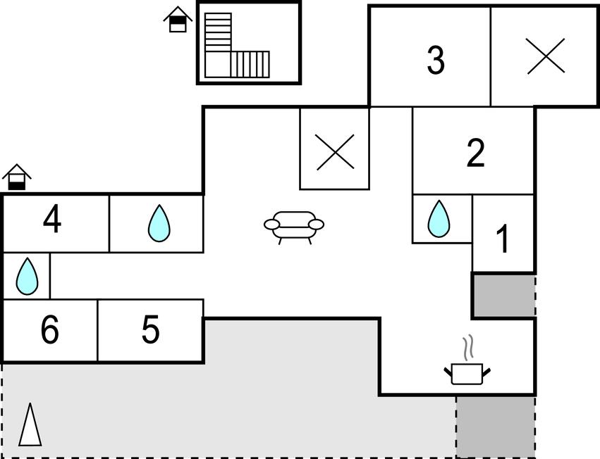 Badeværelse 3m2 (nr. 3) - WC. Varmt og koldt vand. Bruser
