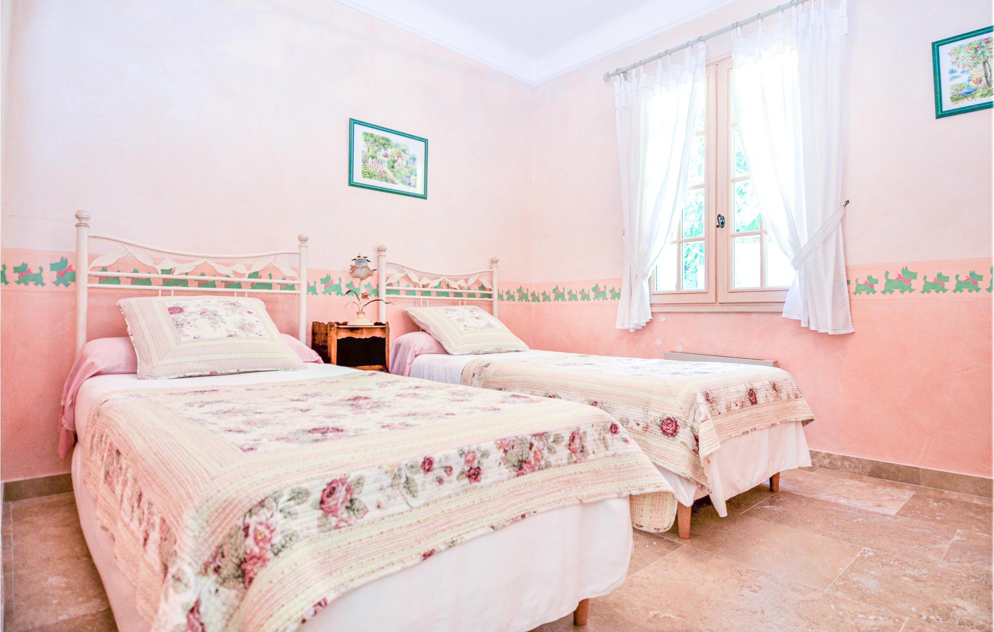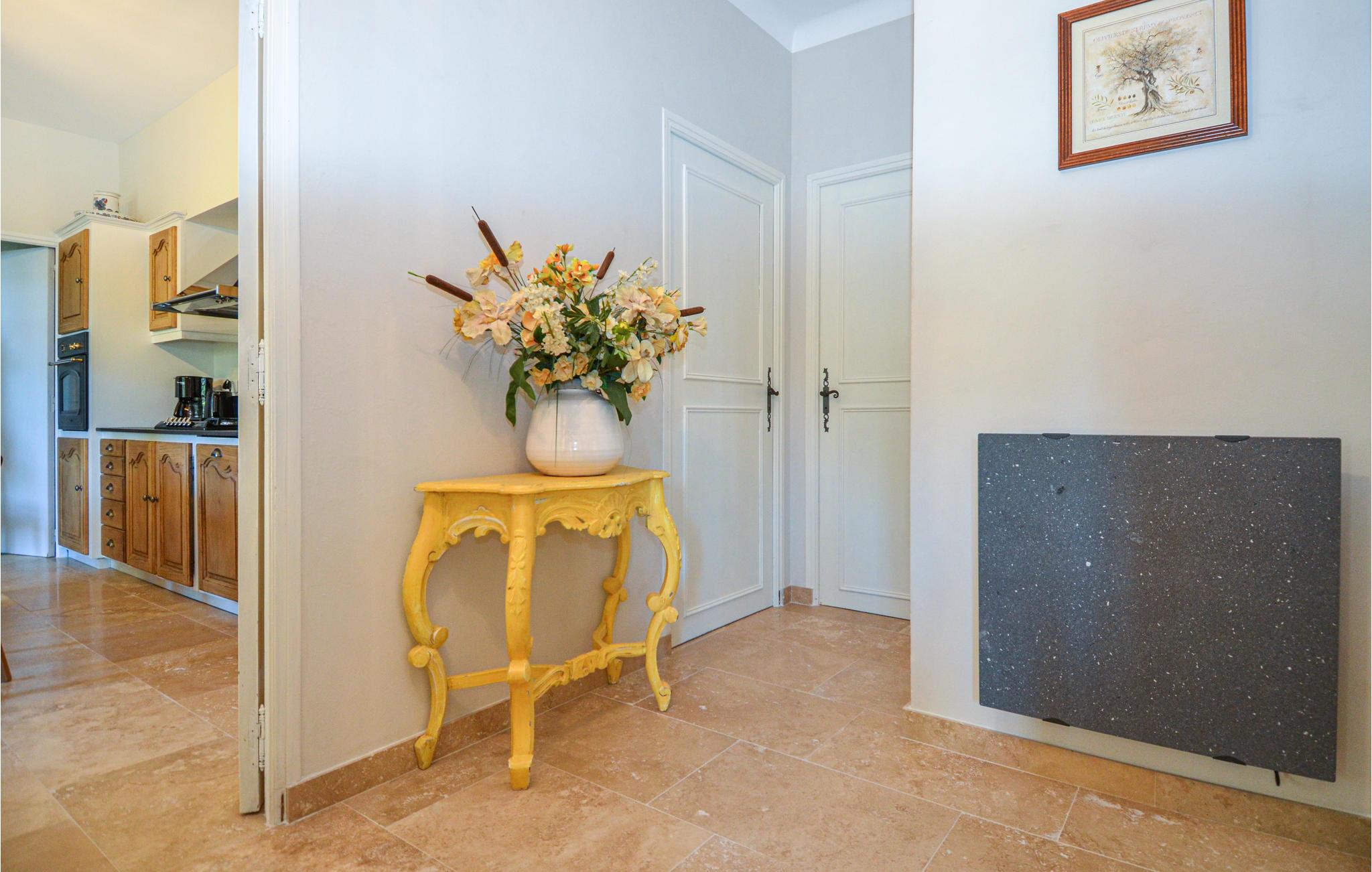Glæd jer til dette rolige og afslappende sted i landlige rammer. Den store have med swimmingpool giver jer mulighed for at slappe af og nyde fuldstændig privatliv. Den skønne terrasse er det ideelle sted til jeres middage. Indendørs finder I en stor stue, et højkvalitets udstyret køkken, tre komfortable soveværelser, et badeværelse, et separat toilet og en lille bruseniche i vaskerummet - så her har I alt, hvad I skal bruge og plads til at brede jer. De diskrete og venlige ejere bor i nærheden.