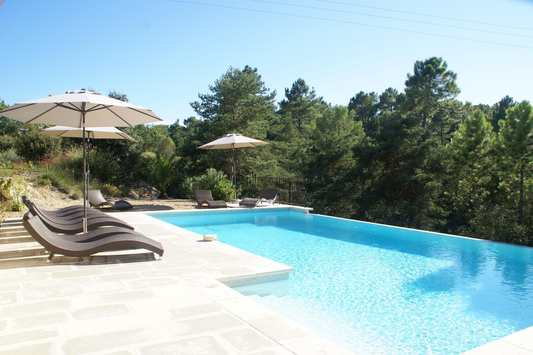 Gemt væk i rolige skovmiljøer er denne moderne lejlighed med aircondition i Montauroux den perfekte tilflugtssted for familier. Med 2 hyggelige soveværelser kan det komfortabelt sove op til 6 gæster. Børn er særligt velkomne her, med en gratis høj stol og børneseng til rådighed, hvilket sikrer en stressfri familieferie. Ejendommen er omgivet af duften af ??eukalyptus, lavendel og rosmarin og tilbyder privatliv og natur lige uden for døren. Du kan køle af i den fælles swimmingpool eller nyde en afslappet grill på den overdækkede terrasse. Tennisbaner og en golfbane er i nærheden for dem, der nyder at være aktive. Placeringen er ideel til at udforske regionen - tag naturskønne dagsture til Cannes (25 km) eller Fréjus (30 km), eller slap af ved søen St. Cassien kun en kort køretur væk. Uanset om du søger natur, komfort eller lokal charme, tilbyder denne lejlighed det hele i et fredeligt provencalsk miljø.