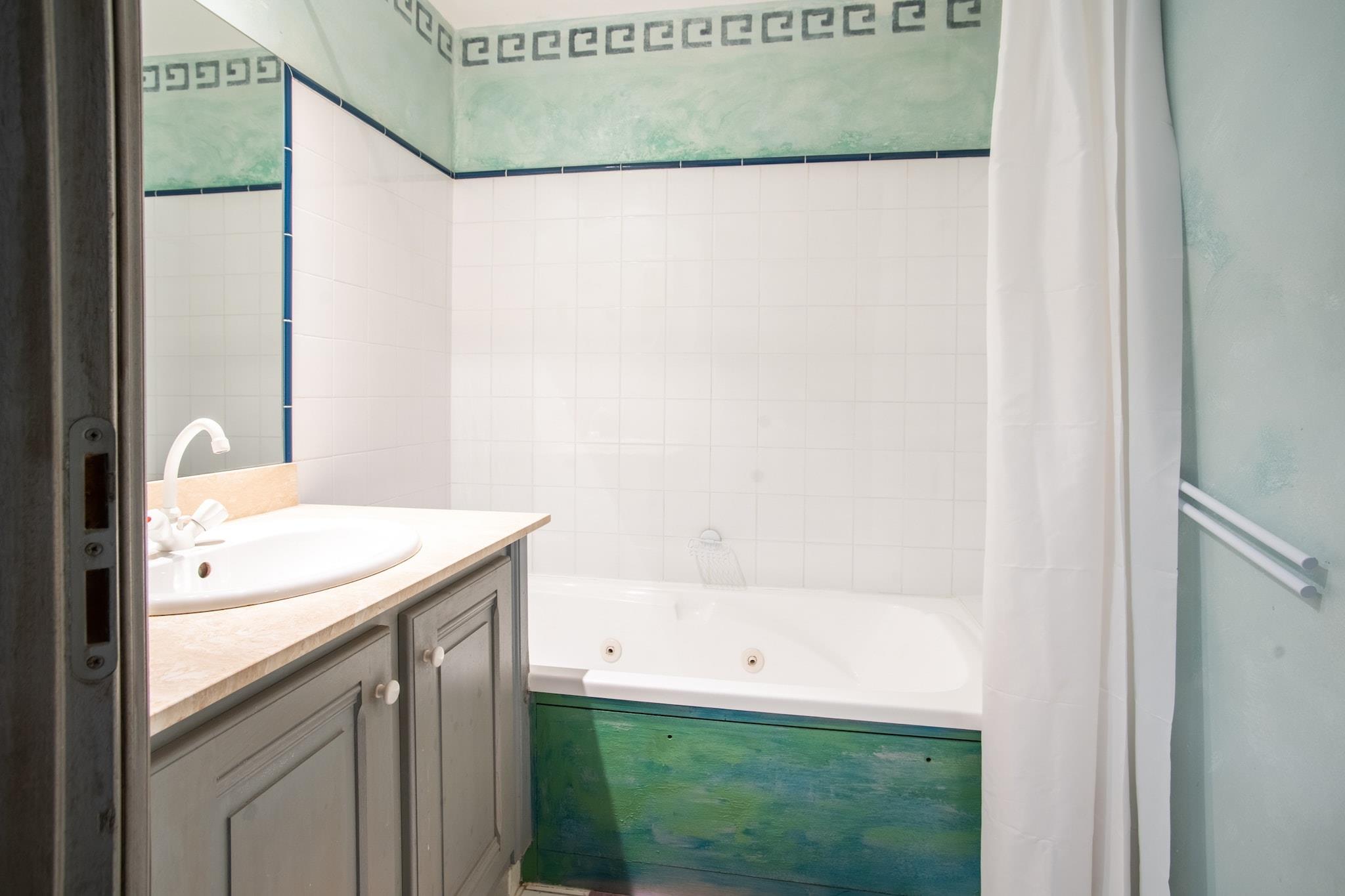 På 2. etage: (Køkken(elkedel, brødrister, komfur(Komfur med to kogeplader, elektrisk), emhætte, kaffemaskine, mikrobølgeovn, køle-fryseskab), Stue/soveværelse(dobbeltseng(160 x 200 cm), Fjernsyn(fladskærm), sofahjørne, stereoanlæg), badeværelse(Bubble bath, bruser, håndvask, toilet), klimaanlæg, elevator) tørretumbler(deles med andre gæster, betalt), vaskemaskine(deles med andre gæster, betalt), terrasse(deles med andre gæster), have(deles med andre gæster), parkering, swimmingpool(deles med andre gæster), tennisbane(deles med andre gæster), petanquebane