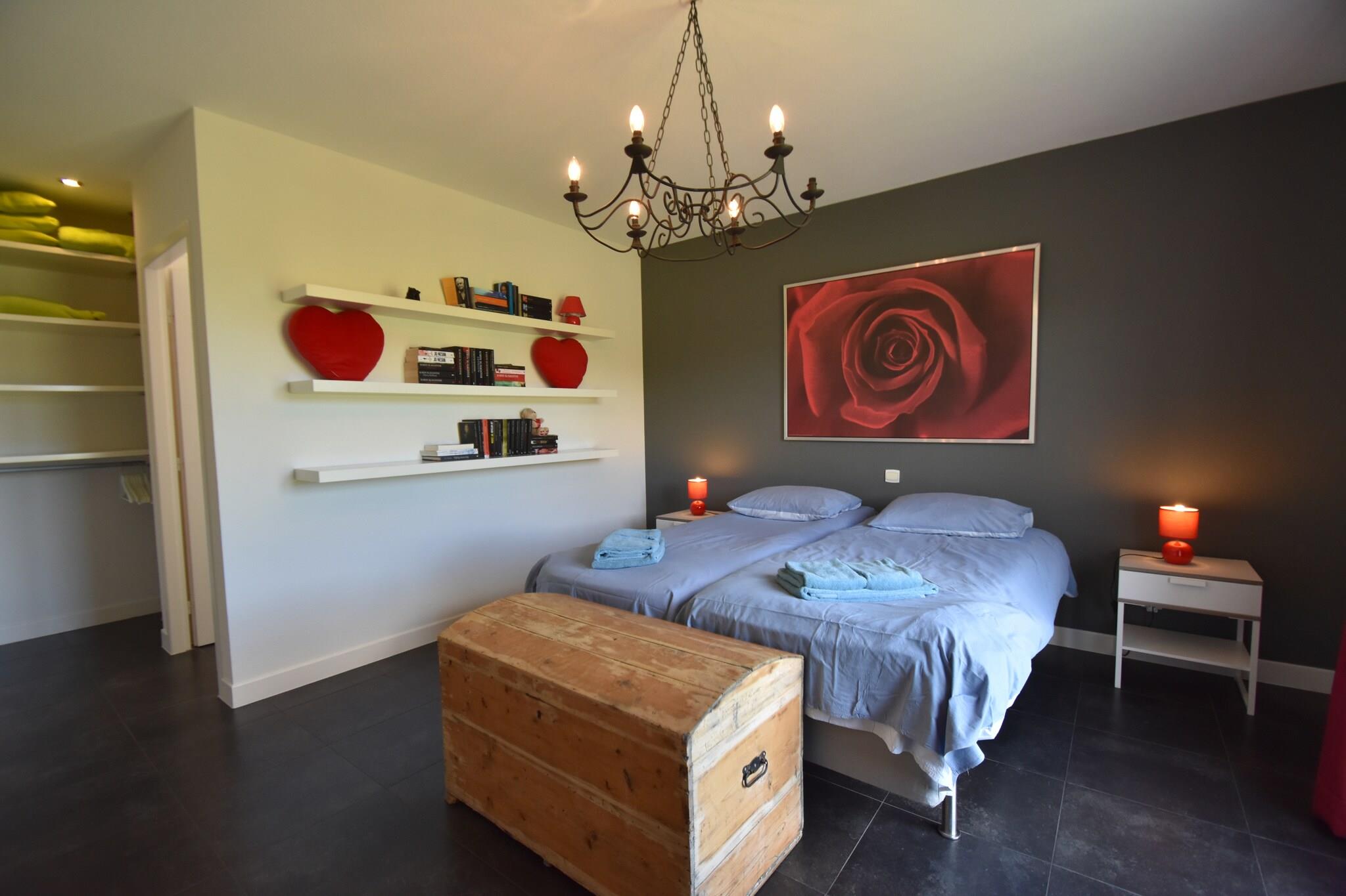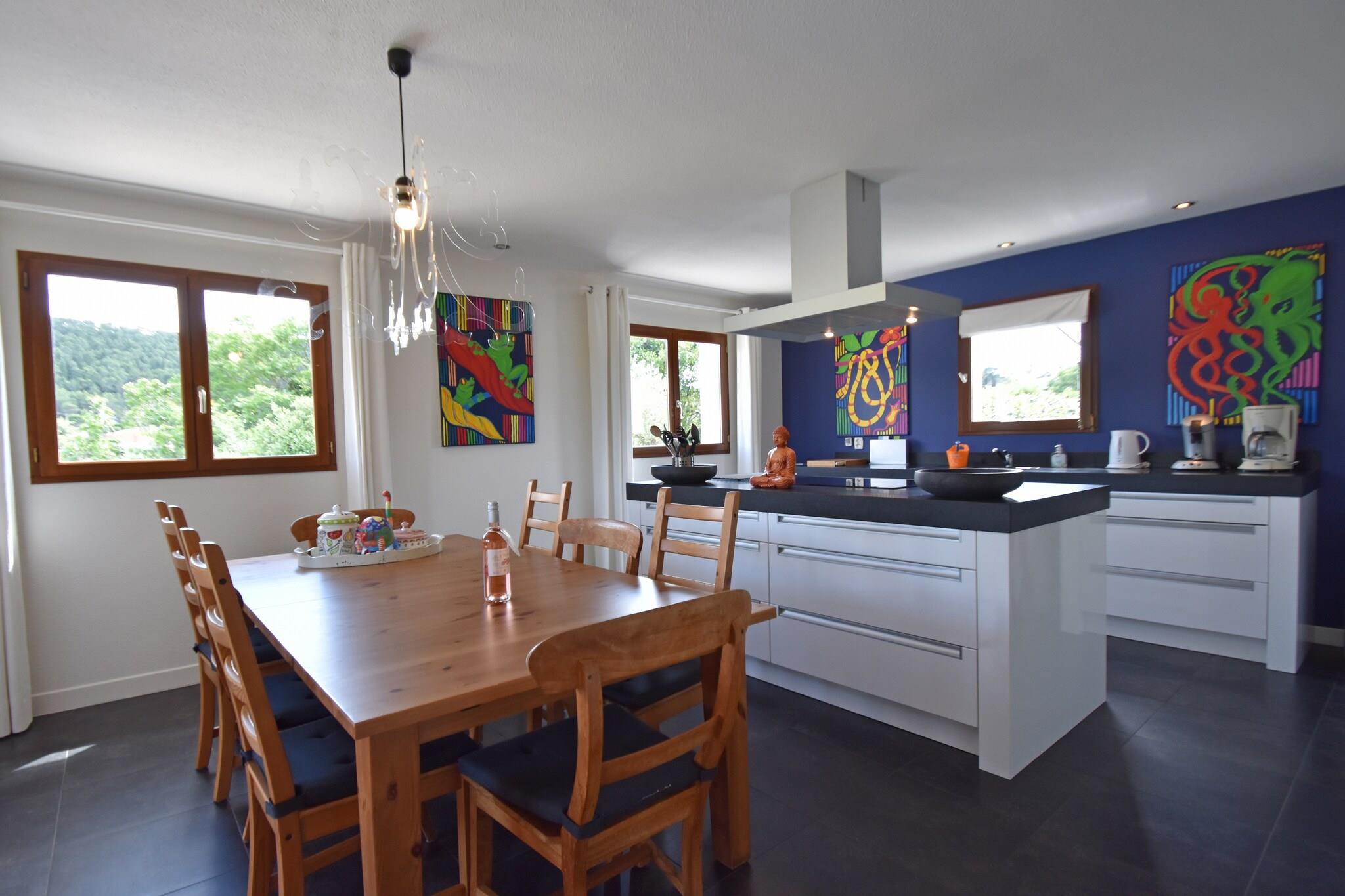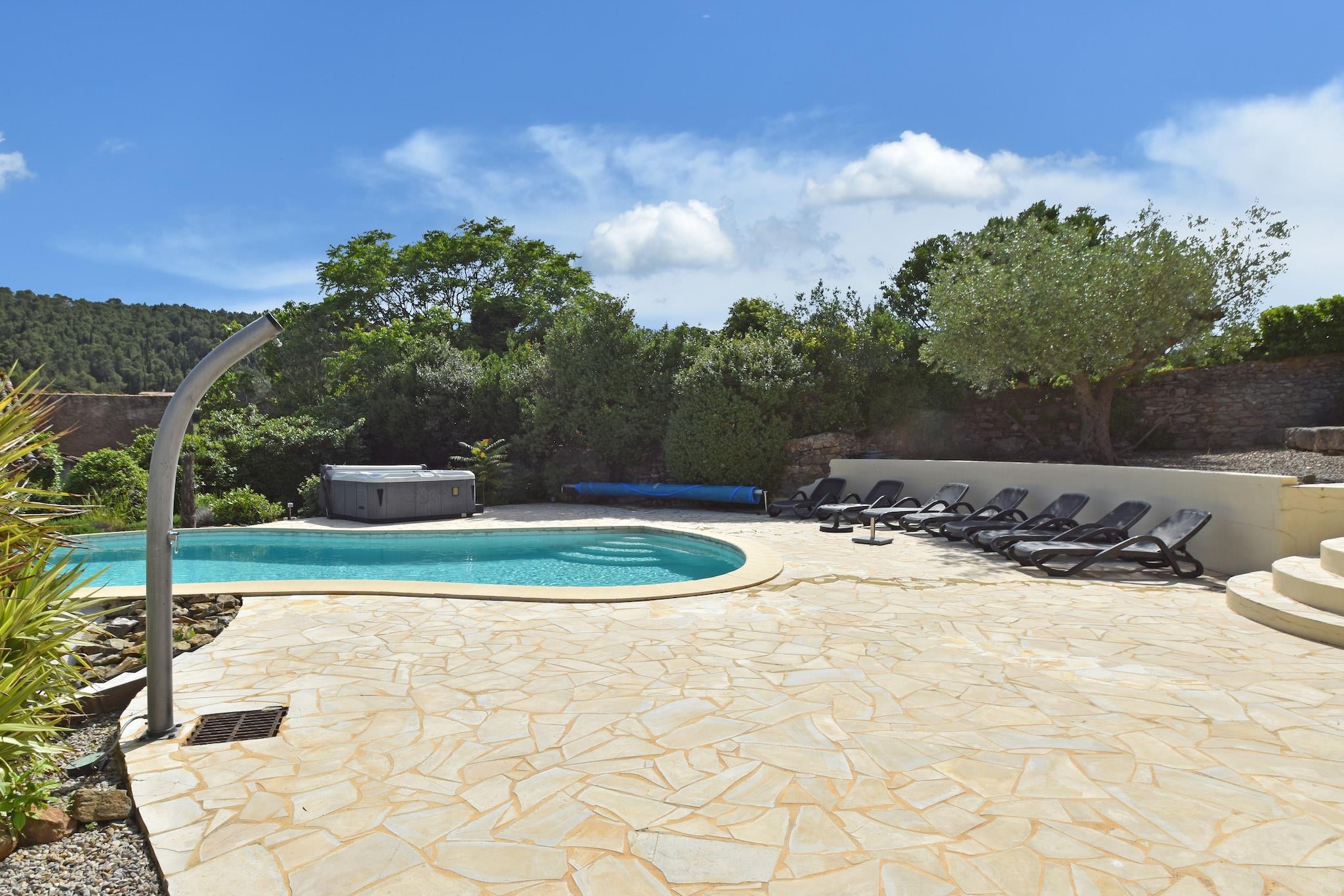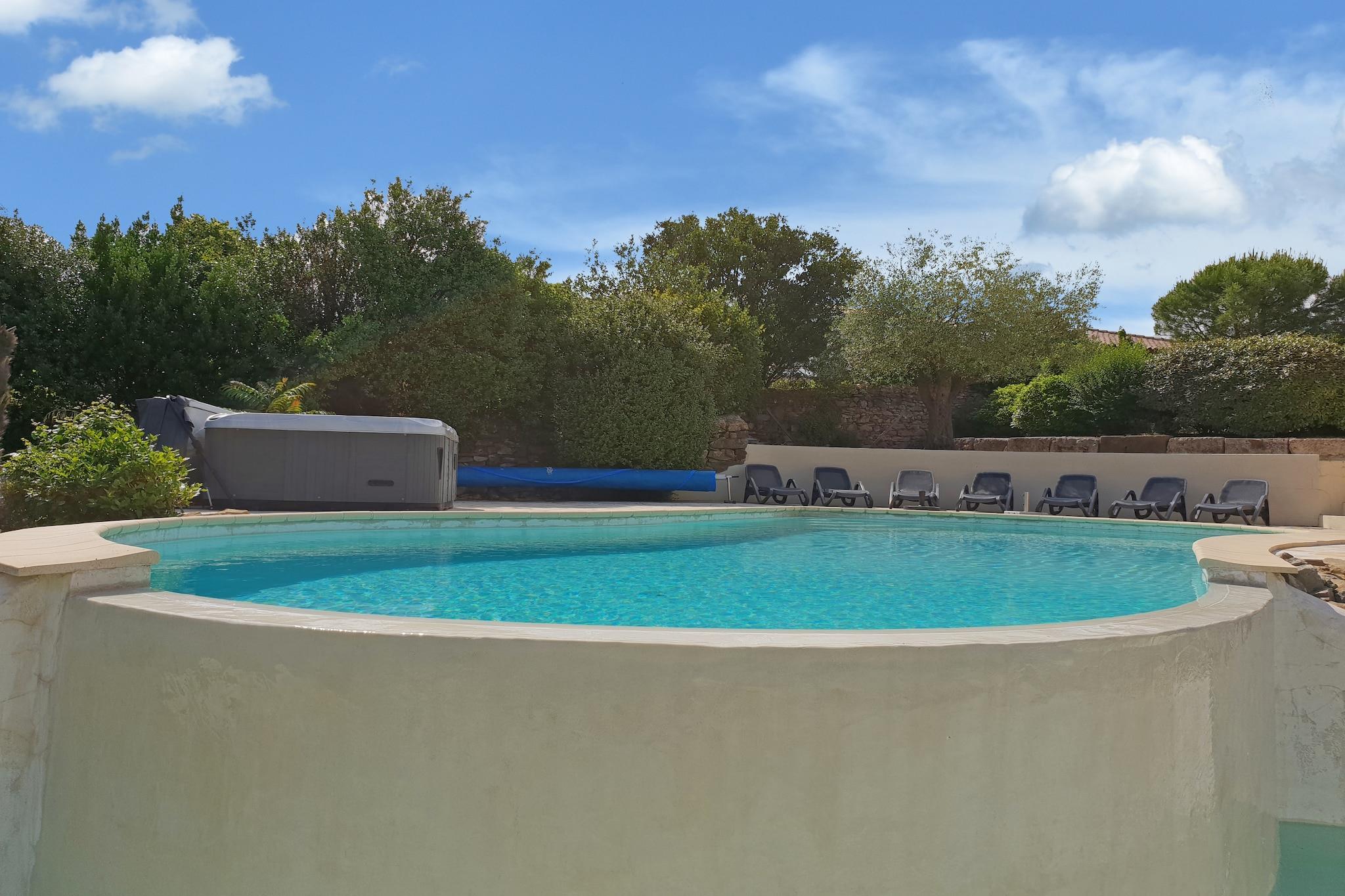 Gemt væk i hjertet af Montbrun-des-Corbières, denne 4-værelses villa blander moderne komfort med Languedocs afslappede charme. Designet til op til 8 gæster, det er perfekt til familier, venner og endda firbenede ledsagere. Nyd interiøret med aircondition, et fuldt udstyret køkken og et udvalg af solrige eller skyggefulde terrasser. Udenfor byder den anlagte have på en funklende privat pool, en boulebane og plads til udendørs spisning under stjernerne. Villaens beliggenhed inviterer til udforskning - til fods, på cykel eller med din hvalp på slæb. Gå en tur i de naturskønne landsbygader, vandre gennem nærliggende vinmarker, eller nyd kæledyrsvenlige stier rundt i naturparken Narbonnaise en Méditerranée (40 km). For vandelskere, tag til søstranden ved Homps (12 km) eller prøv vandsport i Puichéric (10 km). Sejlads langs Canal du Midi er et must - og kæledyr er velkomne ombord på mange lejemål! Inden for en kort køretur kan du opdage Homps' restauranter ved vandet (11 km), der serverer friske middelhavsfisk og skaldyr, eller forkæl dig selv med vinsmagning på nærliggende domæner. Hent frisk brød fra landsbyens bageri (1 km) og tilbered en grillfest tilbage ved villaen. Med Carcassonne kun 29 km væk, kan du nemt kombinere din afslapning ved poolen med slotbesøg, markedsvandring og livlig cafékultur.
