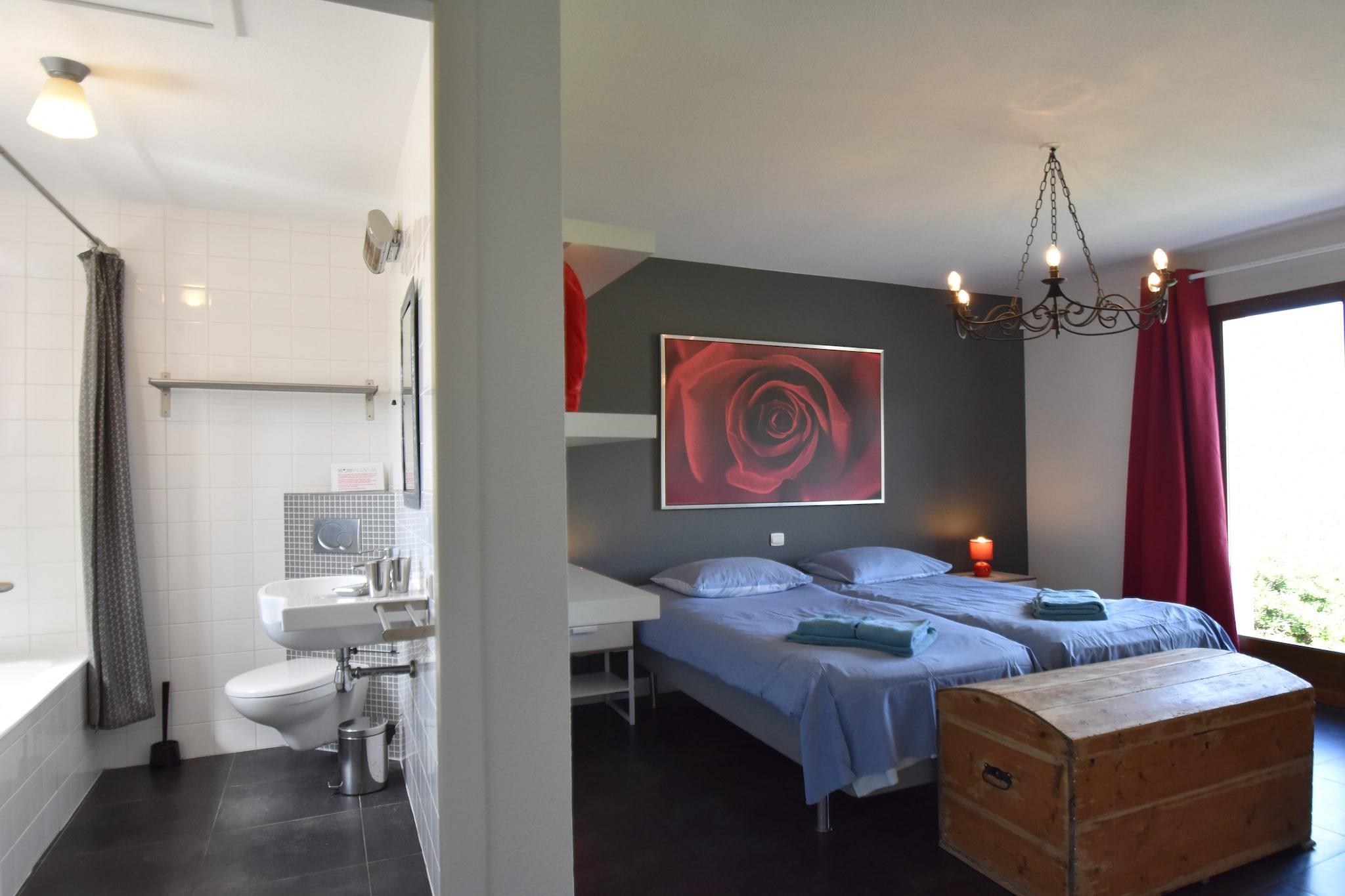 Stueetage: (Stue(39 m2)(Fjernsyn(fladskærm, Smart-TV, Hollandske TV-kanaler), kakkelovn(træ), sofahjørne, DVD-afspiller, CD-afspiller, stereoanlæg), Køkken(24 m2)(spisebord, elkedel, brødrister, komfur, emhætte, ovn, mikrobølgeovn, opvaskemaskine , køle-fryseskab), Soveværelse med badeværelse(dobbeltseng eller 2 enkeltsenge Senge(boxmadras), badekar, håndvask, toilet), toilet(2 m2), bryggers(8 m2)(køle-fryseskab, tørretumbler, vaskemaskine, terrasse(overdækket), strygebræt, strygejern), havedøre, klimaanlæg, barneseng, barnestol) På 1. etage: (soveværelse(16 m2)(dobbeltseng eller 2 enkeltsenge Senge(boxmadras)), soveværelse(8 m2)(køjeseng(80 x 200 cm)), Soveværelse med badeværelse(15 m2)(dobbeltseng eller 2 enkeltsenge Senge(boxmadras), bruser, håndvask, toilet), badeværelse(3 m2)(bruser, håndvask, toilet), klimaanlæg) carport, bruser, havedøre, klimaanlæg, terrasse, have(privat, anlagt have, delvist indhegnet, oplyst, 6400 m2), havemøbler, solstole, grill, parkering, swimmingpool(privat, opened from May upto and including Oct), tennisbane(privat), petanquebane, bordtennisbord