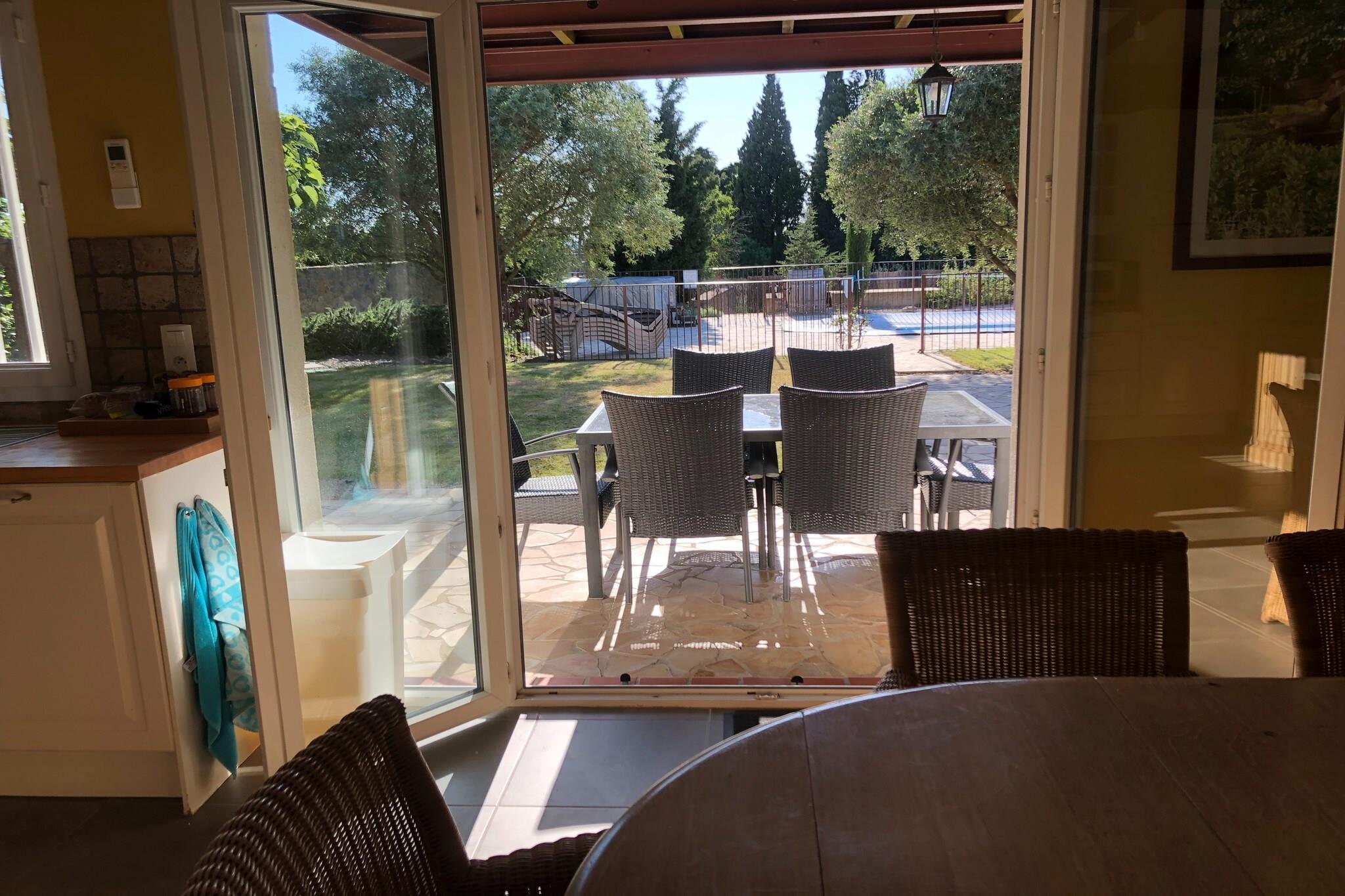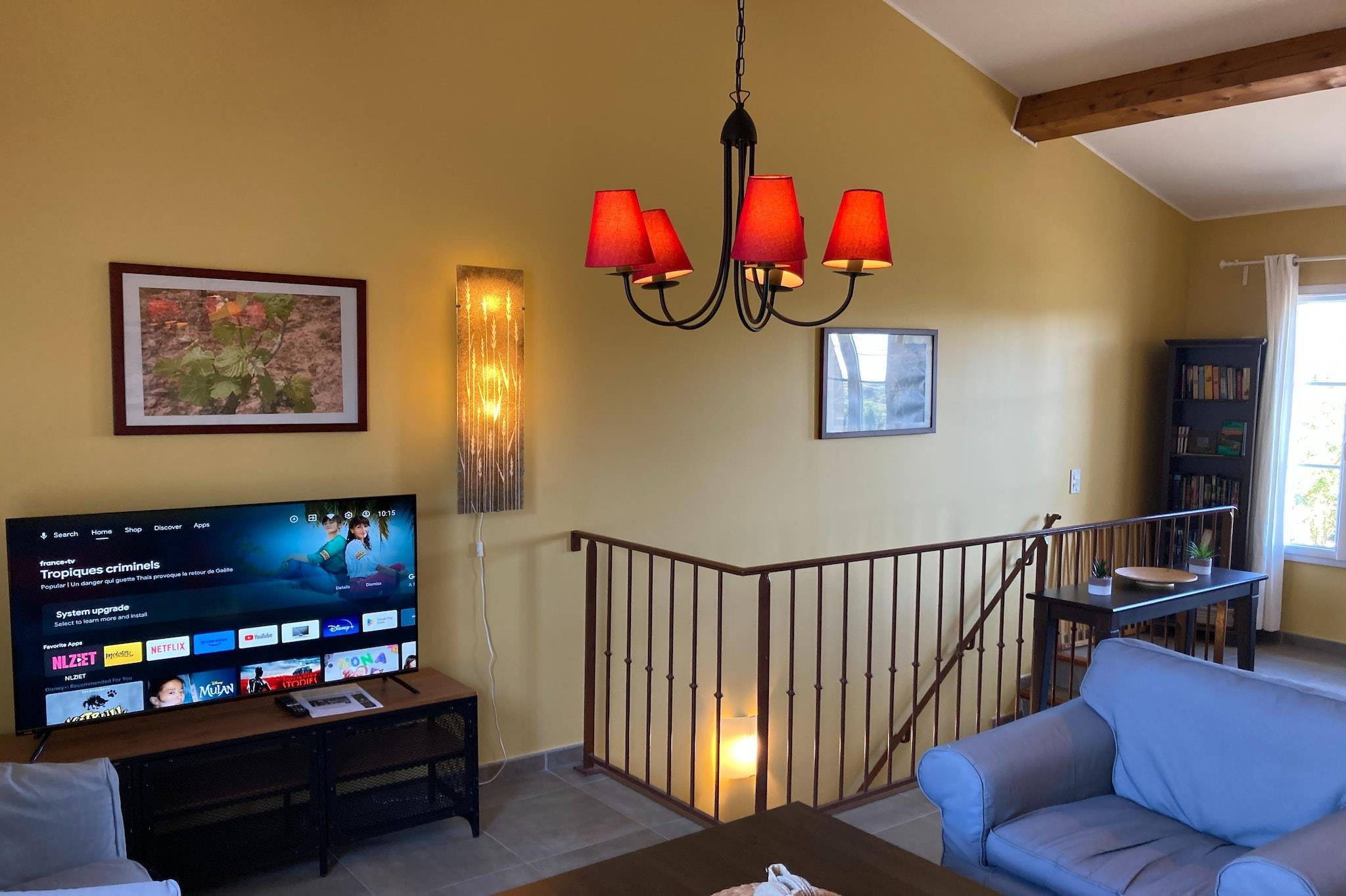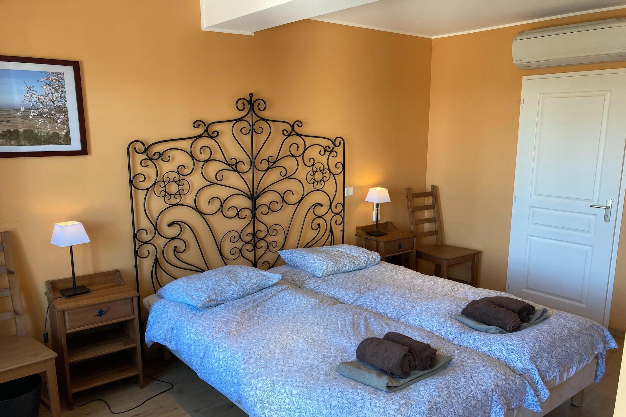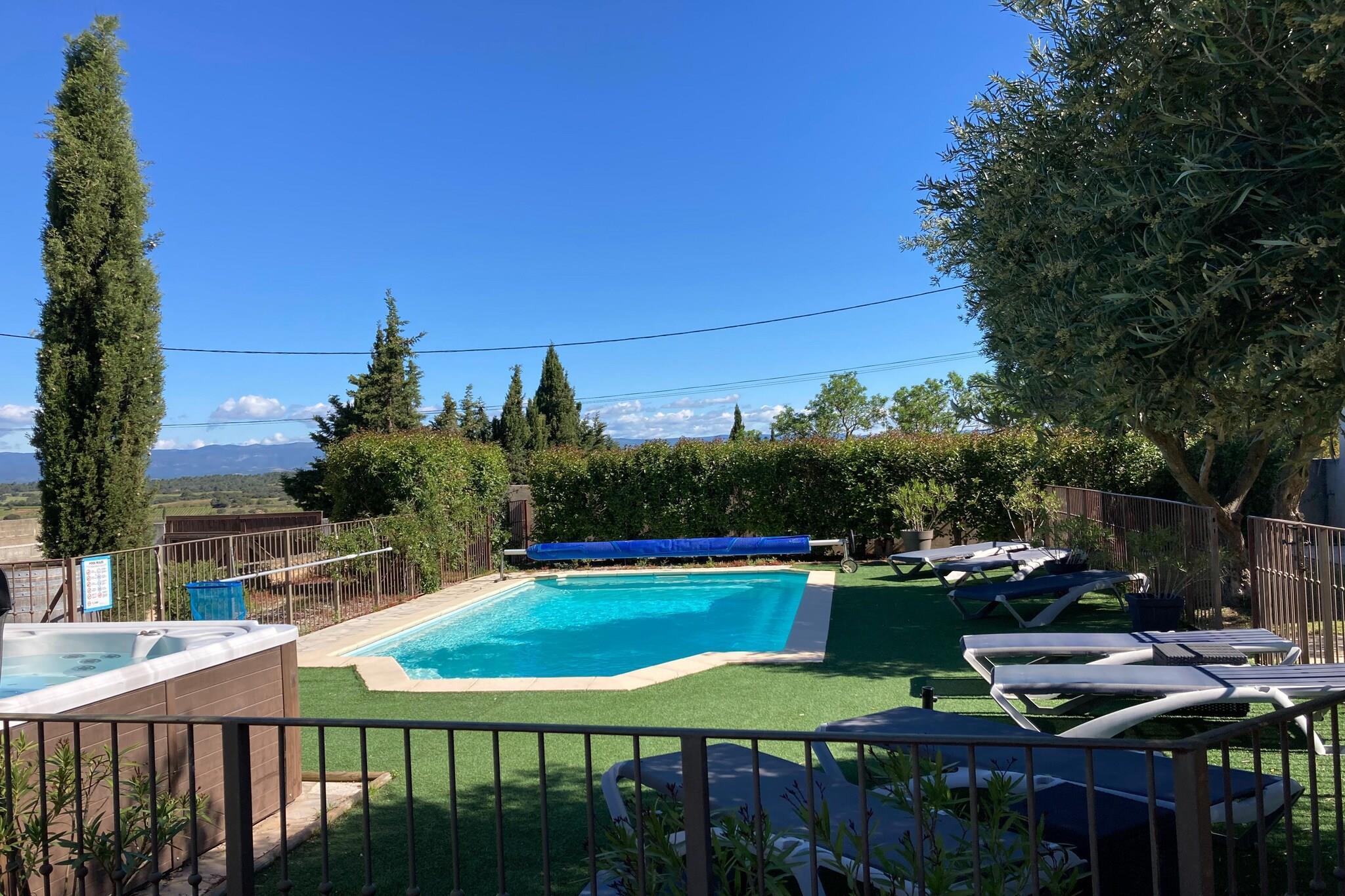 Udsigt over vingårde og afslapning Omgivet af de bølgende vinmarker i Montbrun-des-Corbières tilbyder denne charmerende 3-værelses villa en perfekt blanding af komfort og landskabelig skønhed. Med plads til op til 6 gæster har den en opvarmet privat pool, beroligende udendørs boblebad og rummelige terrasser til at slikke solen eller nyde måltider under åben himmel. Den anlagte, indhegnede have er ideel til at slappe af på liggestole eller samles til en grill under den provencalske himmel. Indendørs finder du et fuldt udstyret køkken, aircondition og indbydende opholdsrum til hyggelige aftener. Kæledyrsvenlige eventyr Tag op til to kæledyr med og udforsk regionen sammen! Start din dag med en spadseretur gennem de nærliggende vinmarker eller nyd naturskønne gåture til bageriet kun 1 km væk. En kort køretur bringer dig til søen ved Homps for picnic ved vandet, eller Puichéric for spændende vandsport. Det omkringliggende landskab byder på utallige kæledyrsvenlige vandrestier, mens den nærliggende Narbonnaise Natural Regional Park sørger for en perfekt dag ude med dine lodne venner. Lokale smagsoplevelser og seværdigheder Lézignan-Corbières, kun 7,5 km væk, er perfekt til shopping, cykeludlejning og prøvesmagning af regionale vine. Nyd friske kager fra landsbyens bagerier, opdag restauranter i Homps ved vandet, eller tag dagsture til historiske Carcassonne og Narbonne. Efter at have udforsket, kan du vende tilbage til dit private tilflugtssted for en svømmetur i solnedgangen, et afslappende bad i boblebadet eller en venskabelig omgang bordtennis under stjernerne.