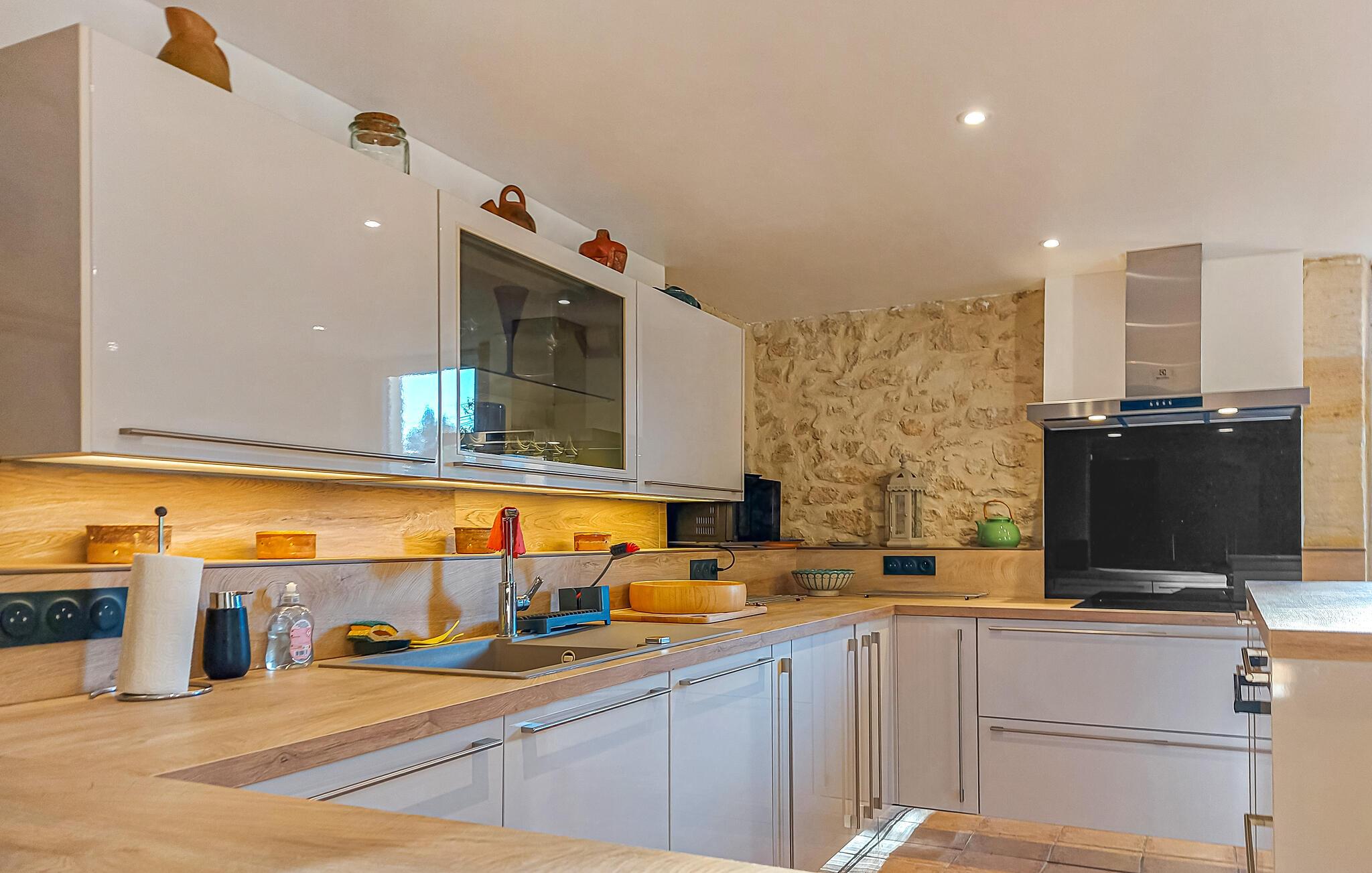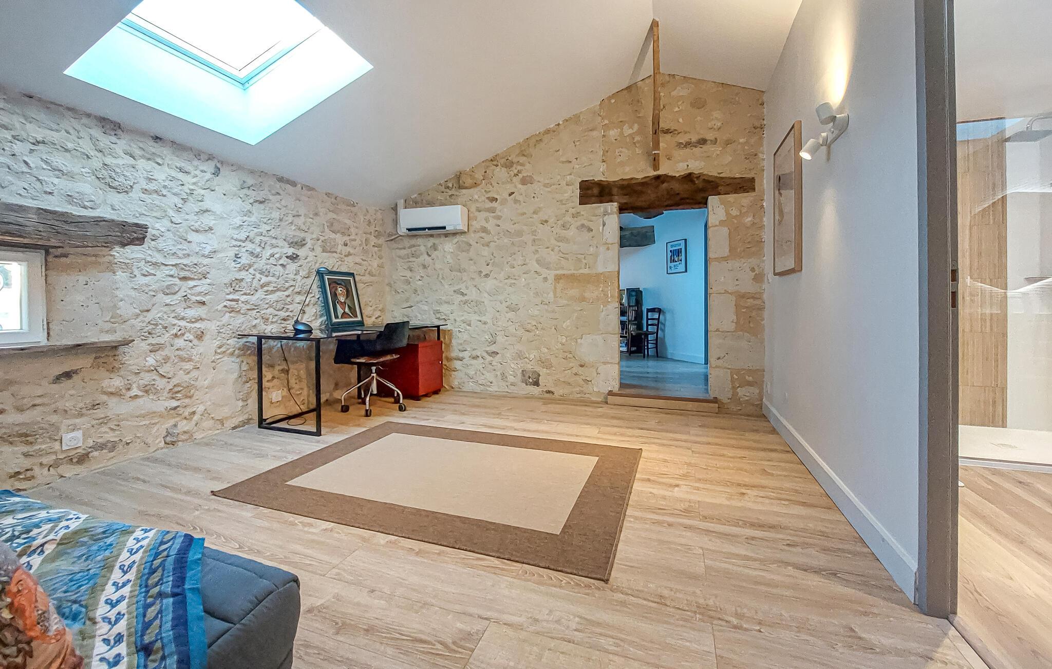 Denne rummelige og omhyggeligt renoverede ejendom fra 1800-tallet ligger omgivet af vinmarker, skove og enge, hvilket gør den ideel til længe ventede familiesammenkomster eller hyggelige dage med venner. I det komfortabelt møblerede interiør skaber originale detaljer som naturstensvægge og gamle træbjælker en autentisk og hyggelig atmosfære. Glæd jer til muntre madlavningsaftener, snak om svundne tider ved pejsen med et glas økologisk vin fra vingården og streaming af en god serie.