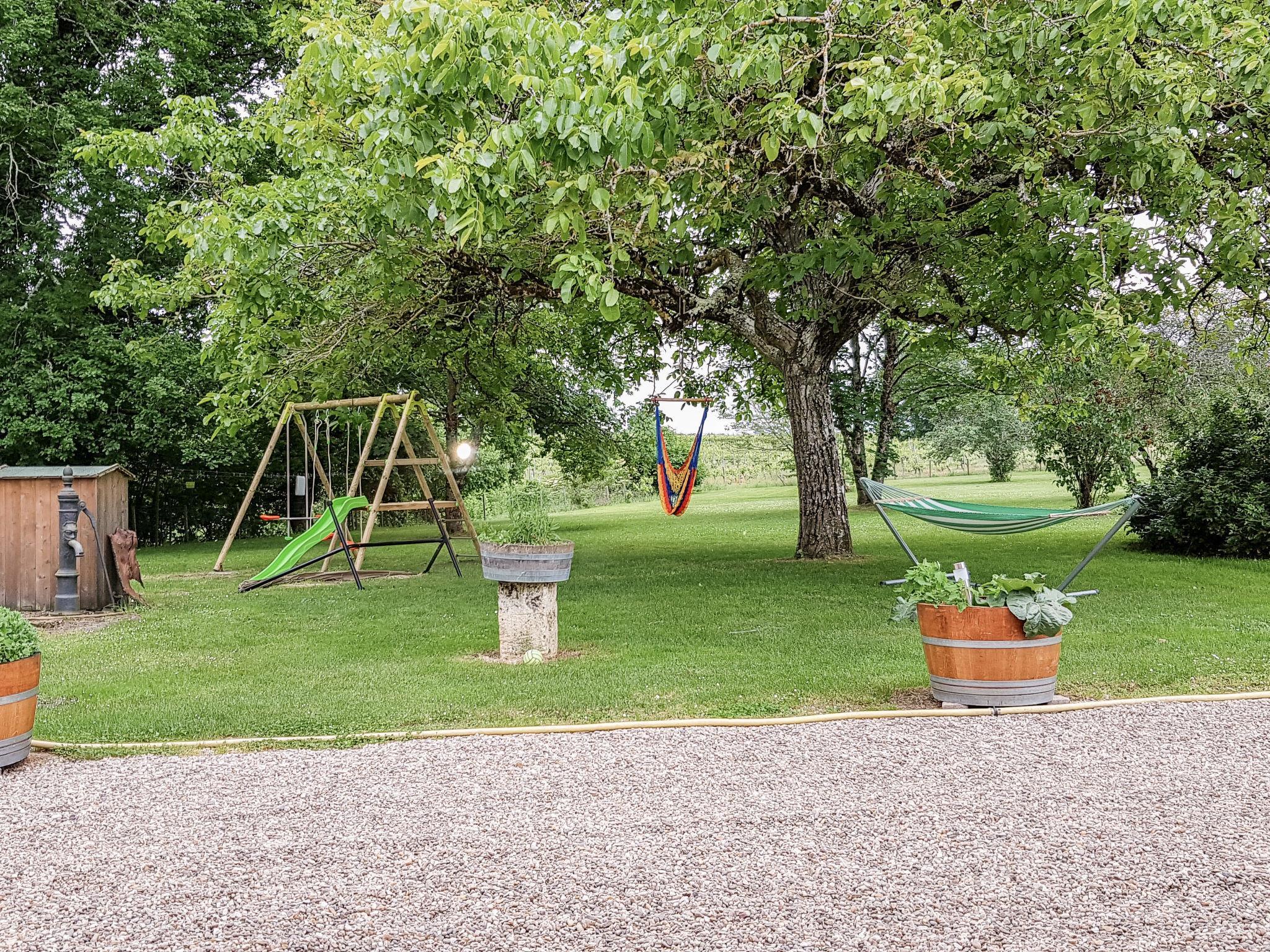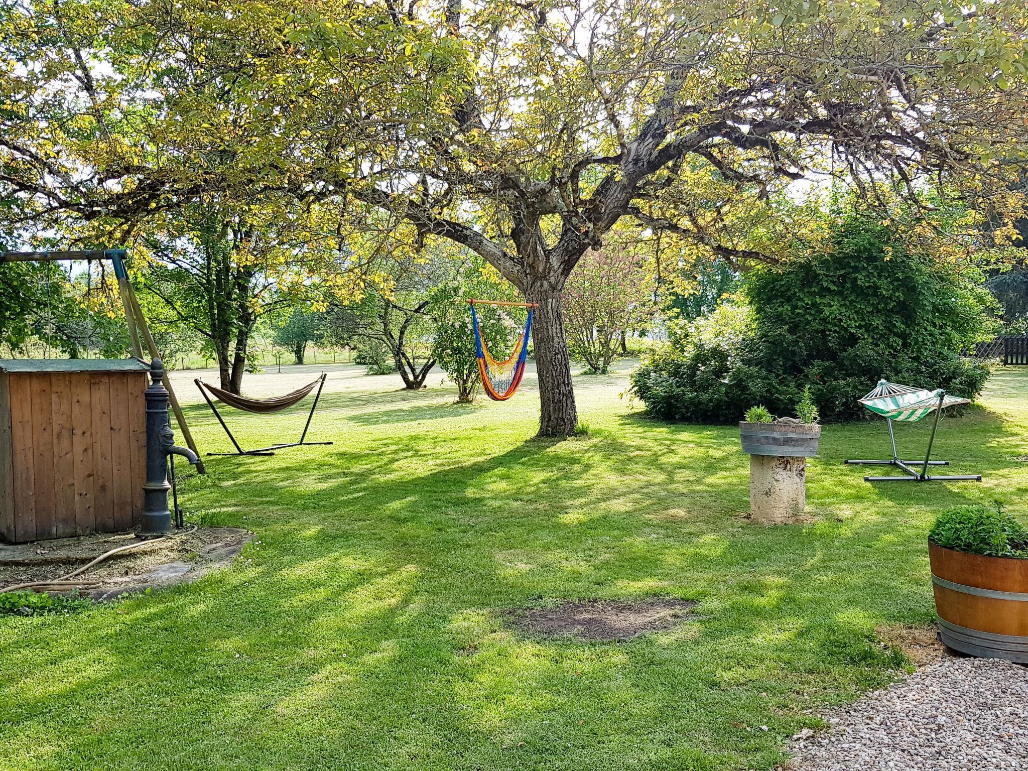 La Raze 6 km from Moncaret: Old, large, rustic country house "La Raze", surrounded by trees and vineyards. On the outskirts, 5 km from the centre of Bonneville, in a secluded position on a slope, 8 km from the lake, in a cul-de-sac, in the countryside. Private: natural state property 1 ha, park 8'000 m2 with lawn and trees, swimming pool angular, with privacy, fenced (10 x 5 m, depth 150 cm, seasonal availability: 20.May. - 30.Sep.) with salt-electrolysis pool-cleaning system. Table tennis, volleyball court, terrace (100 m2). In the house: bicycles available. Available: bicycles (8), children's bicycles (2). Motor access (150 m via unmade road). Parking at the house on the premises. Shop 6 km, supermarket 15 km, shopping centre 10 km, restaurant 6 km, café 6 km, bus stop "Vélines-Centres" 4 km, grass beach "Lac de Gurson" 8 km, public bathing area 8 km. Golf course (18 hole) 17 km, tennis 1 km, riding stable 8 km. Nearby attractions: Grottes de Lascaux 125 km, Sarlat 140 km, Gouffre de Padirac 190 km, Rocamadour 190 km, Castillon 5 km. Please note: car recommended. Baby equipment on request (included). Animals in the neighbourhood.