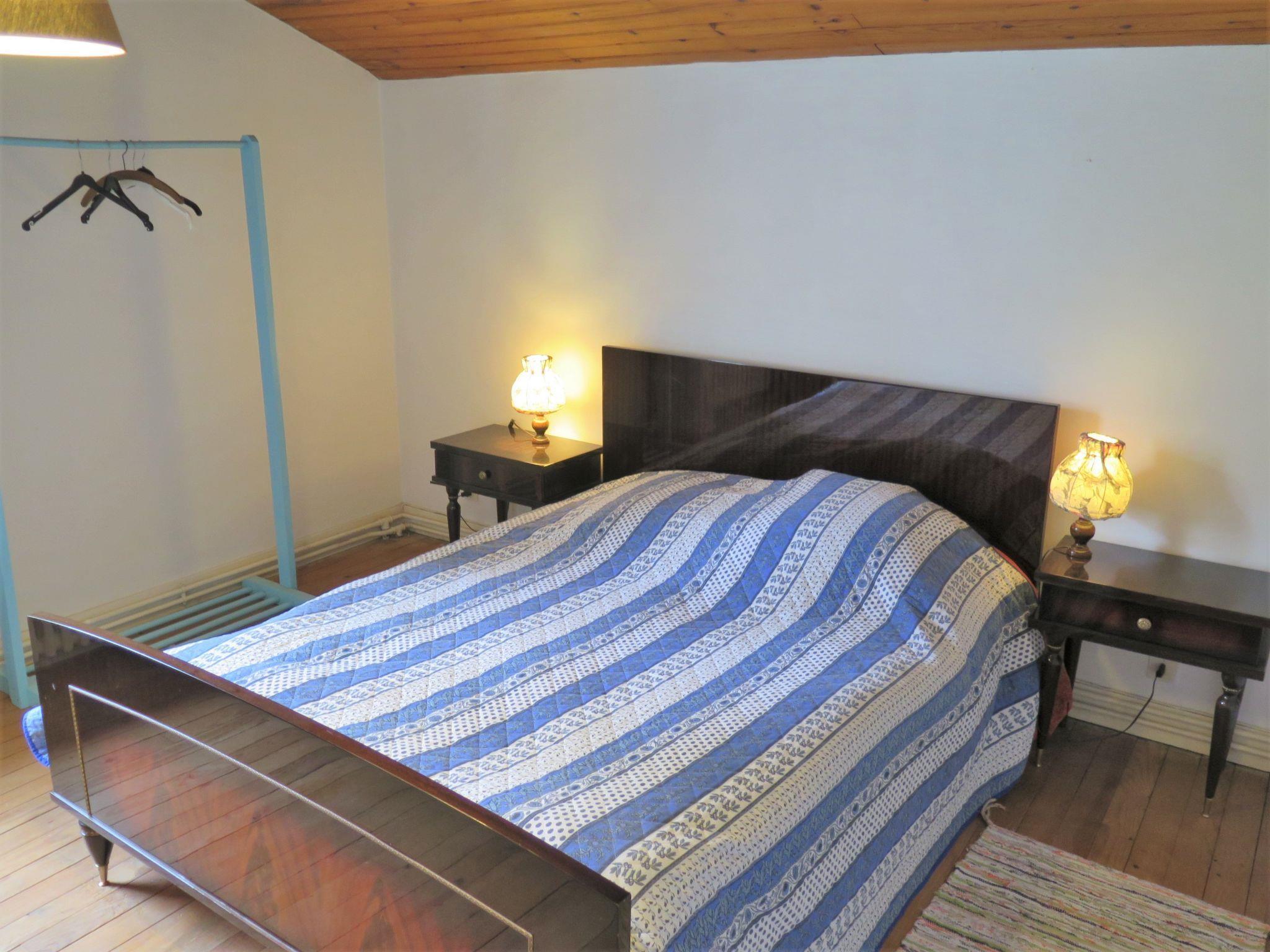 7-room house 300 m2 on 2 levels. Rustic and antique furnishings: large living/dining room with open-hearth fireplace and TV (flat screen), DVD. Exit to the garden. 1 room with 1 french bed (140 cm, length 190 cm), shower. 1 room with 1 french bed (160 cm, length 200 cm). Large kitchen (oven, dishwasher, 4 gas rings, toaster, kettle, microwave, freezer, electric coffee machine) with dining table, dining table. Exit to the garden. Bath/shower, sep. WC, double hand-basin. Upper floor: 3 rooms, each room with 1 french bed (140 cm, length 190 cm). 1 room with sloping ceilings, ceiling height 120 - 180 cm with 1 french bed (140 cm, length 190 cm). Shower/WC. Heating. Terrace furniture, barbecue, deck chairs. View of the valley and the garden. Facilities: washing machine, iron, children's high chair, baby cot for up to 2 year olds, hair dryer, logs (extra). Internet (WiFi, free). Please note: non-smoking house. Maximum 1 pet/ dog allowed. Smoke alarm.