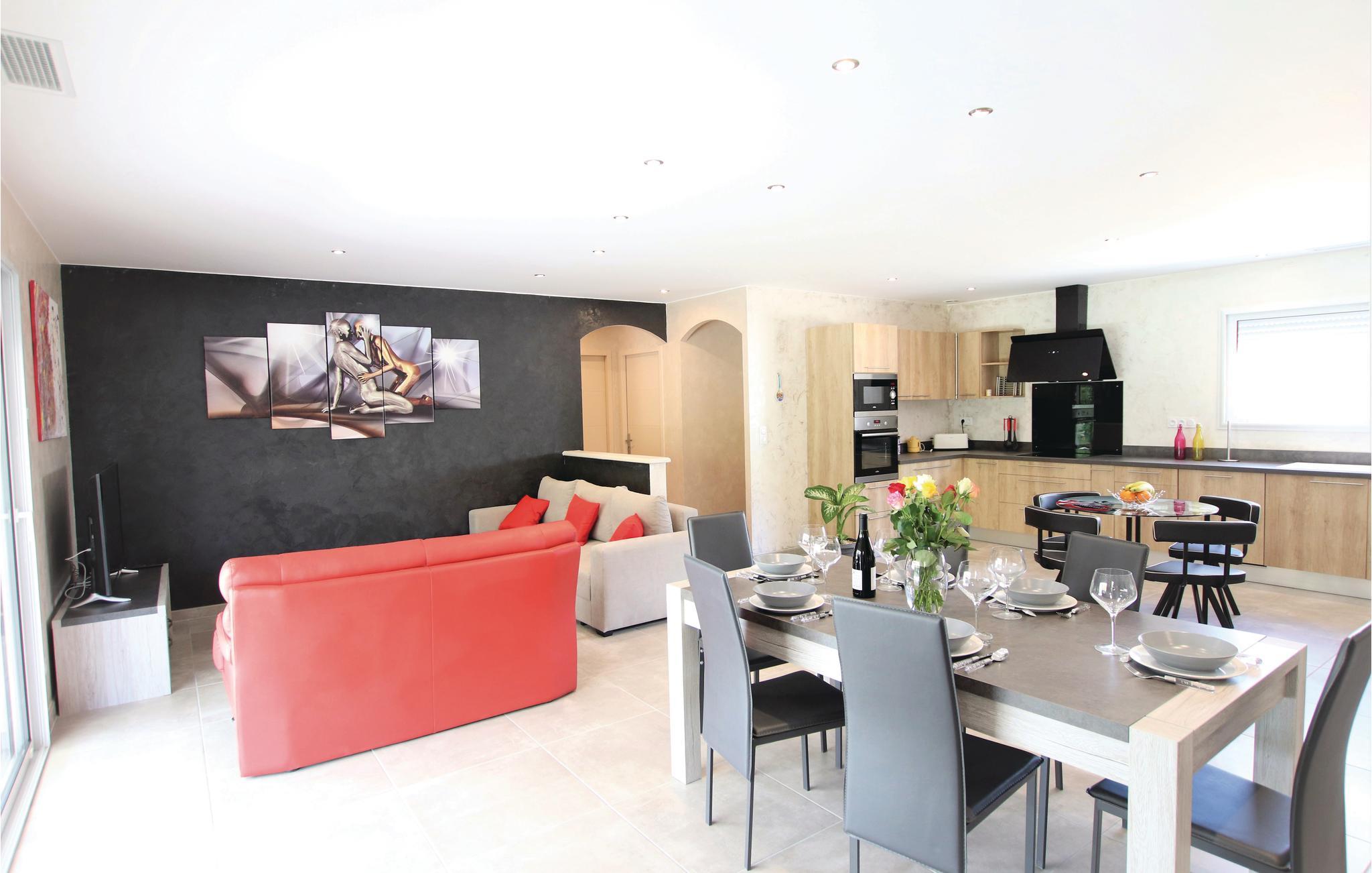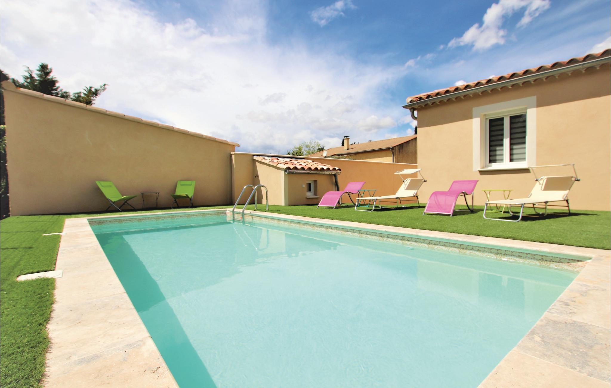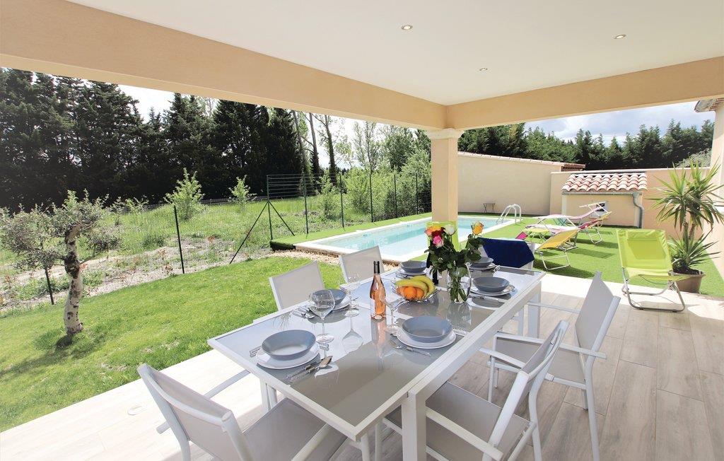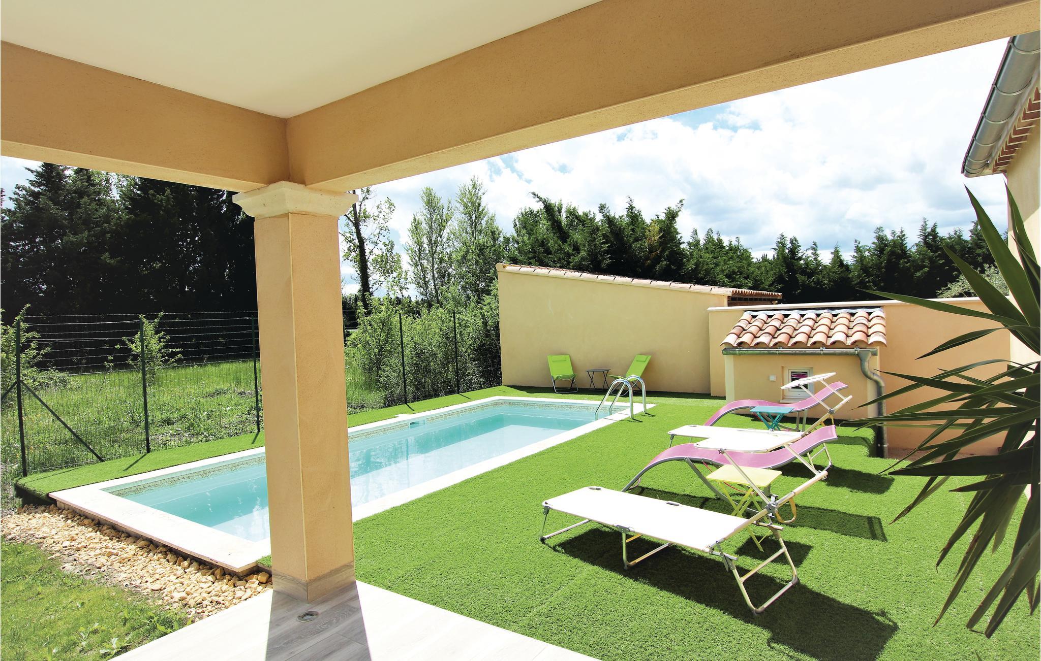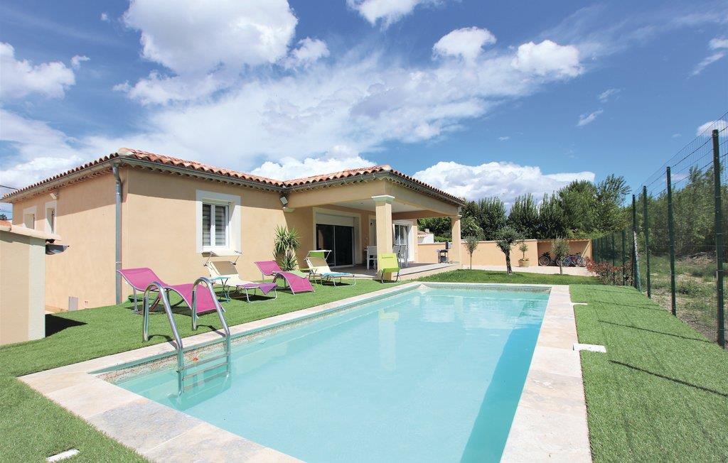 Dette feriehus i stueetagen med privat pool beskyttet mod udsyn ligger på en 600 m² lukket grund i Monteux, midt i Provence og i udkanten af Carpentras. Huset er i et landområde, men er stadig ikke langt fra nærmeste butikker. Køkkenet er meget moderne, og den rummelige og meget lyse stue åbner ud til en rummelig, delvist overdækket terrasse med komfortable havemøbler og en plancha eller grillplade og indrettet efter høje standarder, og der er tre meget komfortable soveværelser og to moderne badeværelser. Grunden ligger i et roligt område, så fester er ikke tilladt.