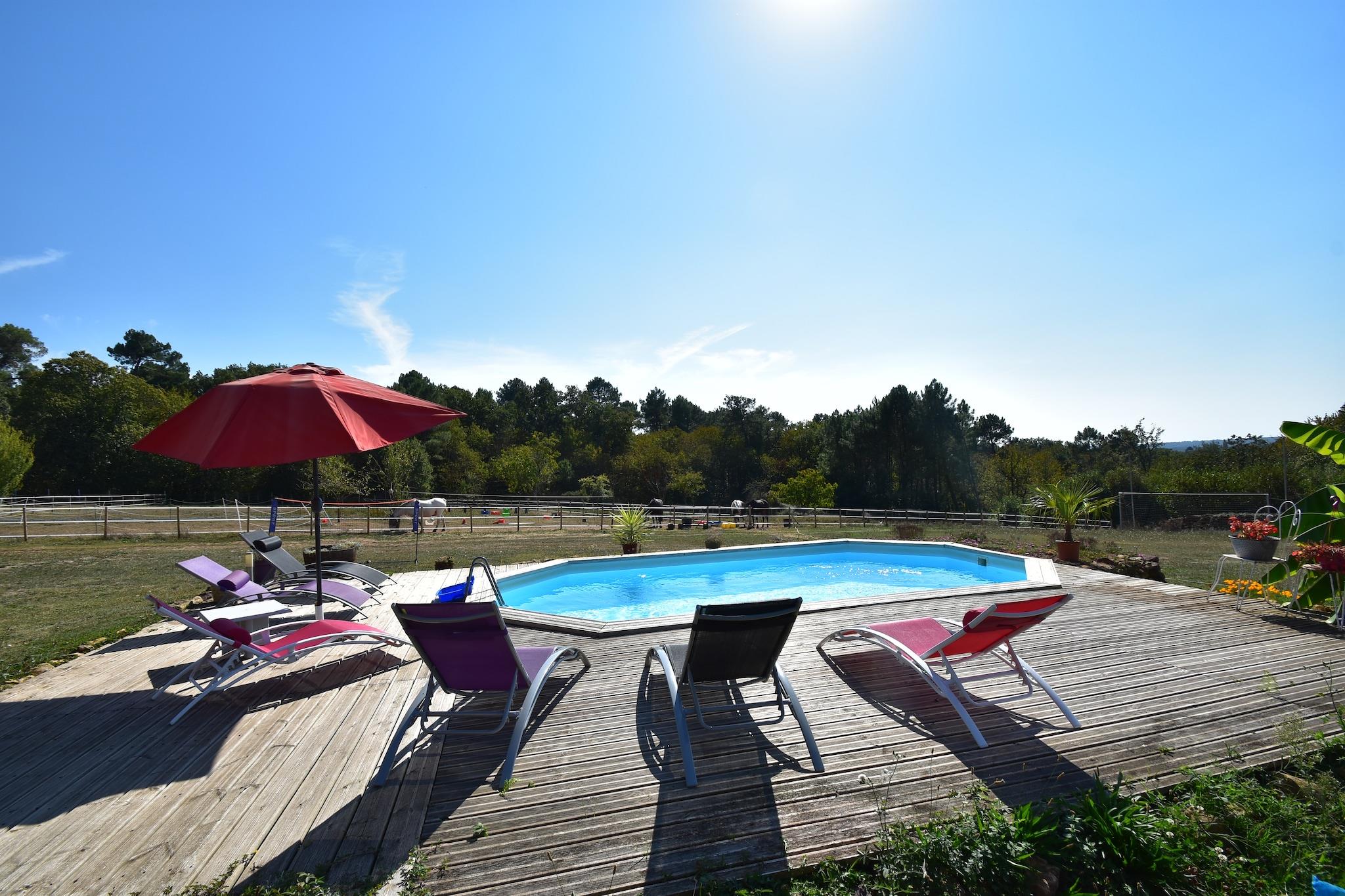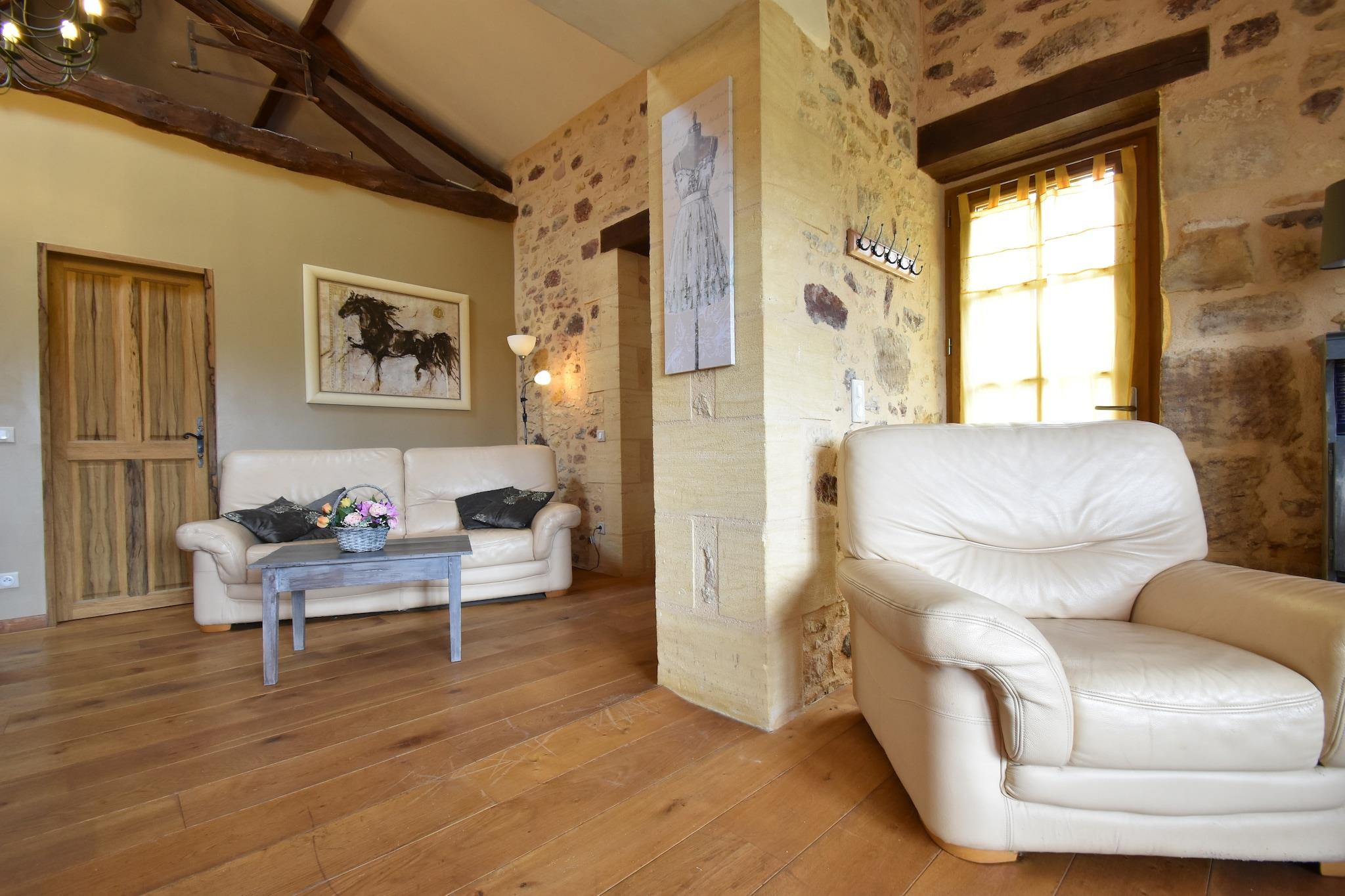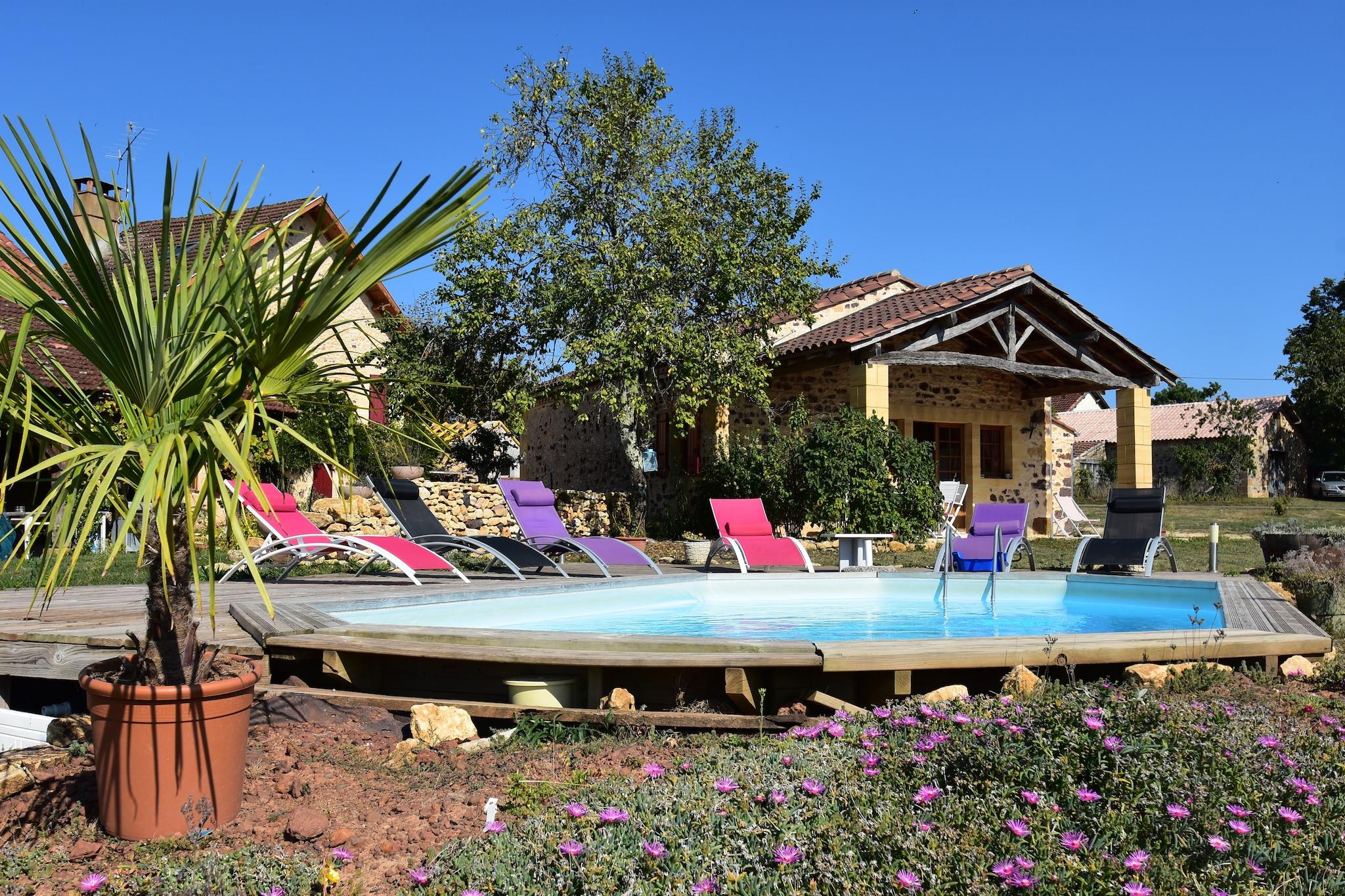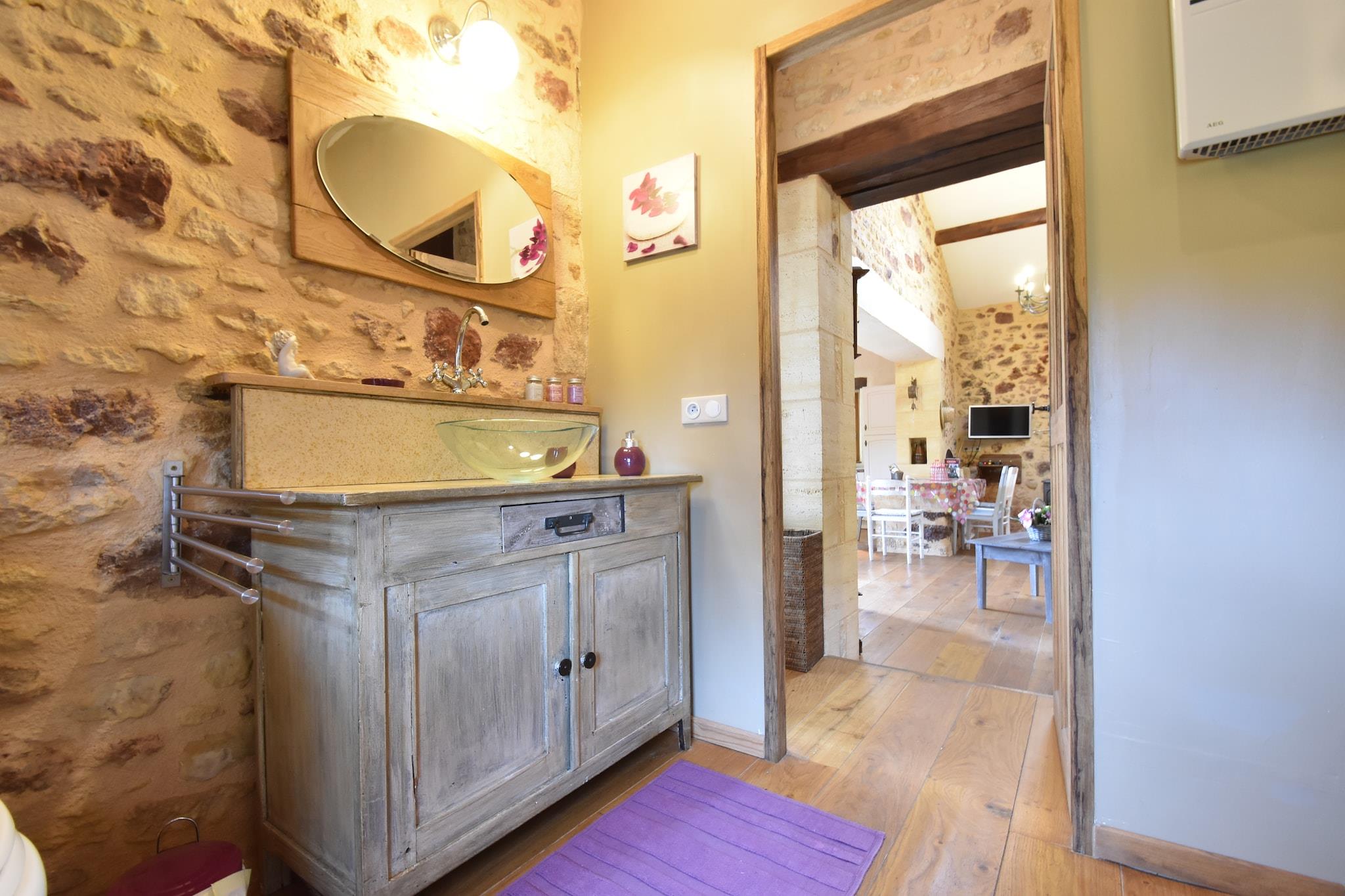 Beliggende i hjertet af Montferrand-du-Périgord, tilbyder dette overdådige feriehus med 3 soveværelser et fredeligt tilflugtssted for op til 6 gæster. Det er omgivet af uspoleret natur og maleriske landsbyer og har en privat swimmingpool, en møbleret have med grill og en hyggelig stue med brændeovn. Det åbne køkken er fuldt udstyret til hjemmelavede måltider, og ét kæledyr er velkomne mod et mindre gebyr. Bergerac Lufthavn ligger bekvemt kun 40 km væk. Friluftsentusiaster vil elske det nærliggende rideanlæg kun 200 m fra ejendommen, mens vandsport venter ved en naturskøn sø 8 km væk. Til spisning og daglige fornødenheder ligger bagerier og restauranter kun 5 km derfra, som tilbyder en smag af regionens rustikke charme. Uanset om du vandrer gennem Périgord-landskabet eller slapper af ved poolen, giver dette hjem den perfekte balance mellem eventyr og ro. Udforsk Dordognes kulturelle perler som Marqueyssac Gardens, Eyrignac Manor og Les Bambous de Planbuisson. Forkæl dig selv med lokale retter på Hôtel Lou Peyrol eller Le Jean Bistrot, og slap af med en drink på La Réserve eller Brasserie Le Troglo. Med sine idylliske omgivelser og tankevækkende faciliteter er dette feriehus en port til det bedste af det sydvestlige Frankrig.