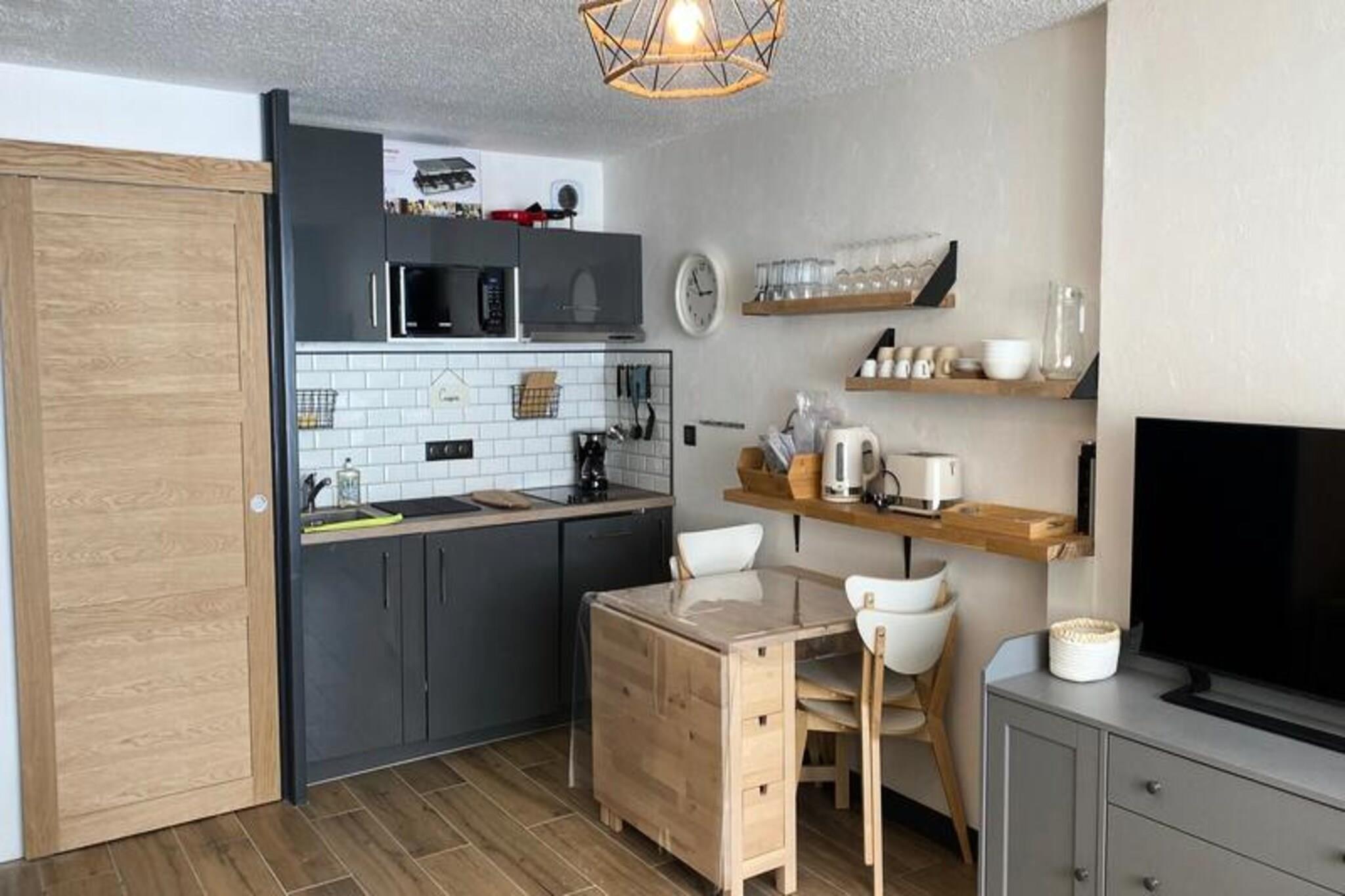 Denne moderne lejlighed tilbyder komfortabel indkvartering for op til 4 gæster med en 160 cm sovesofa i stuen og 2 enkeltkøjesenge i et separat bjerghjørne. Lejligheden er ikke-ryger og tillader ikke kæledyr, hvilket sikrer et fredeligt og rent miljø. Det har en sydøstvendt balkon med en naturskøn udsigt over pisterne, perfekt til at slappe af efter en dag med udendørs aktiviteter. Boligen tilbyder reserveret parkering og et skiskab for ekstra bekvemmelighed. Lejligheden ligger kun 50 meter fra Clot-skiliften og 80 meter fra Prarial-stoleliften og giver nem adgang til pisterne. Til afterski-aktiviteter finder du et udvalg af caféer, restauranter og butikker inden for gåafstand. Der ligger et supermarked blot 450 m derfra, mens Durancia Nuxe Aquatic Center and Spa, som ligger 200 m derfra, tilbyder afslapning og wellness-tjenester. Lejligheden har et fuldt udstyret køkken med keramiske kogeplader, køleskab, mikroovn og opvaskemaskine. Badeværelset er udstyret med stor bruseniche og elektrisk håndklædetørrer. Yderligere faciliteter inkluderer et skiskab, og valgfri udlejningstjenester er tilgængelige for Wi-Fi, sengetøj og andet udstyr.