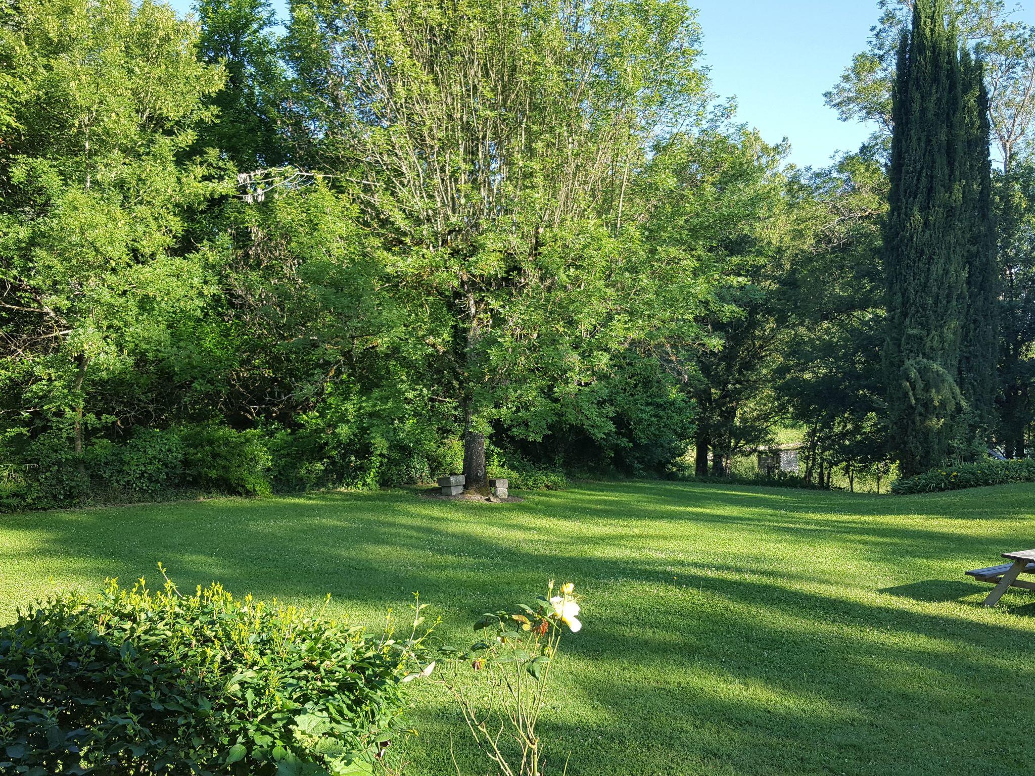The gîte is surrounded by a 2,000 m2 private garden planted with trees and equipped with wooden tables, deckchairs, parasols and a barbecue.