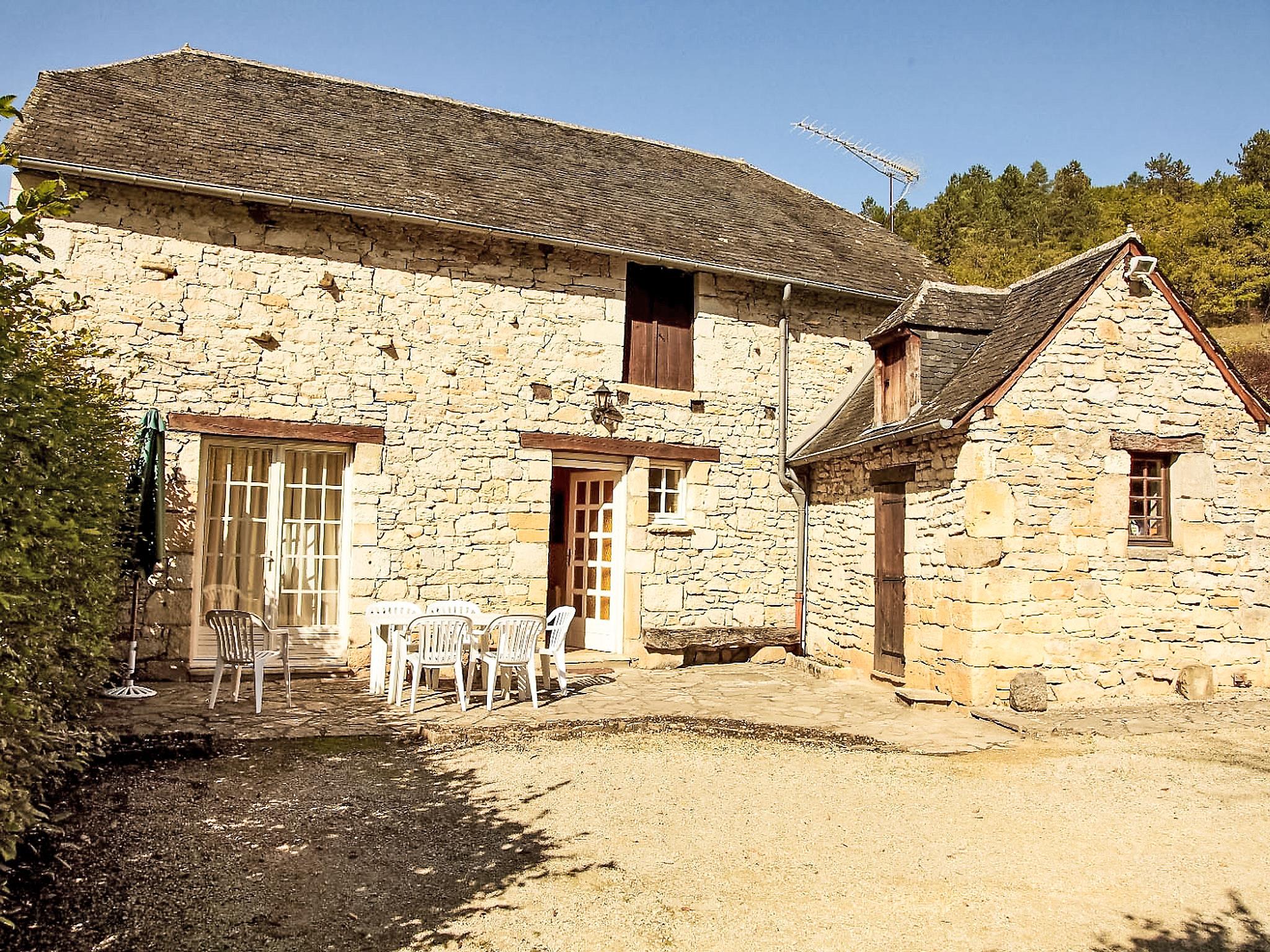 Coly 13 km from Montignac-Lascaux: Cosy, comfortable single-family house "La Colinoise", from the 19th century, renovated, surrounded by trees and fields. On the outskirts, 500 m from the centre of Coly, in a quiet position, 50 m from the river, in the countryside. Private: garden 2'000 m2 (fenced) with lawn 500 m2 trees, swimming pool fenced (10 x 5 m, depth 120 - 120 cm, seasonal availability: 28.May. - 30.Sep.) with internal staircase. Parking on the premises. Shop, grocery 500 m, supermarket 12 km, restaurant, bar, café 500 m, bus stop "Condat-dur-Vézère" 6 km. Golf course (18 hole) 25 km, tennis 4 km, riding stable 10 km. Please note: car recommended.