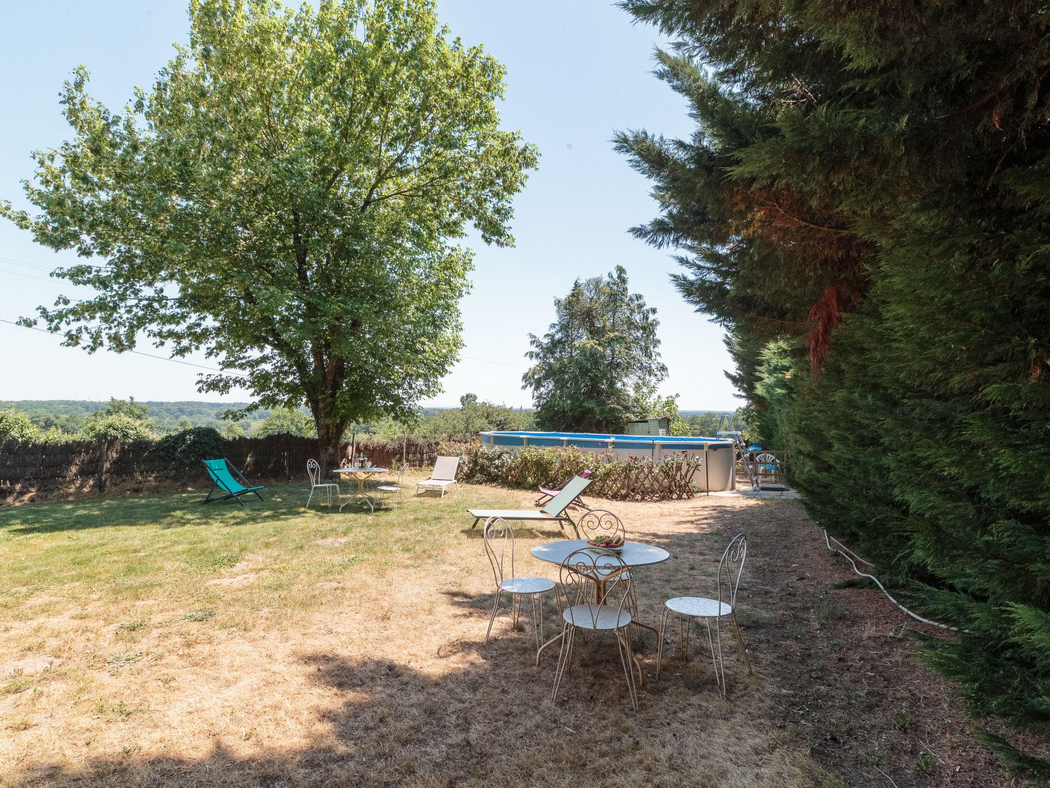 Bourg-Archambault 10 km from Montmorillon: Large house "Le Jardin de Timothee", surrounded by trees and meadows. On the outskirts, 2 km from the centre of Bourg-Archambault, in a quiet position, in the countryside. Private: large garden 400 m2 (fenced) with lawn and trees, swimming pool (above ground) (7 x 3 m, depth 120 cm, seasonal availability: 15.Jun. - 30.Sep.) with internal staircase. Table tennis, parking on the premises. Shop 10 km, supermarket 10 km, restaurant 10 km, bus stop 10 km. Tennis 7 km, riding stable 7 km. Nearby attractions: Futuroscope 50 km, le Château des Aigles de Chauvigny, Parc de Belle vue, centre nautique à Lathus, Vivarium de Trimouille, Abbaye Romane. Hiking paths: Montmorillon et autres. Please note: car recommended. Animals in the neighbourhood.