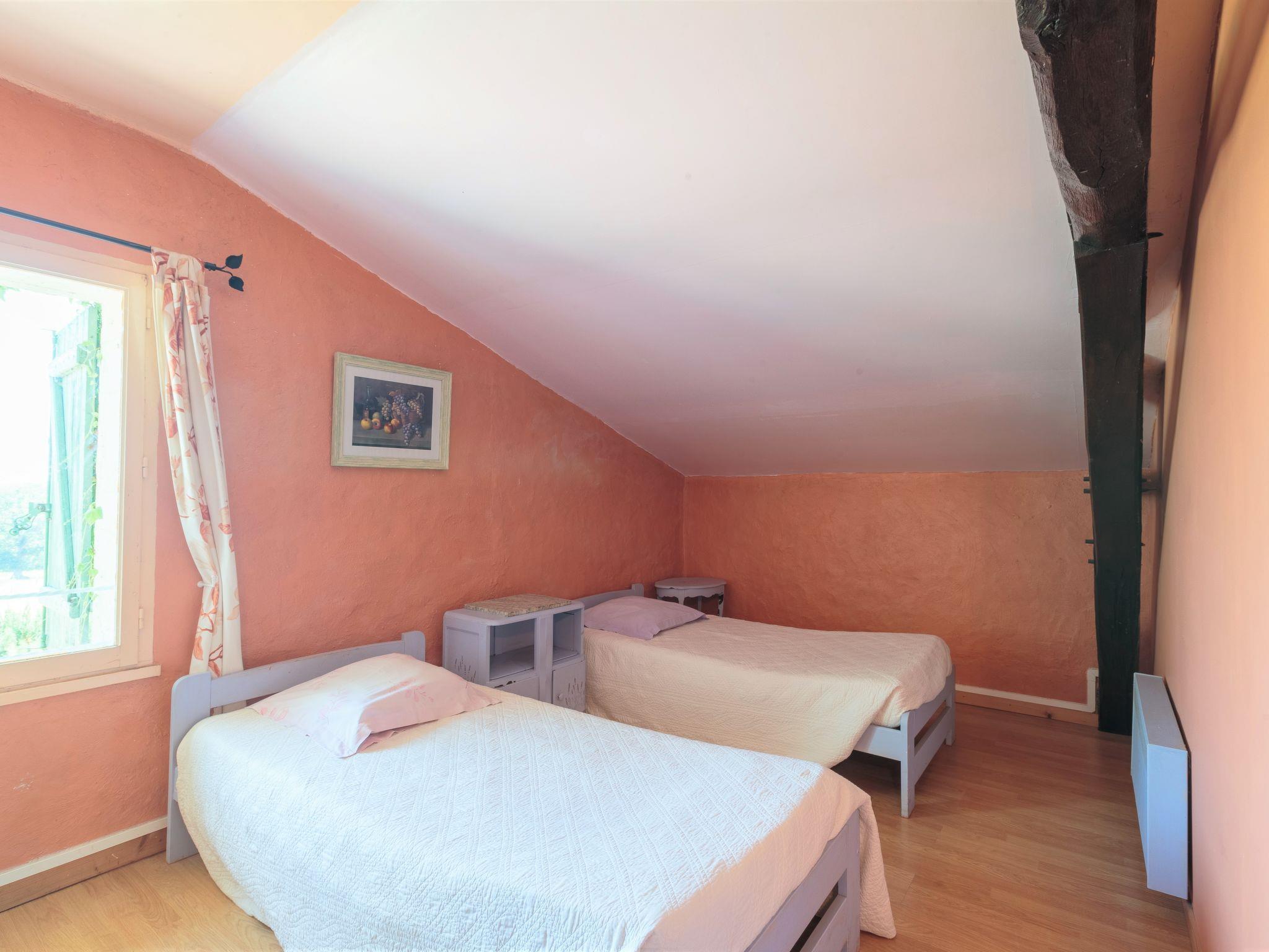 5-room house 160 m2 on 3 levels, on the upper ground floor. Rustic and cosy furnishings: living/dining room with open-hearth fireplace and TV (flat screen), hi-fi system and DVD. Open kitchen (oven, dishwasher, 4 gas rings, toaster, kettle, microwave, freezer, electric coffee machine) with dining nook. Exit to the garden. Shower/WC. Upper floor: 1 large room with 1 french bed (140 cm, length 190 cm). 1 large room with 1 double bed (160 cm, length 200 cm). 2nd upper floor: 1 large room with sloping ceilings with 3 beds (90 cm, length 190 cm). 1 room with 2 beds (90 cm, length 190 cm). Shower/WC. Heating. Terrace furniture, barbecue, deck chairs (2). Beautiful view of the valley and the countryside. Facilities: washing machine, iron, children's high chair, baby cot, hair dryer. Internet (WiFi, free). Please note: suitable for families. 1 small pet/ dog allowed. Smoke alarm. Access to the 2 bedrooms of the 1st floor via a steep staircase, 3 steps to enter .