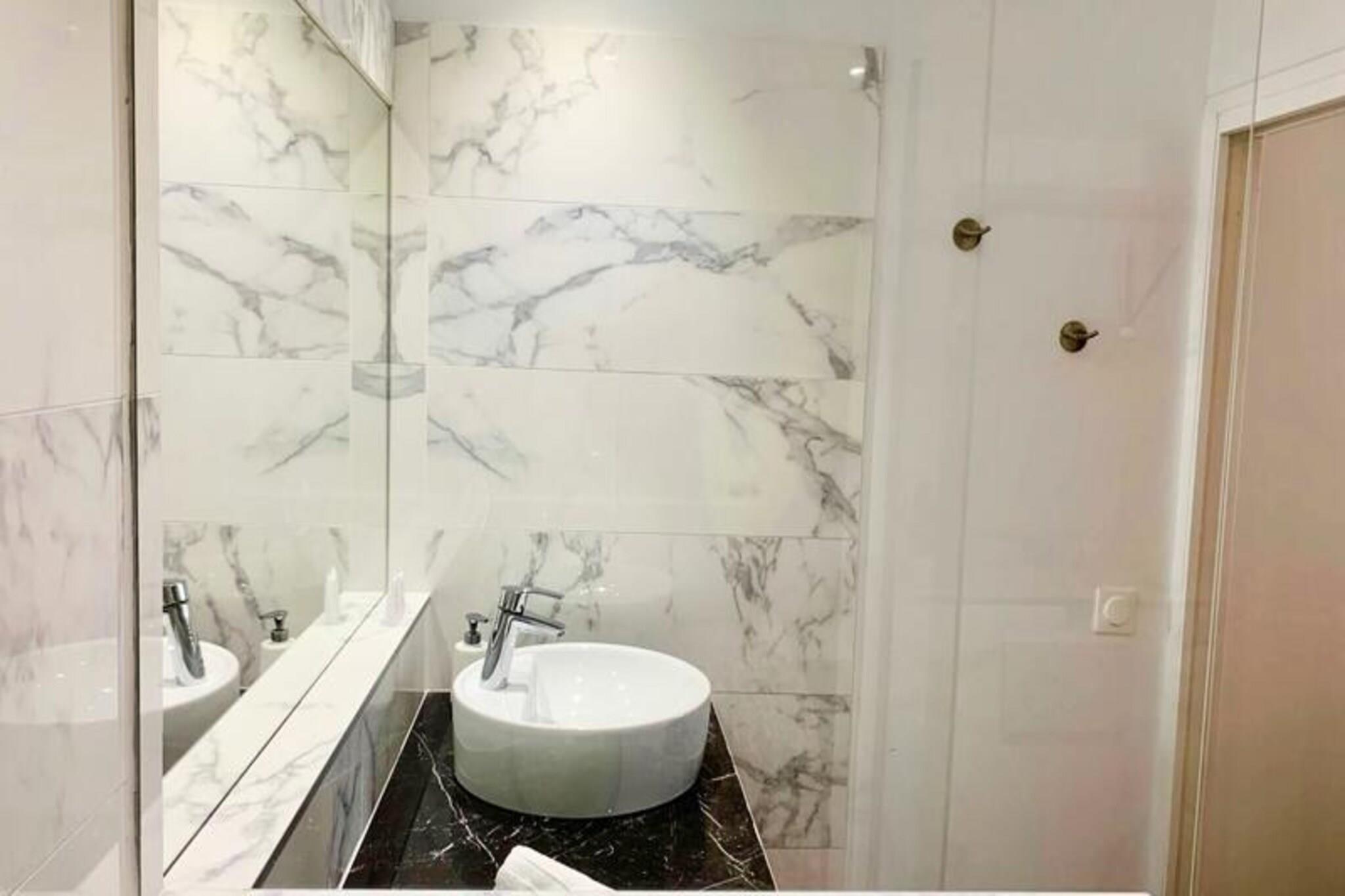 Denne hyggelige lejlighed er ideelt beliggende i hjertet af Montpellier, og tilbyder en perfekt blanding af komfort og bekvemmelighed. Det har et rummeligt soveværelse med en avanceret queen-size dobbeltseng (160 x 200 cm), hvilket sikrer en god nattesøvn. Lejligheden er kæledyrsvenlig, så dine lodne ledsagere er velkomne. Med moderne bekvemmeligheder såsom ultra-højhastigheds-Wi-Fi, et stort HD-tv med over 200 kanaler og en hårtørrer giver denne lejlighed alt det nødvendige for et afslappende ophold. Kun få skridt væk, vil du finde dig selv nedsænket i Montpelliers pulserende atmosfære. Det berømte Place de la Comédie ligger kun 4 minutter til fods, mens det historiske, kun fodgængerområde L'Ecusson og det livlige Halles Laissac-marked er kun 2 minutter væk. Du vil også være i gåafstand fra Montpellier Saint-Roch station og flere sporvognslinjer, hvilket gør det nemt at udforske byens restauranter, barer, kunstgallerier, museer og nærliggende strande såsom Palavas-les-Flots og La Grande Motte. Lejligheden har et fuldt udstyret køkken, komplet med en opvaskemaskine, vaskemaskine-tørretumbler, ovn, mikroovn, Nespresso-kaffemaskine og mere, perfekt til at tilberede måltider af lokale råvarer fundet på markedet nedenfor. Yderligere faciliteter omfatter et strygesæt, en værdiboks og alle nødvendige toiletartikler. Uanset om du besøger for forretning eller fritid, tilbyder denne lejlighed et fredeligt tilflugtssted med alt, hvad du behøver for at føle dig hjemme.