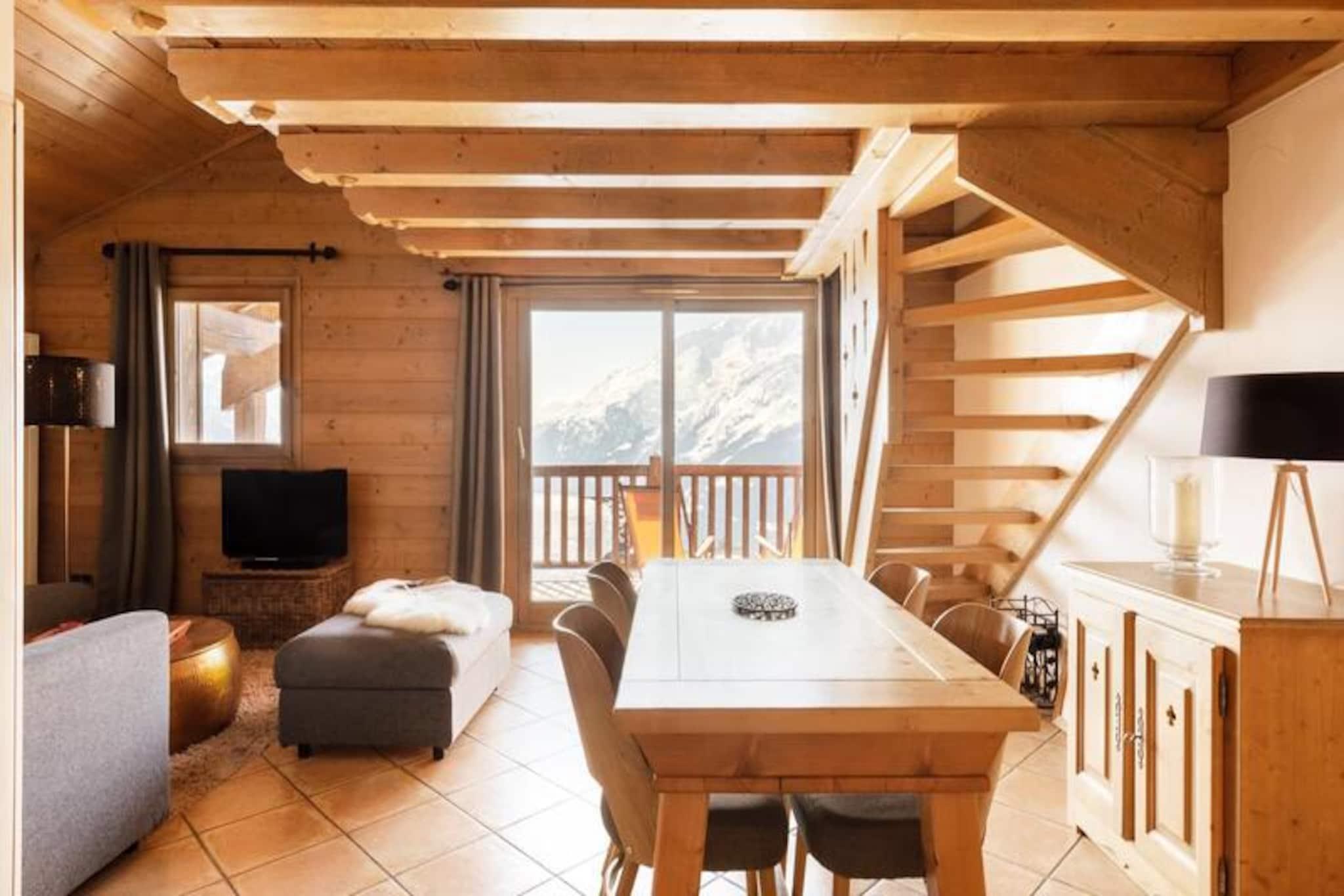 This modern duplex apartment offers three high-end rooms designed for four people, with 70m² of space (58m² under Carrez law). Located on the 3rd floor, this apartment provides a comfortable living space with a bedroom featuring a double bed. The living area is well-equipped with a kitchen offering a ceramic hob, refrigerator, dishwasher, and a combined microwave oven. A south-facing balcony provides breathtaking views of the Haute Tarentaise valley, while an underground parking space is included for convenience. Please note that the property is not pet-friendly, ensuring a serene and allergy-friendly environment for all guests. Ideal for ski enthusiasts, the apartment offers direct access to the slopes just meters away and provides a return-on-skis option, making it a perfect winter getaway. In addition, the area is close to various local attractions, cafes, and markets, allowing guests to experience the charm of the surrounding region. Whether you’re enjoying a warm drink at a local cafe, shopping for fresh produce at nearby markets, or exploring the beauty of the Haute Tarentaise valley, everything is within easy reach from this ideal location. The apartment is designed for comfort and convenience, with a modern kitchen and a bathroom with a separate WC. Upstairs, there is an additional bedroom with two single beds and an adjoining shower room. Linen is included, and beds are made upon arrival. The apartment also provides heating for added comfort, along with end-of-stay cleaning included in the booking. Guests can enjoy a hassle-free stay with all essential services taken care of, ensuring a relaxing and memorable vacation.