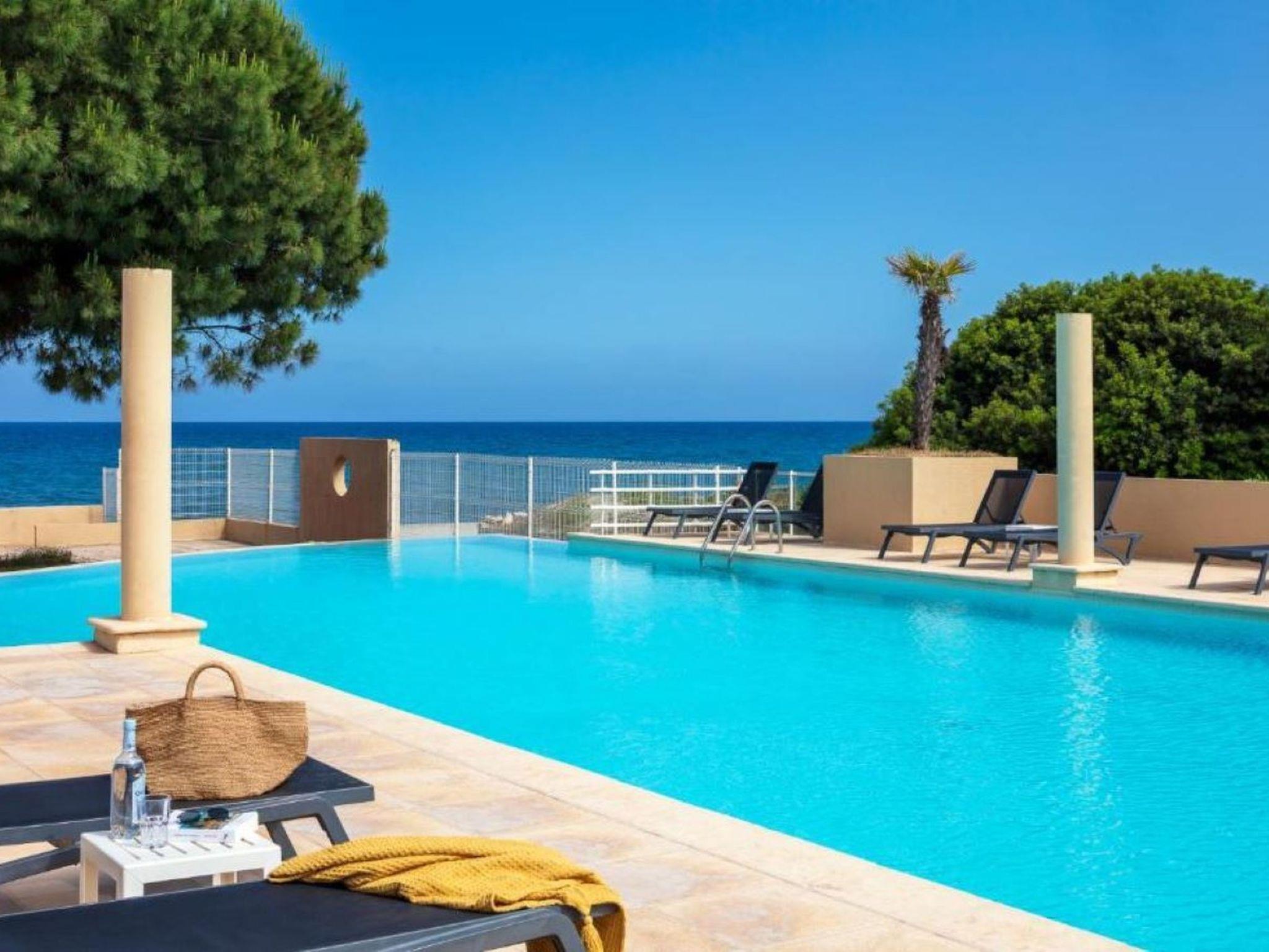 Beautiful resort "Marina Bianca", 4 storeys. 57 apartments in the residence. 900 m from the centre of Moriani-Plage, 10 km from the centre of Folelli, 40 km from the centre of Bastia, in a sunny position, 150 m from the sea. For shared use: property with plants and trees, meadow, swimming pool fenced (21 x 7 m, seasonal availability: 31.May. - 15.Sep.). Children's pool. In the complex: reception, internet access, fitness room, table tennis. Parking on the premises. Supermarket 900 m, bus stop 1.2 km, sandy beach "Moriani-Plage" 150 m. Please note: car recommended. Main road 80 m from the property. The photograph shows a typical example. Wifi only at the reception.