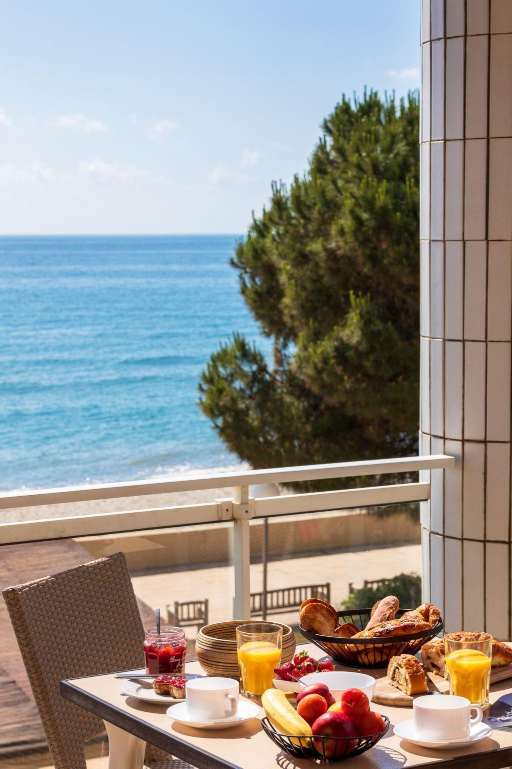 "MB4 vue mer", 2-room apartment 30 m2. Bright, renovated in 2017, practical furnishings: living/sleeping room with 1 double sofabed, dining table and satellite TV. 1 room with 2 beds. Kitchenette (2 ceramic glass hob hotplates, microwave, freezer, electric coffee machine). Shower/WC. Electric heating, air-conditioning. View of the sea. Please note: suitable for families. Non-smokers only. Maximum 1 pet/ dog allowed. Smoke alarm. Offer by a commercial proprietor according to Art. 155, IV, CGI