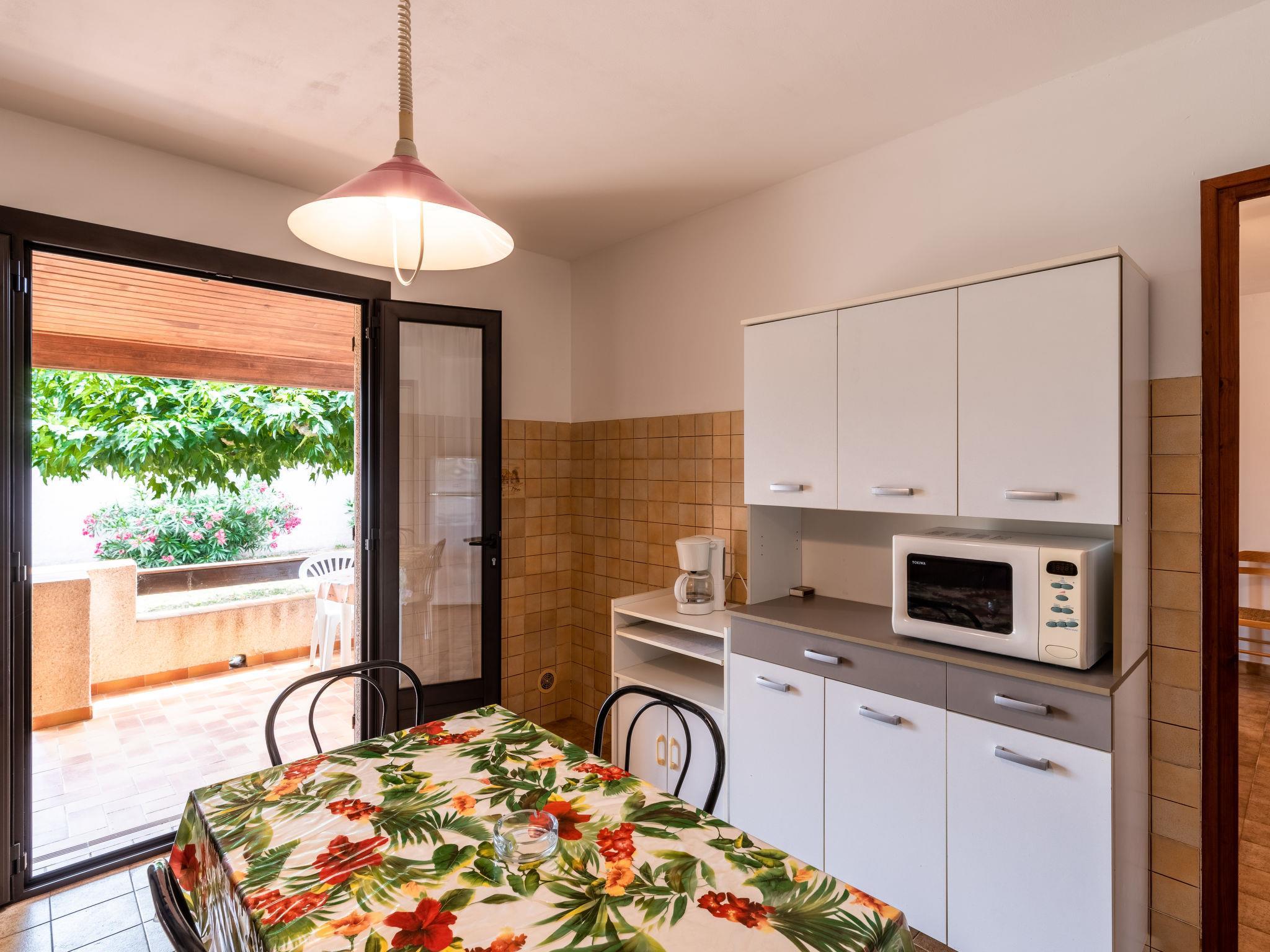"Dami II", 3-room apartment 60 m2, on the ground floor. Simple furnishings: 1 room with 1 french bed. Exit to the terrace. 1 room with 1 french bed. Kitchen-/living room (oven, 4 gas rings, microwave, freezer, electric coffee machine) with dining table, TV. Exit to the terrace. Shower, sep. WC. Electric heating. Terrace roofed. Terrace furniture. Facilities: washing machine. Internet (WiFi, free). Please note: non-smokers only. Maximum 1 pet/ dog allowed. Private entrance, smoke alarm.