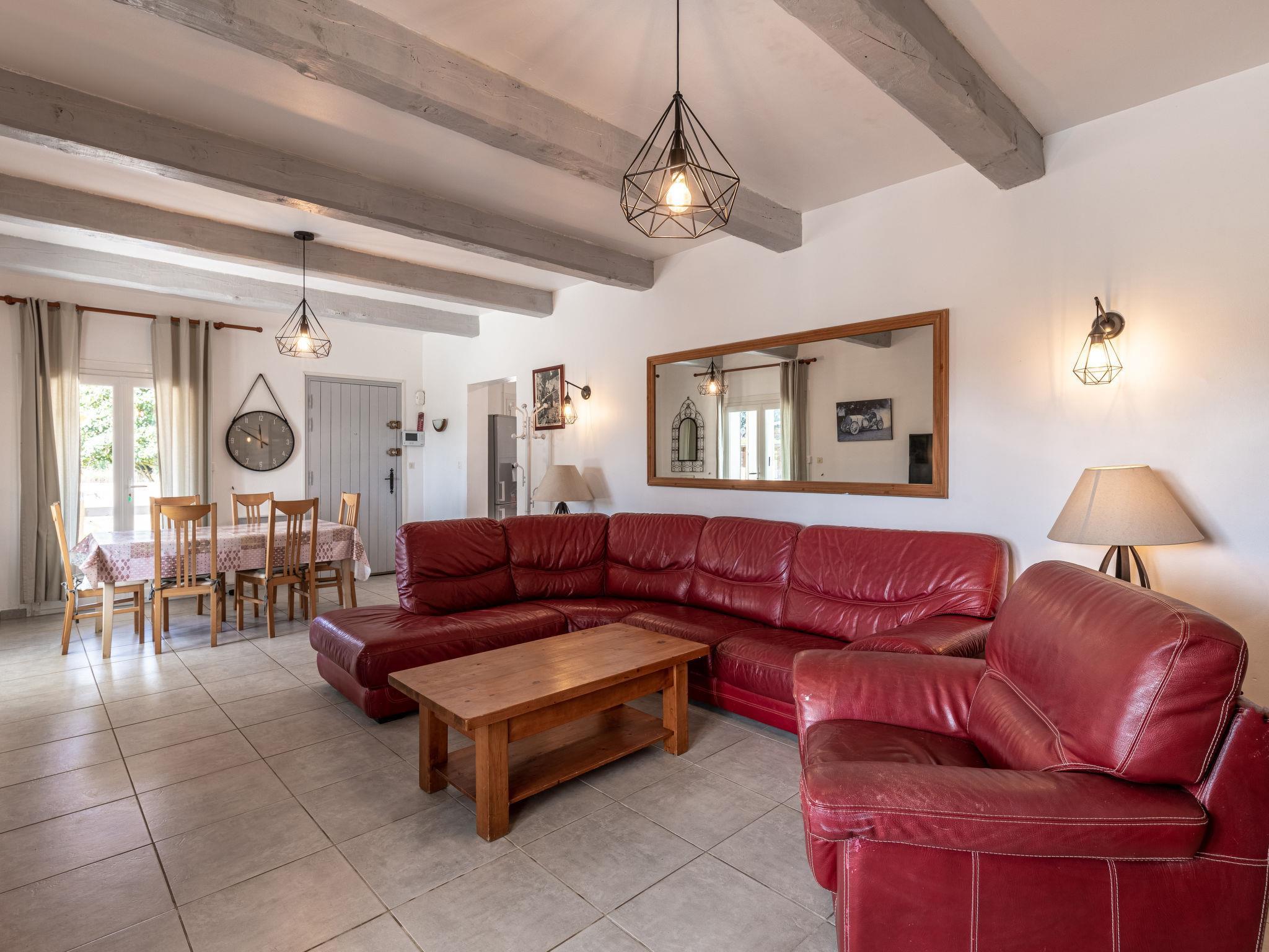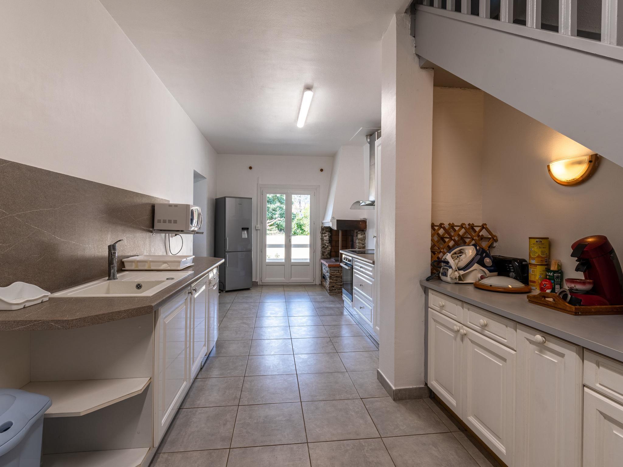 "La Cerisaie", 5-room house 150 m2 on 2 levels. Beautiful and cosy furnishings: living/sleeping room with 1 pull-out bed, open-hearth fireplace, dining table, satellite TV and DVD. Exit to the veranda, to the swimming pool. Kitchen (1 hot plate, oven, dishwasher, 3 gas rings, toaster, kettle, microwave, freezer, electric coffee machine) with small dining table, open-hearth fireplace (only for decoration). Exit to the terrace. Shower/WC. Upper floor: lounge with satellite TV and DVD. 1 room with 1 bed and 1 french bed. 1 room with 1 french bed. 1 room with 1 x 2 bunk beds. Shower/WC. Electric heating. Large terrace partly roofed, small terrace, patio. Terrace furniture, barbecue, deck chairs (4), box-room. View of the mountains and the countryside. Facilities: washing machine, safe, baby cot for up to 2 year olds. Please note: non-smoking house. Maximum 2 pets/ dogs allowed.
