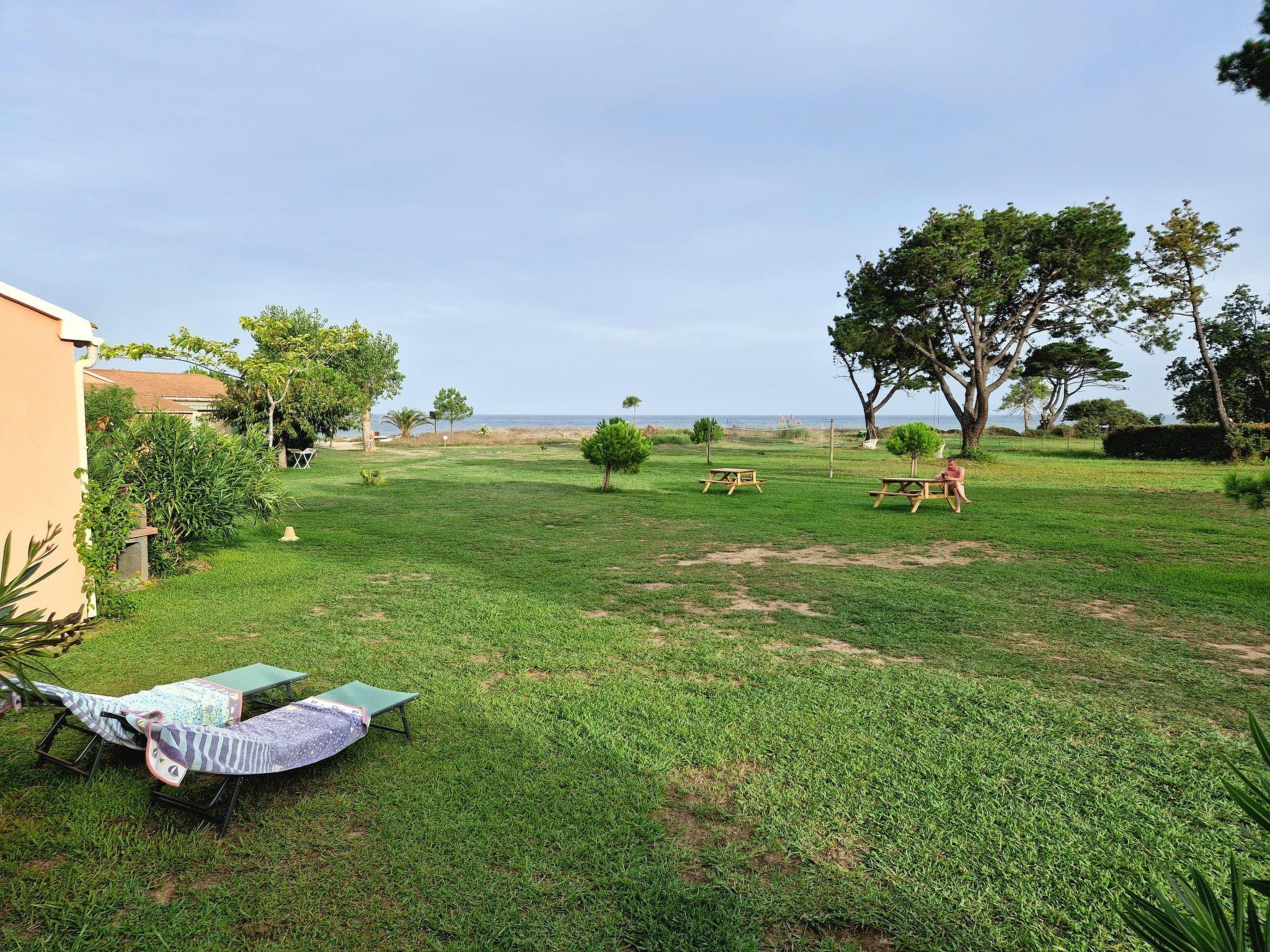 4 km from Moriani-Plage: Residence "Pinea Mare". 43 houses in the residence. In a quiet, sunny position, 200 m from the sea, 200 m from the beach, direct access to the beach. For shared use: property 3 ha (fenced), beautiful garden to relax. Outdoor shower, tennis (extra), table tennis, volleyball, children's playground. In the house: reception, WiFi, laundry (extra). Bread roll service. Parking at the house. Shop 3.8 km, grocery 2.9 km, supermarket 3.8 km, restaurant 2 km, bar 3.8 km, bakery 2.9 km, café 3.8 km, bus stop 3.8 km, sandy beach 200 m. Sports harbour 8 km, marina 8 km. Nearby attractions: Parc Galea 3.7 km, castagniccia, Casinca. Please note: car recommended. The photograph shows a typical example. The holiday properties may differ in living space, floorplan, equipment and furnishing.