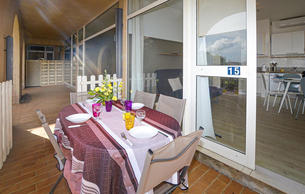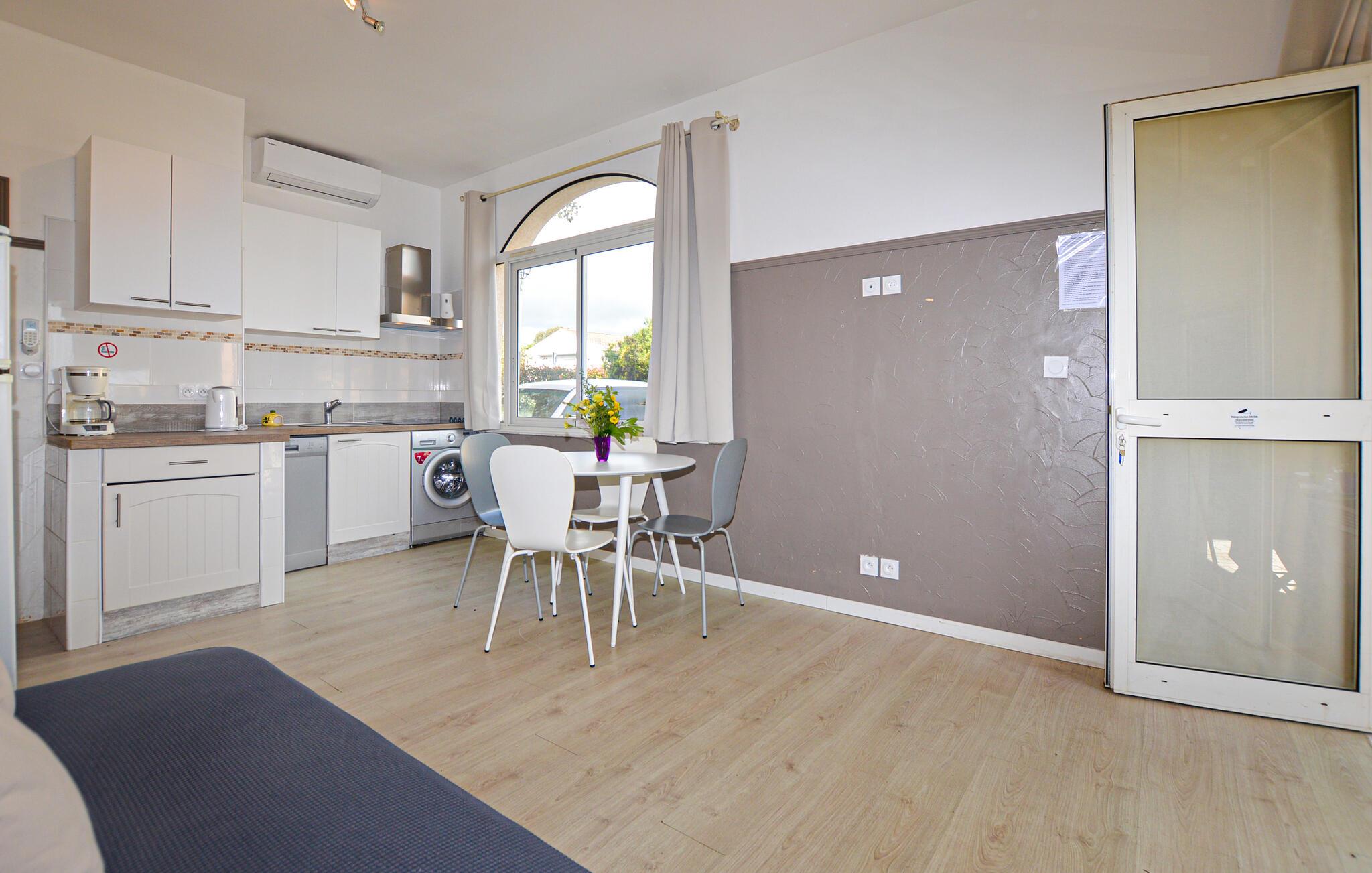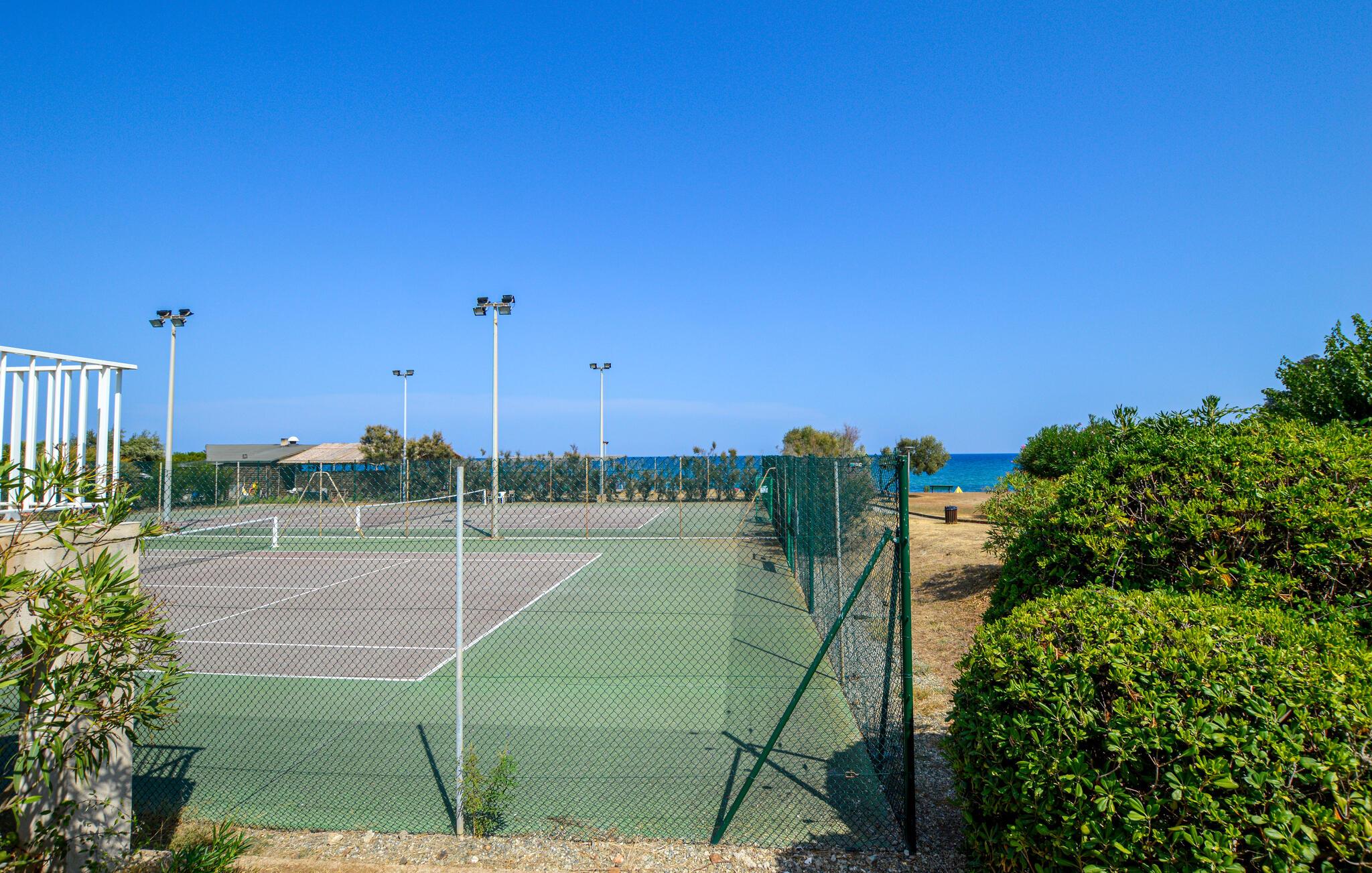 Denne lyse ferielejlighed byder jer velkommen i en bolig med pool og tennisbane, kun en kort gåtur fra stranden. Tilbered friske salater i det åbne køkken, og lad den behagelige brise strømme gennem værelserne, mens I planlægger jeres aktiviteter ved spisebordet eller tager en afslappende siesta på sofaen.