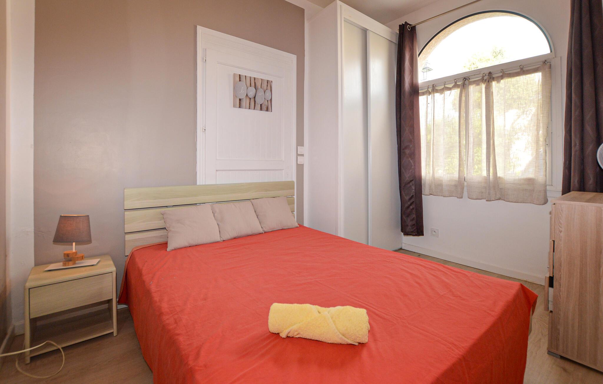 Nyd en solrig strandferie i denne charmerende ferielejlighed med adgang til pool.