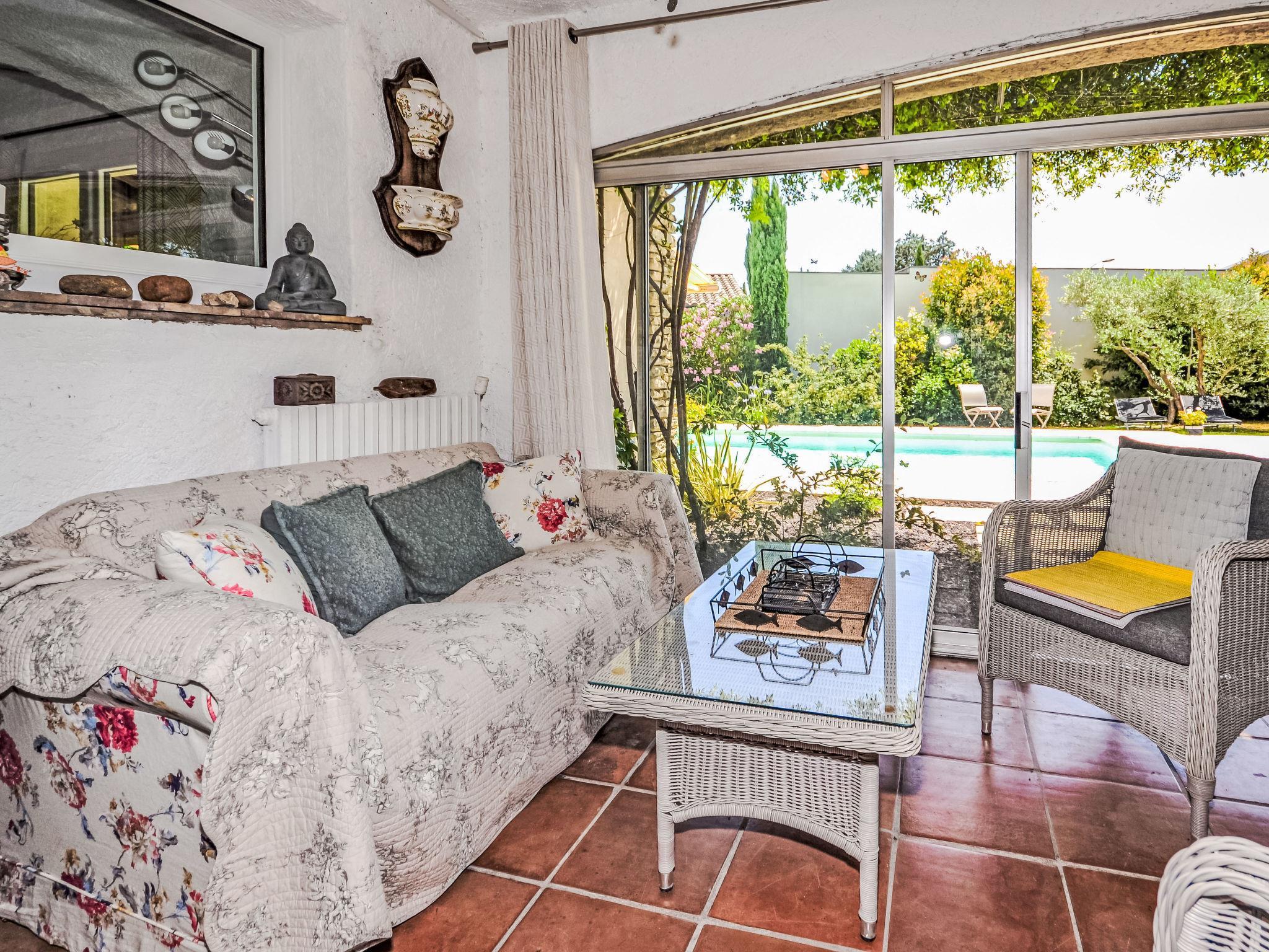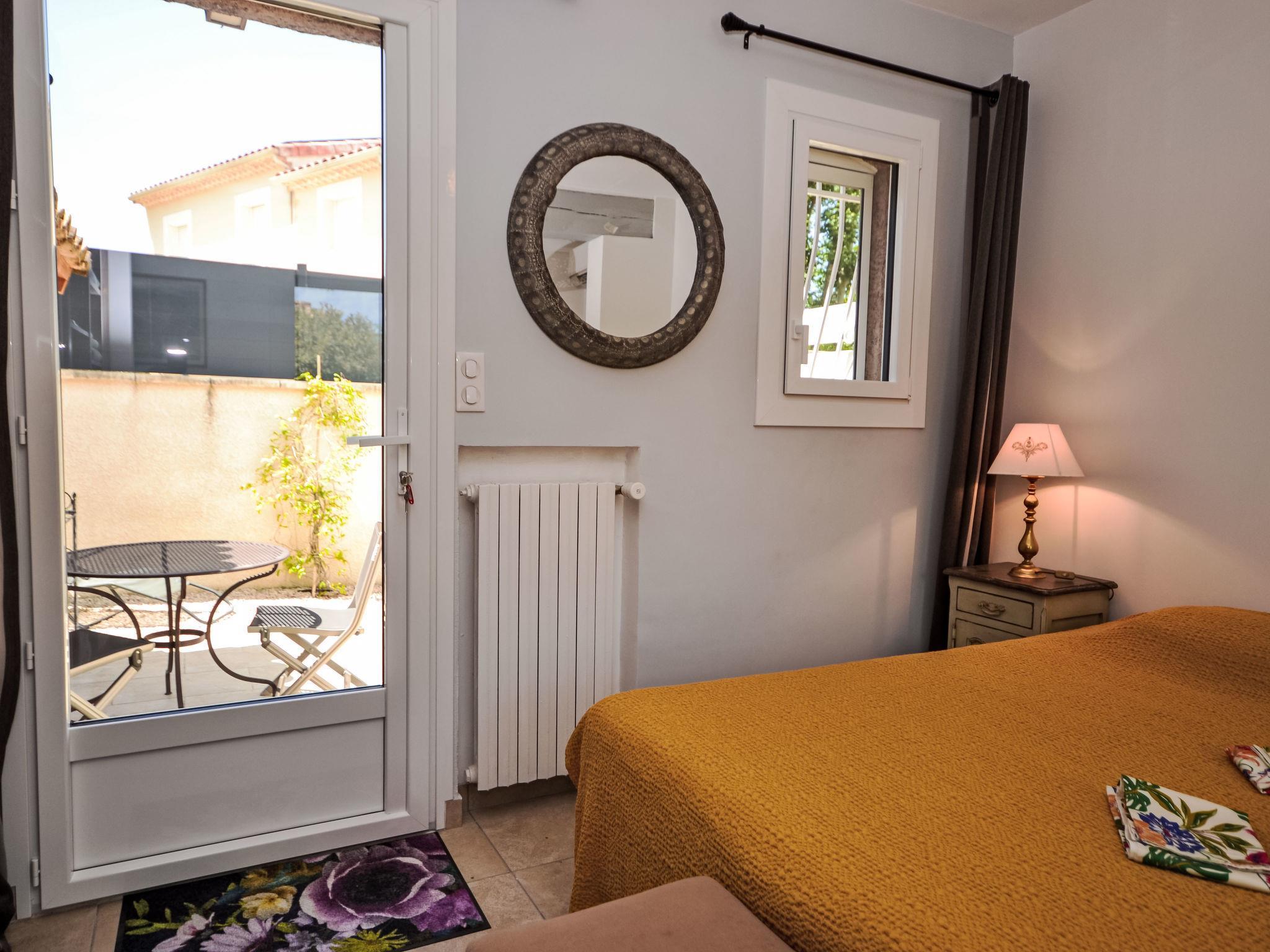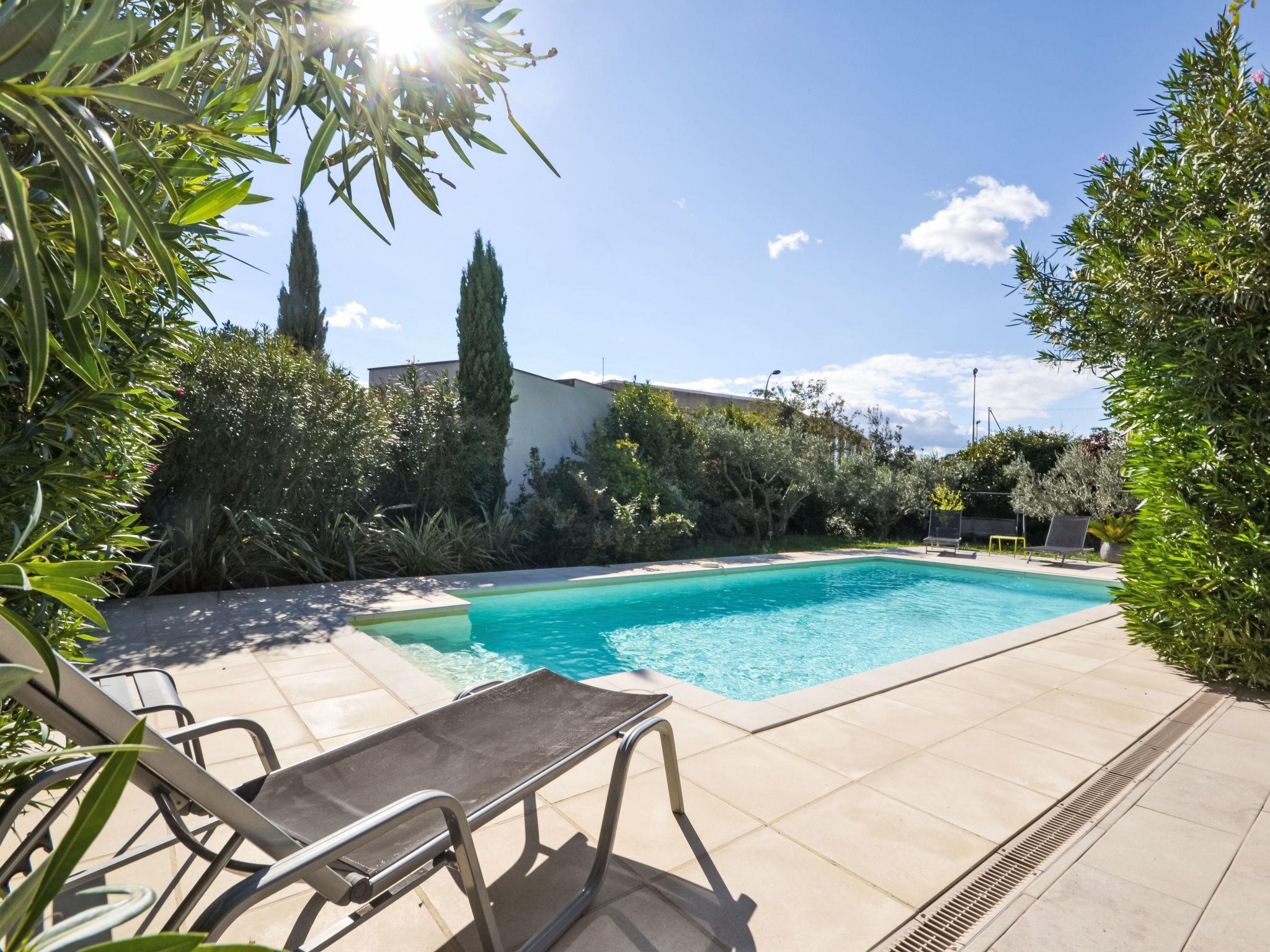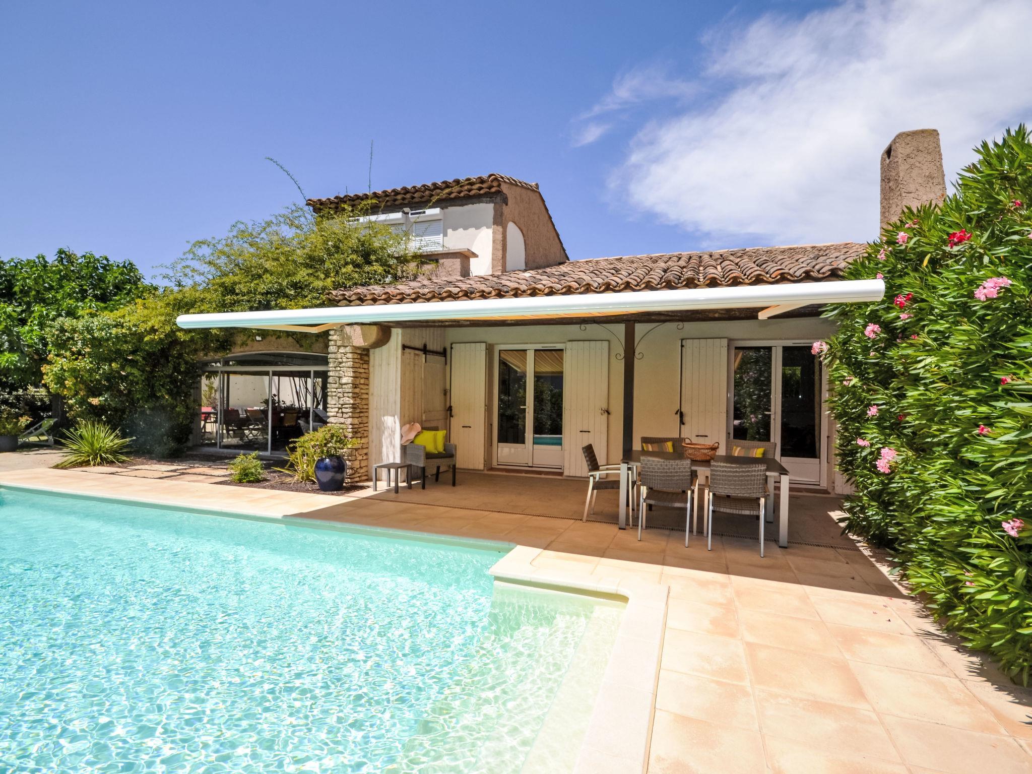 Beautiful villa "Les Angevines", renovated in 2025. In the resort 800 m from the centre of de Morières-les-Avignon, in a quiet position residential area (villas). Private: well-kept garden 1'170 m2 (fenced) with lawn and trees, swimming pool (4 x 8 m, depth 120 - 160 cm, seasonal availability: 12.Apr. - 25.Oct.) with internal staircase and alarm system. Terrace, garden furniture, barbecue, barbecue house, pool maintenance by the owner/gardener. Parking (for 3 cars) on the premises. Shop, grocery 800 m, supermarket 3.1 km, restaurant, bakery 500 m, bicycle rental 3.9 km, 5 minute walk to the centre, bus stop "Salvador" 700 m, railway station "Avignon TGV" 15 km, sandy beach 102 km. Golf course (18 hole) 400 m, tennis 50 m, riding stable 5.4 km, sports centre 50 m, children's playground 3.9 km. Nearby attractions: Avignon 10 km, L'Isle-sur-la-Sorgue 17 km, Gordes 33 km, Saint Rémy de Provence 23 km, Châteaurenard 14 km, Aéroport d'Avignon 5 km. Hiking paths: Parc Régional des Alpilles 30 km, Parc Régional du Luberon 21 km, Mont Ventoux 31 km. Please note: not suitable for small children. Not suitable for children under 6 years. The owner does not accept any youth groups. Residence with electric gates. Available: veranda, 30 m², with dining table.