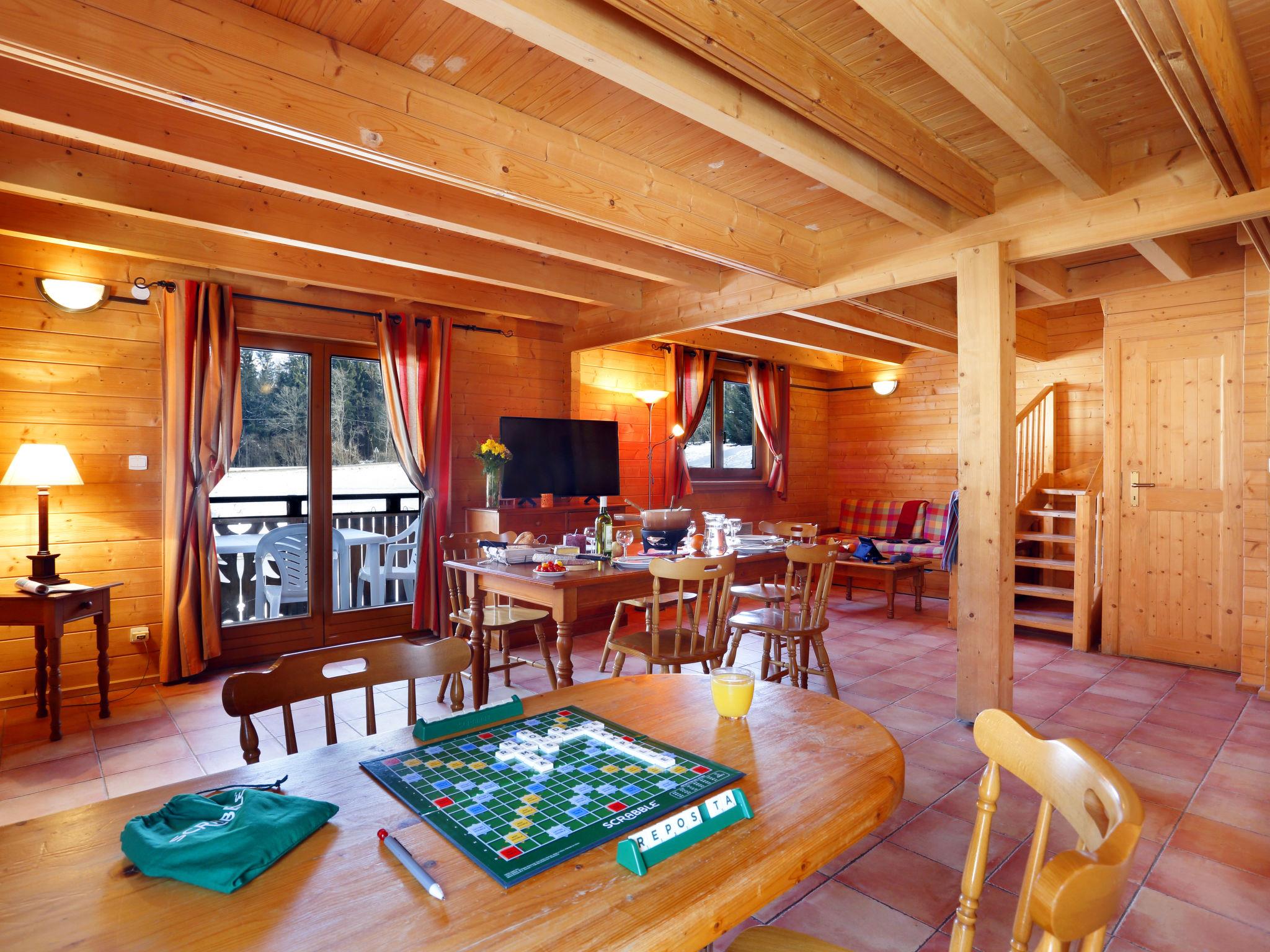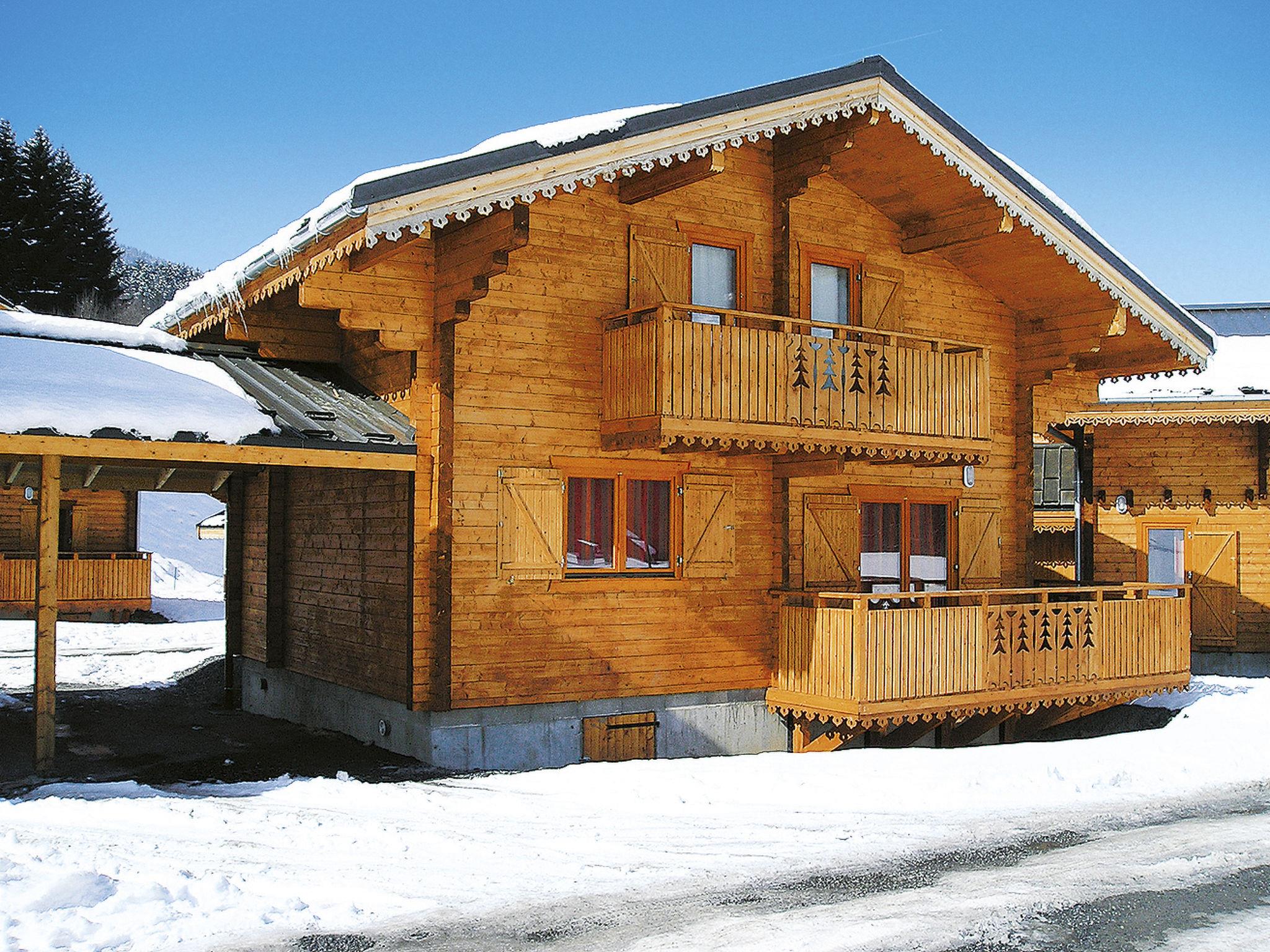 Residence "Bois de Champelle". 25 houses in the residence. 1.1 km from the centre of Morillon, on the outskirts, 4 km from the centre of Samoens, on a slope. For shared use: swimming pool, indoor pool heated (10 x 4 m, seasonal availability: 01.Jan. - 31.Dec.). In the complex: reception, WiFi, sauna, fitness room (all included), washing machine, tumble dryer (for shared use, extra). Shop 1.1 km. Mountain railway 1.6 km, ski bus stop 100 m. Please note: the photograph shows a typical example. The holiday properties may differ in living space, floorplan, equipment and furnishing.