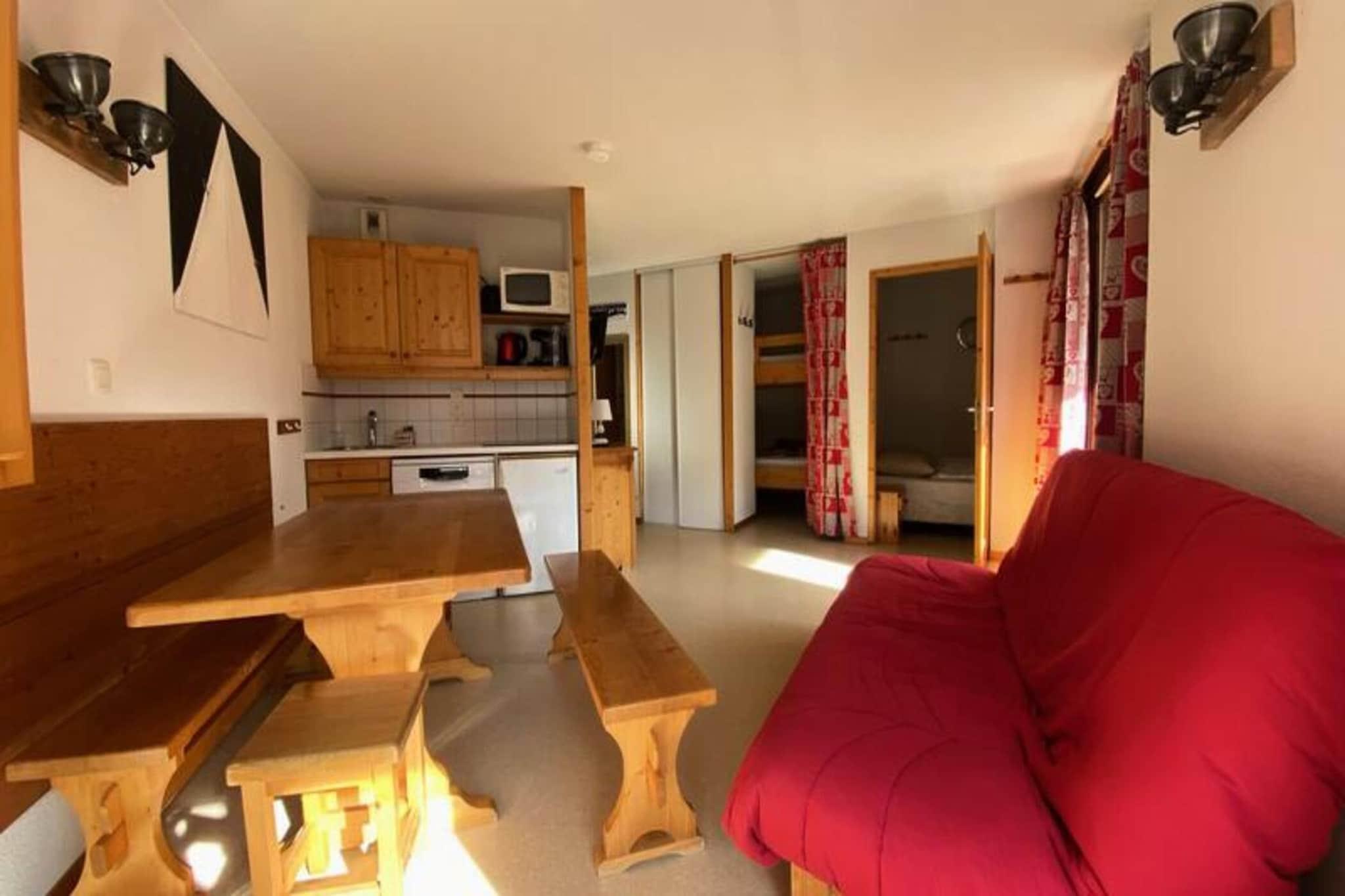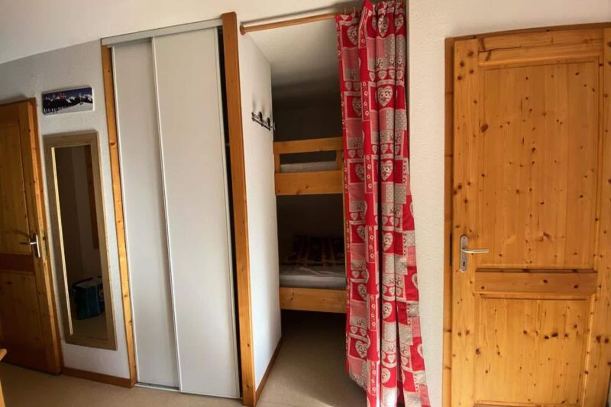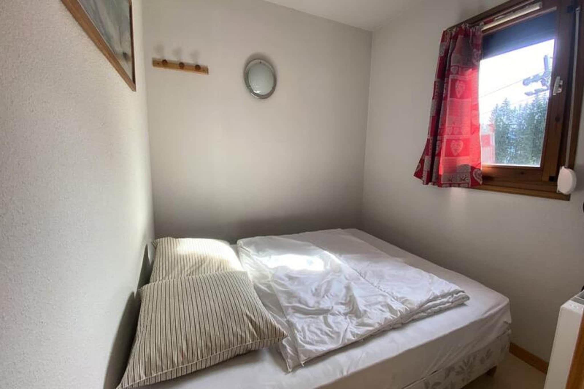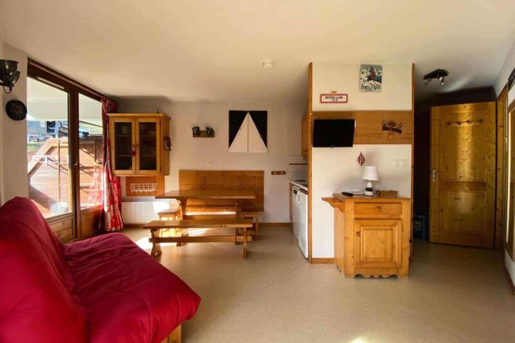 Beliggende ved foden af ??skiløjperne i Morillon 1100, er denne rummelige 34 m² store lejlighed det perfekte tilflugtssted for op til 6 gæster. Ejendommen er beliggende på anden sal i en bolig med elevator, hvilket giver nem adgang. Indenfor finder du et veldesignet layout med et bjerghjørne med en dobbelt køjeseng, et hyggeligt soveværelse med en dobbeltseng, en stue med en sovesofa og et tv. Lejligheden er ikke-ryger og tillader ikke kæledyr, hvilket sikrer et fredeligt ophold. Et depositum på EURO 300 kræves ved reservation. Lejligheden er ideelt beliggende nær skiløjperne, med begynderområdet og børnehaven kun få skridt væk, perfekt til familier. Det giver nem adgang til udendørs aktiviteter og en fantastisk udsigt over bjergene. Efter skiløb kan gæsterne slappe af på lokale caféer eller udforske nærliggende butikker og markeder For ekstra bekvemmelighed er lejligheden fuldt udstyret med alt hvad du behøver for et behageligt ophold. Køkkenet indeholder et TOP-køleskab, en 3-brænder keramisk kogeplade, en opvaskemaskine, en mikroovn og en Tassimo elektrisk kaffemaskine. Der er også et separat brusebad og toilet for ekstra komfort. Den østvendte altan med havemøbler er det perfekte sted at slappe af og nyde udsigten. Yderligere faciliteter inkluderer et skiskab til dit udstyr, en støvsuger og en tørretumbler. Bemærk venligst, at lejligheden ikke har internetadgang.