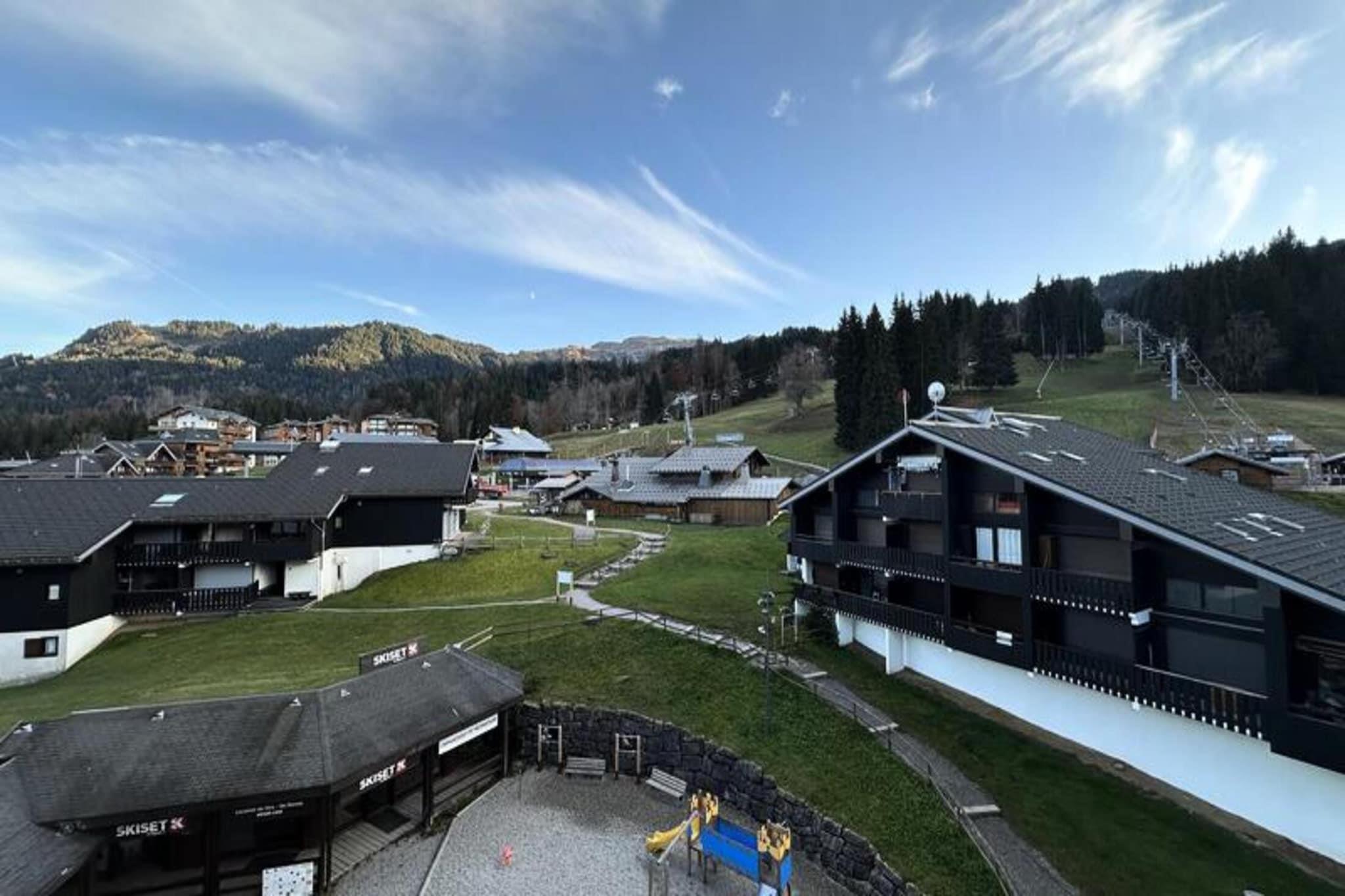 Denne duplex lejlighed, beliggende p? 4. sal i en bygning i hjertet af feriestedet Esserts, er ideel til op til 6 personer. Lejligheden indeholder et sovev?relse med dobbeltseng, en kahyt med k?jesenge og en opholdsstue med en ikke-ombyggelig sofa og tv. Den sydvendte altan byder p? en fantastisk udsigt over pisterne. Bem?rk venligst, at k?ledyr ikke er tilladt, og et depositum p? 600 euro er p?kr?vet. Lejligheden har praktisk opvarmning for din komfort. Arcades-residensen har en f?rsteklasses beliggenhed ved foden af ??pisterne i Morillon 1100. Butikker, caf?er og faciliteter er let tilg?ngelige p? resortet. B?rnehaven, k?lkebakken og skiskolen ligger kun en kort g?tur v?k, hvilket g?r det til en perfekt destination for familier og skientusiaster. Nyd den pulserende atmosf?re og udend?rs aktiviteter i disse smukke alpine omgivelser. Lejligheden har et fuldt udstyret k?kkenomr?de, s? du kan tilberede dine m?ltider under dit ophold. Det inkluderer ogs? et brusebad med toilet og vaskemaskine for ekstra bekvemmelighed. Et skab i entr?en byder p? ekstra opbevaringsplads. Denne velrenoverede lejlighed er et glimrende valg for en behagelig bjergferie.